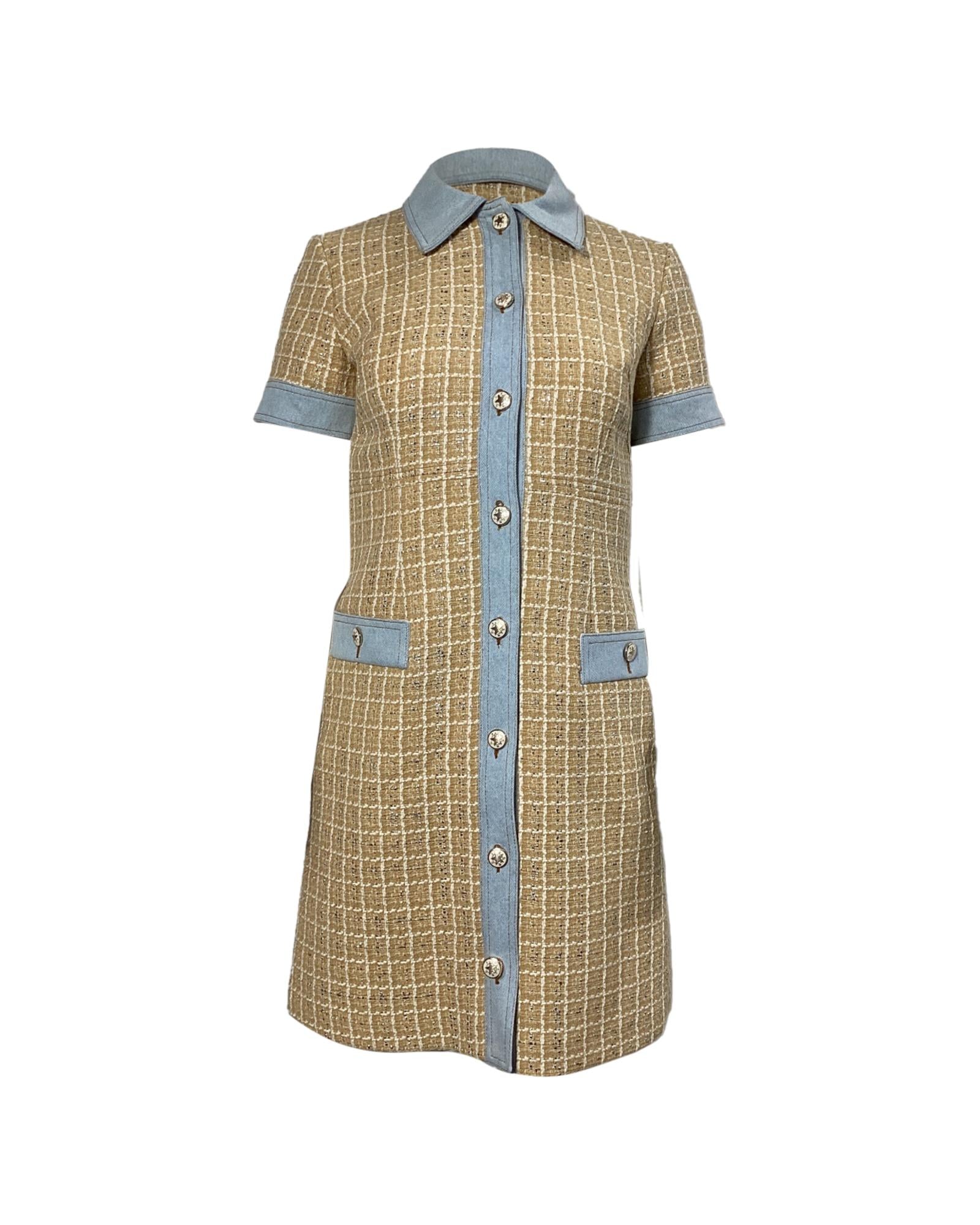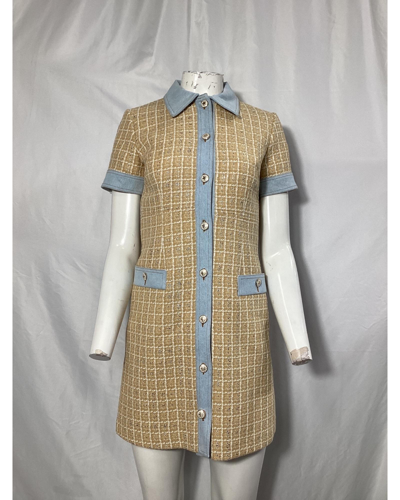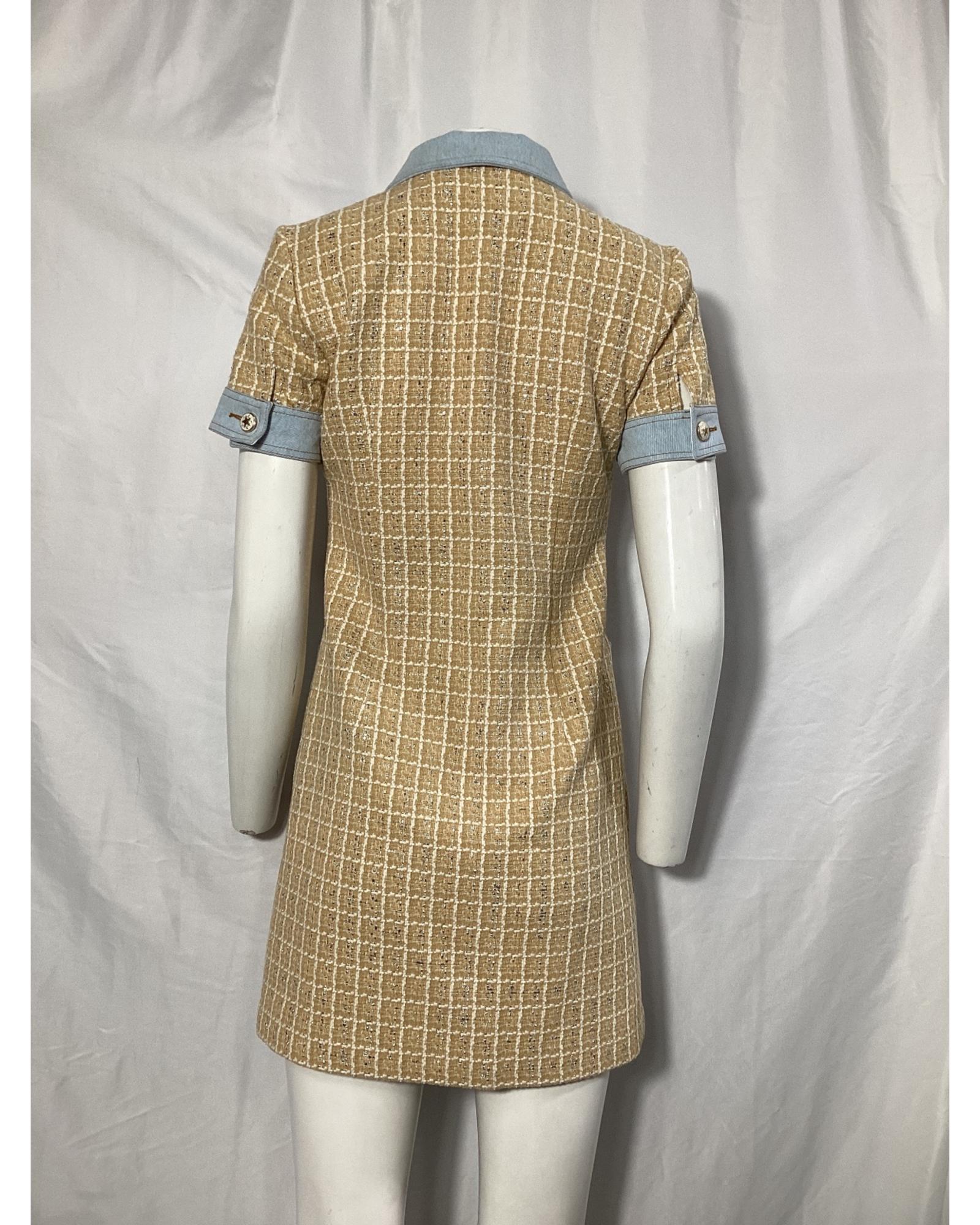 • Sandro Mella Tweed Mini Dress in Beige Cotton