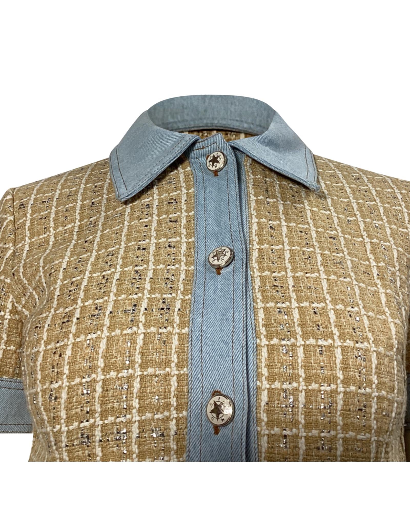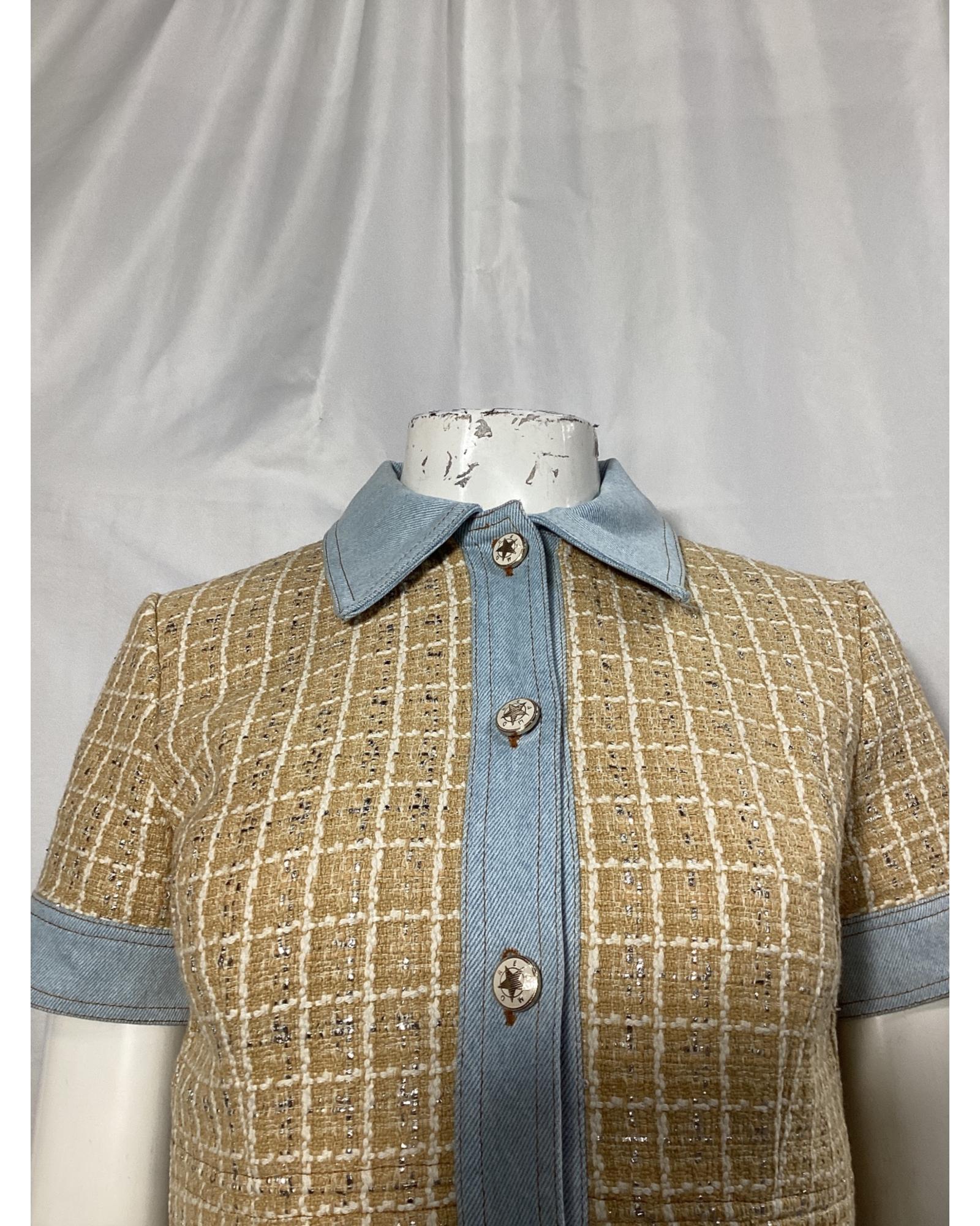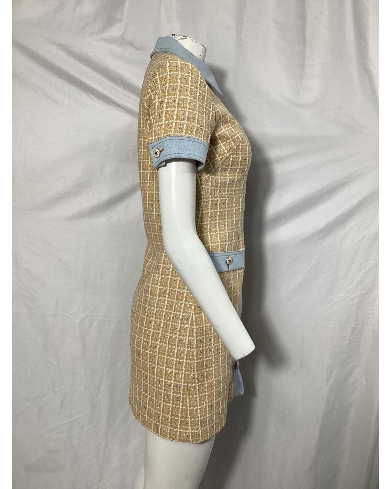 • Sandro Mella Tweed Mini Dress in Beige Cotton