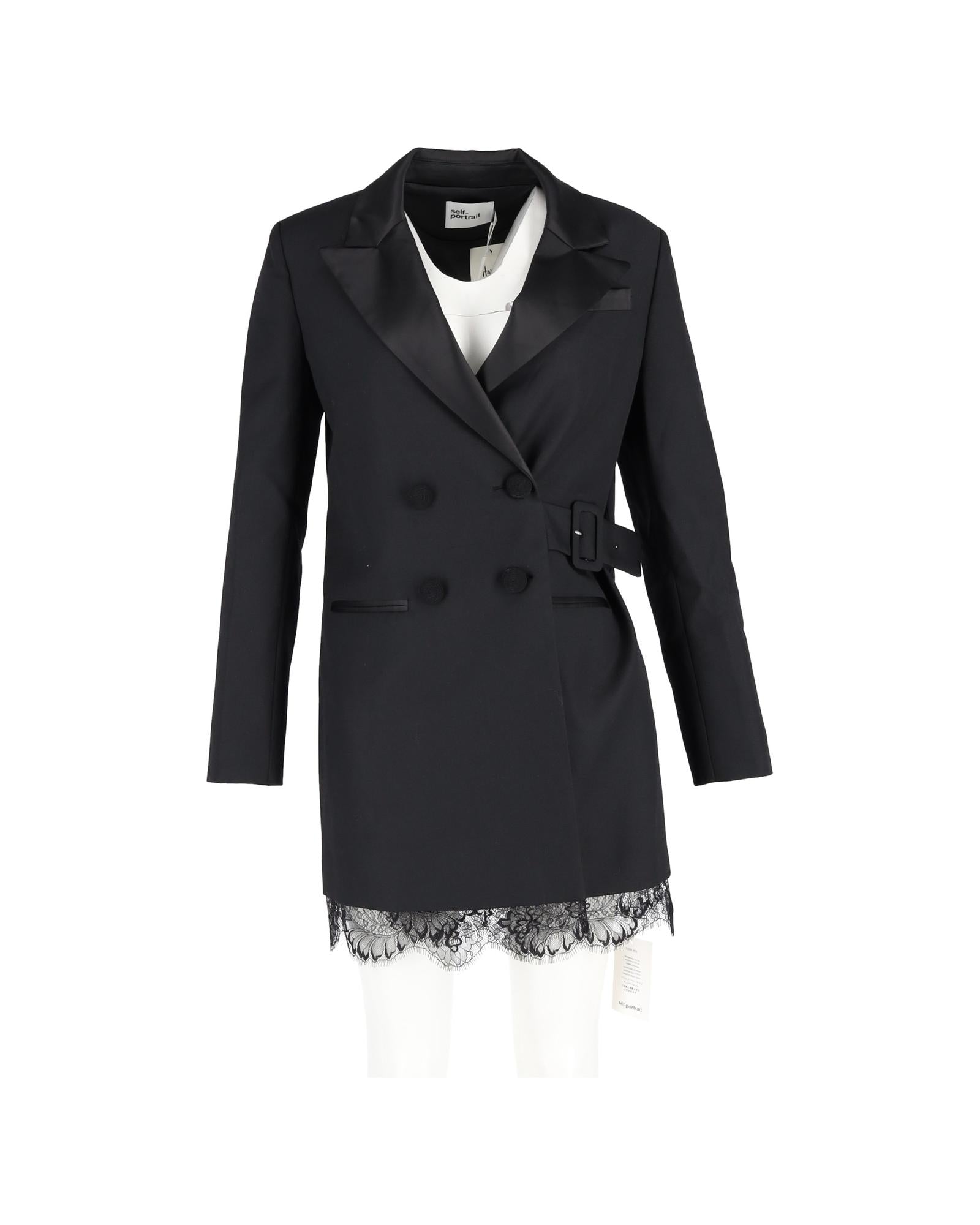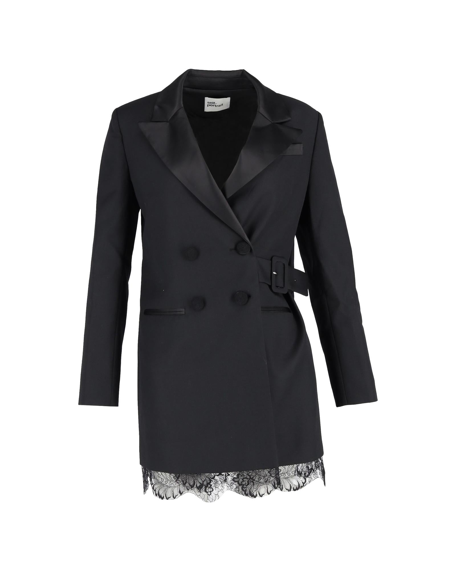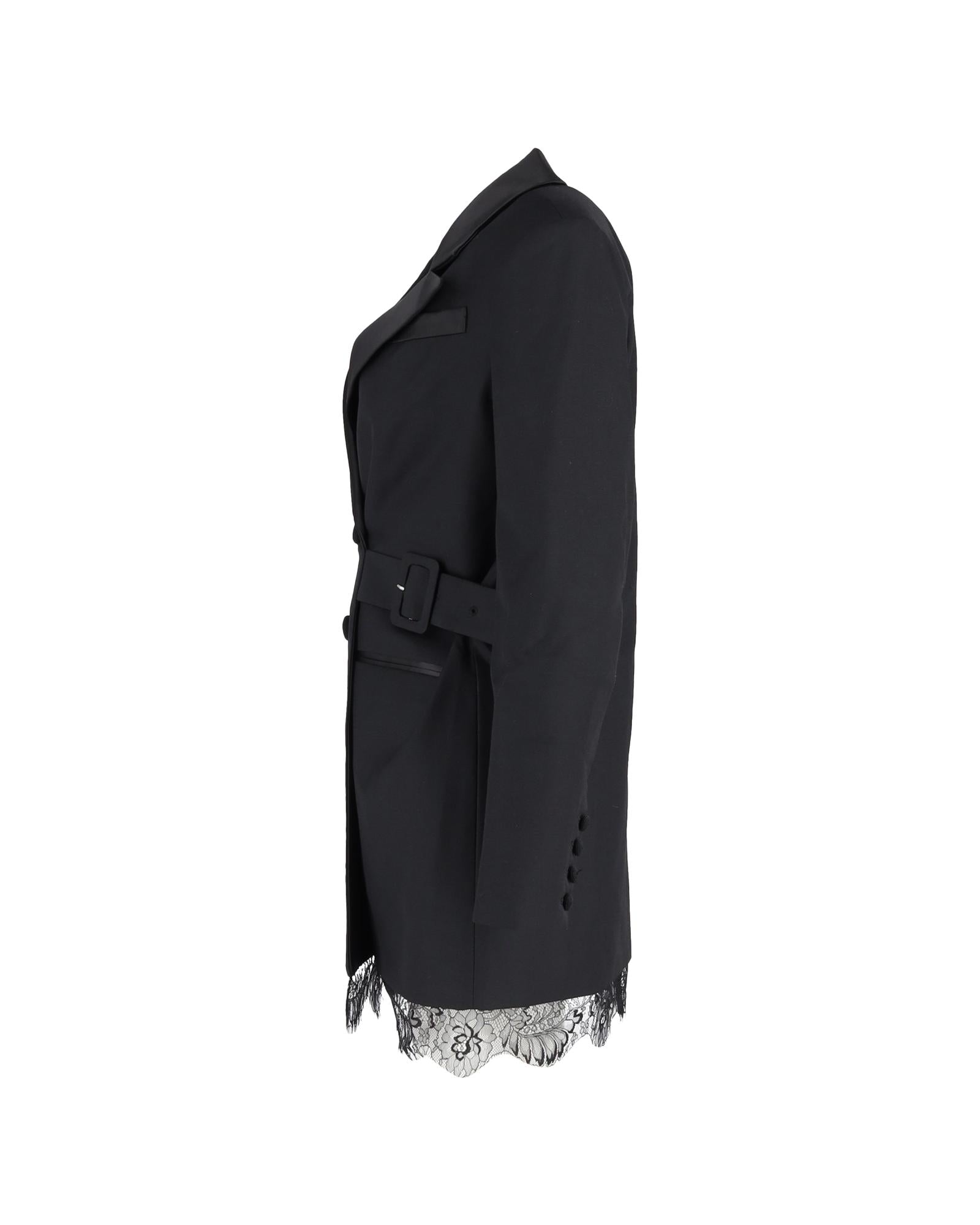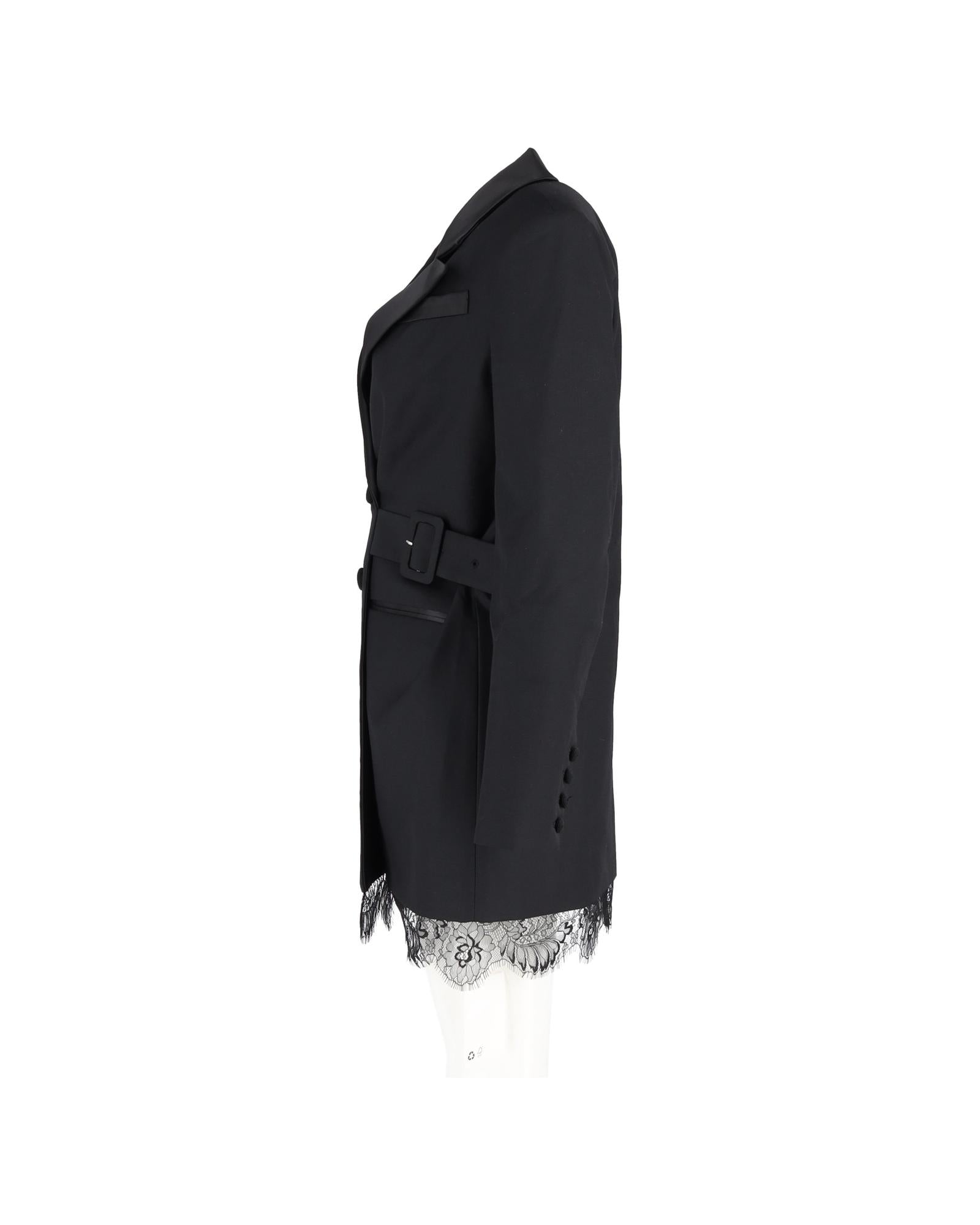 - Portrait Crepe & Lace Blazer Dress In Black Polyester