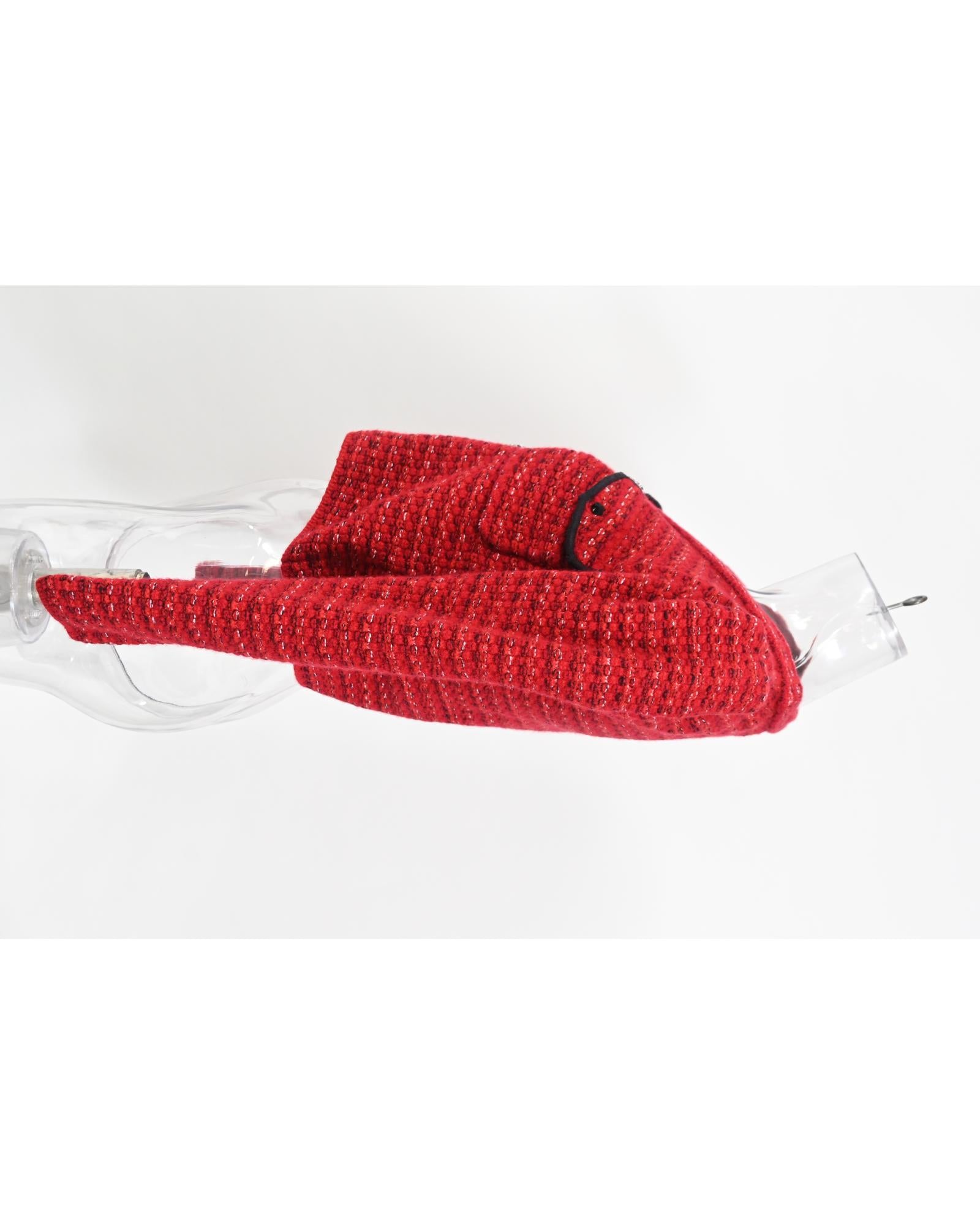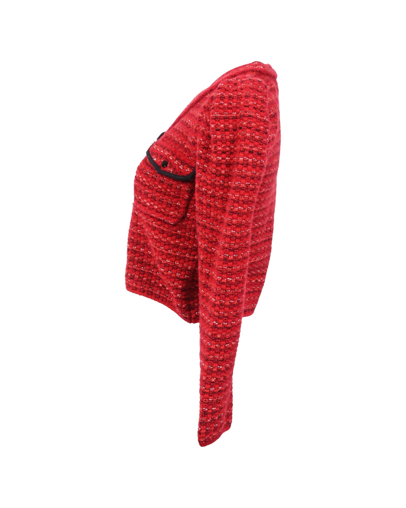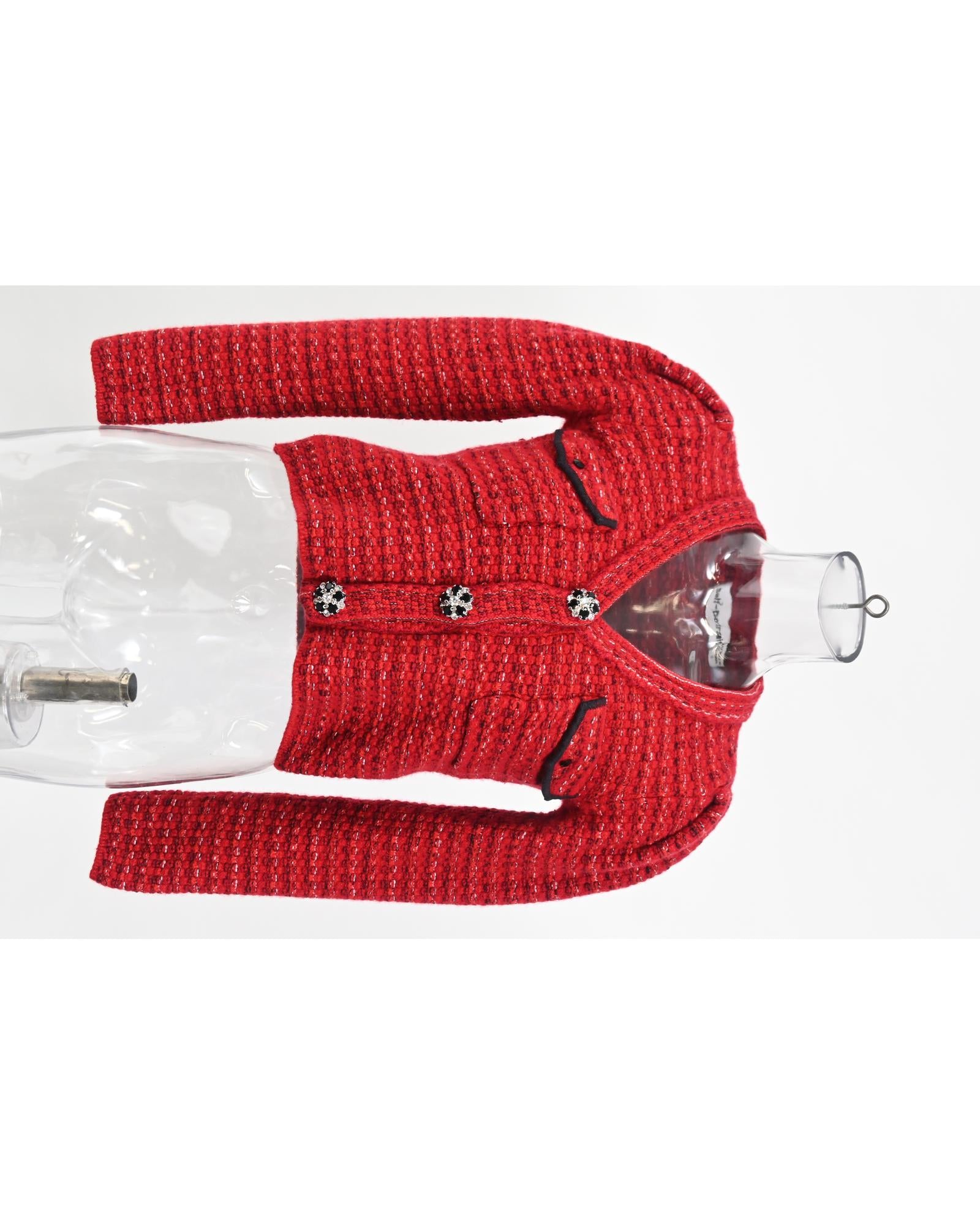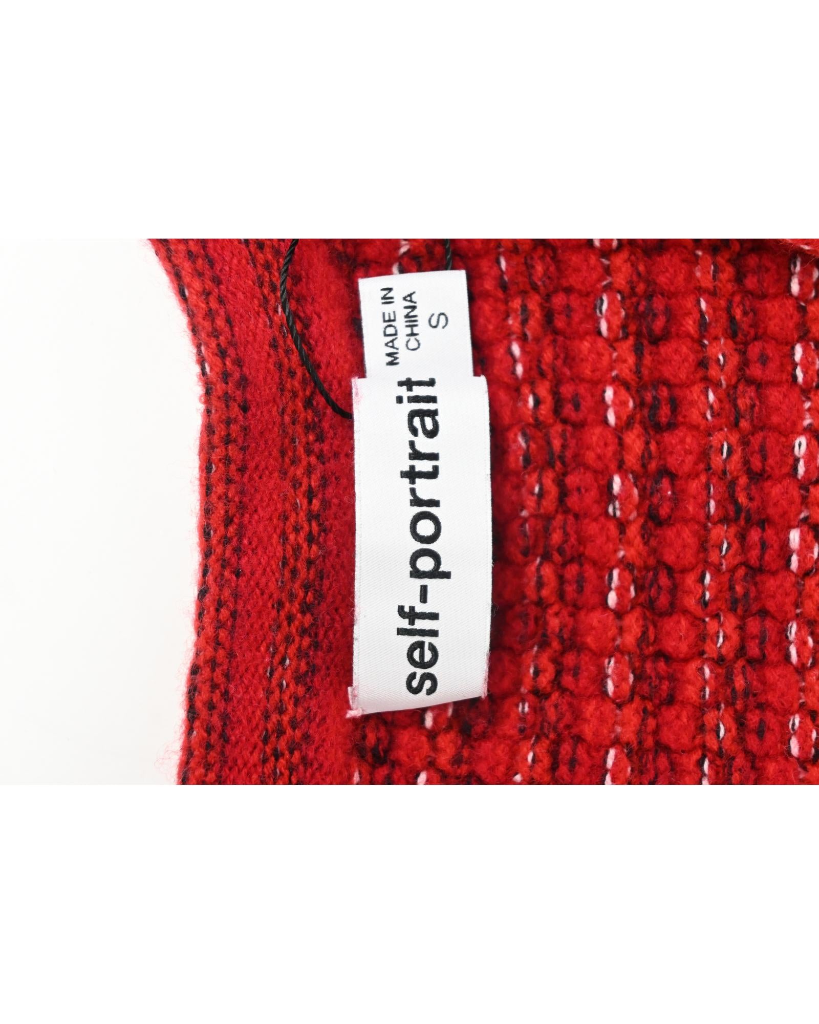 • Portrait Floral Diamante Button Melange Knit Cardigan In Red Wool