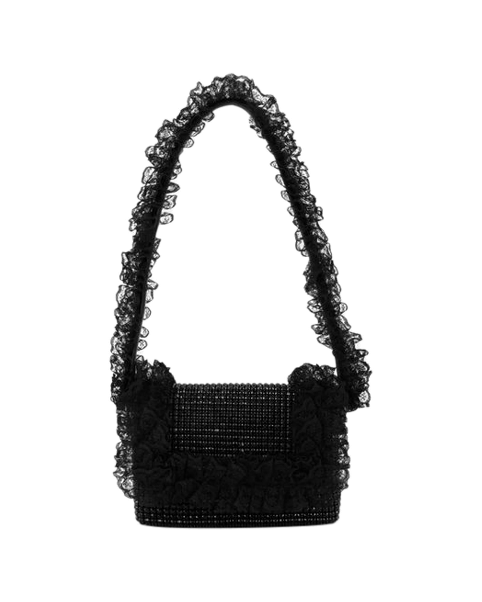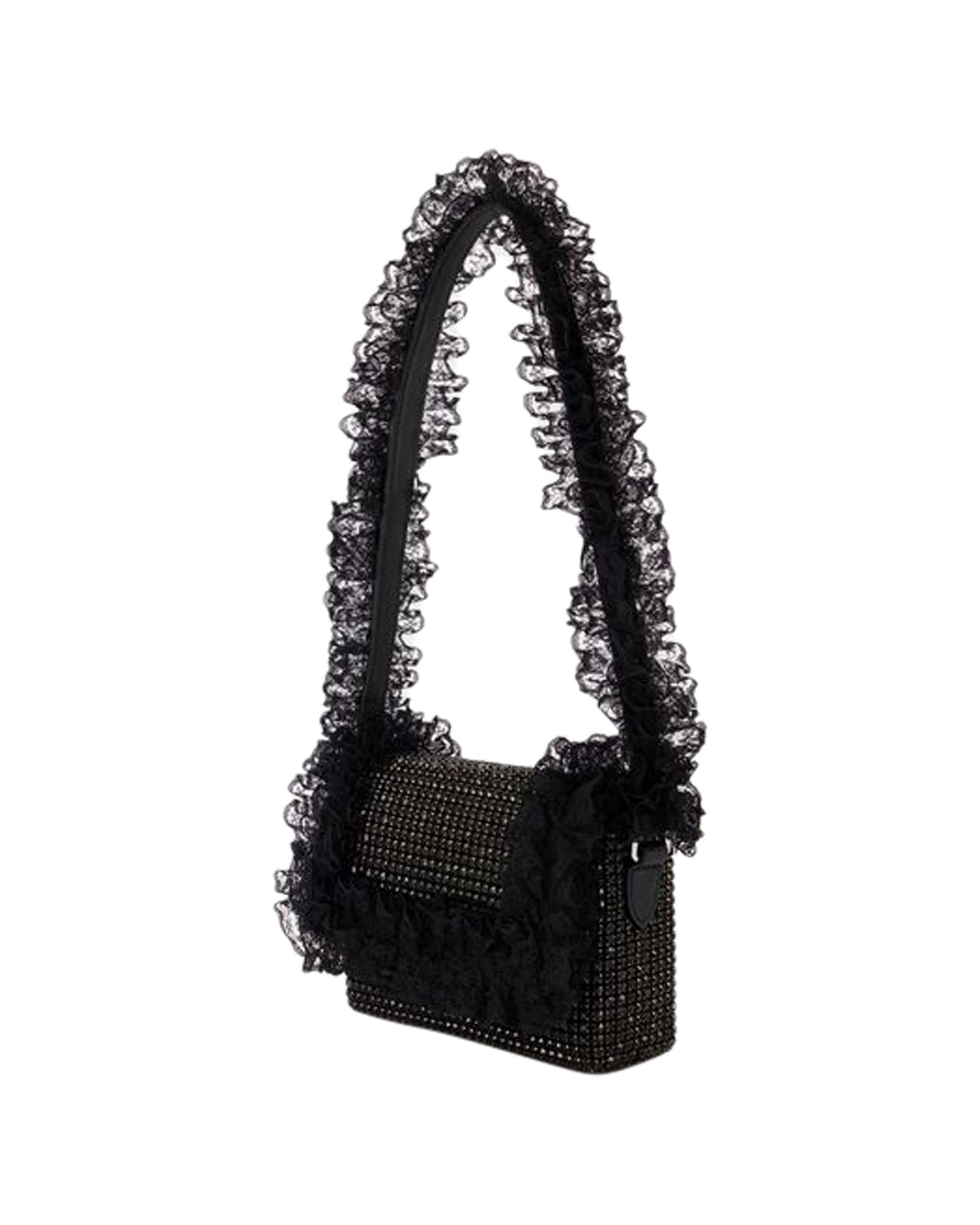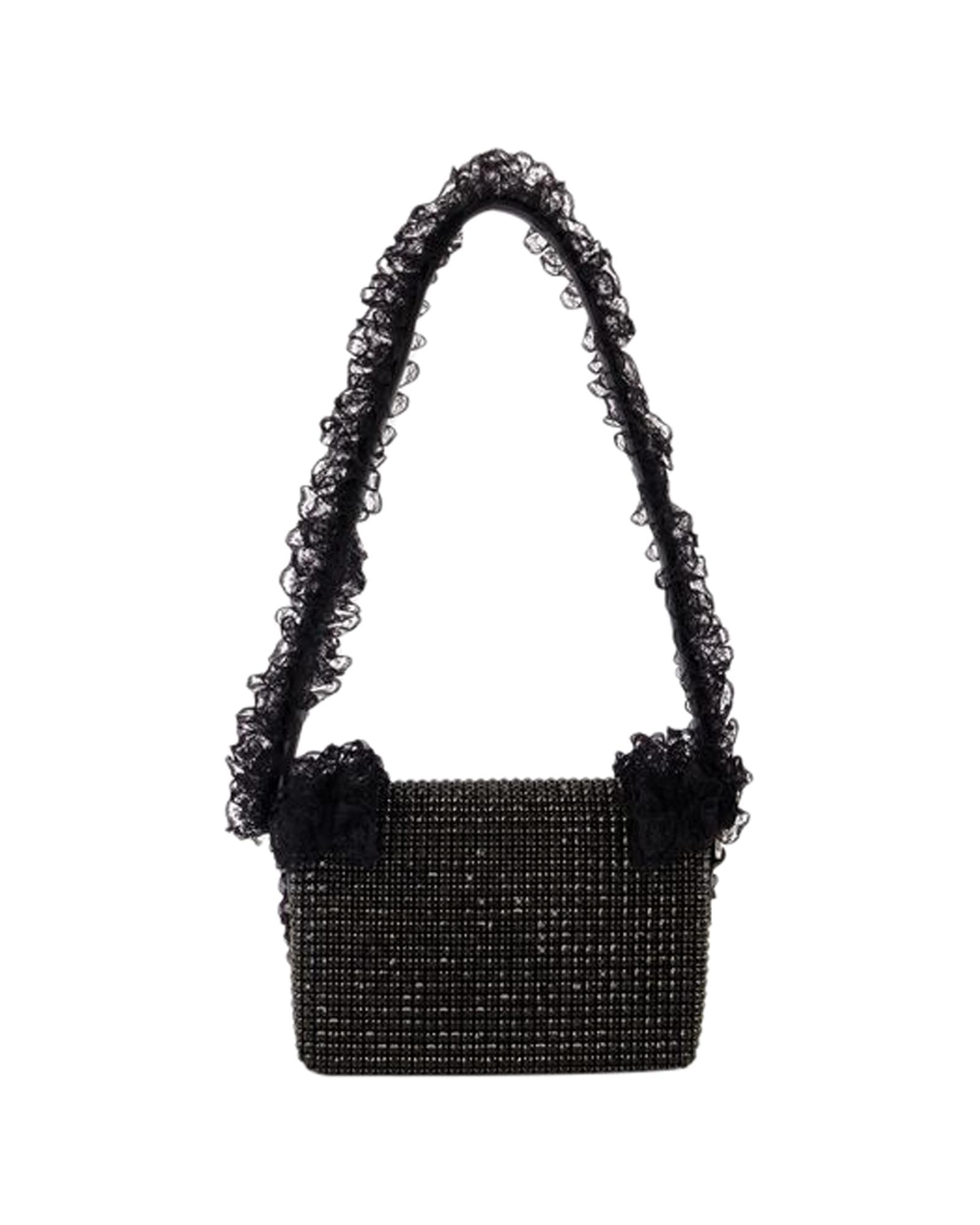 Crystal Lace Detail Synthetic Bag with Top Handle
