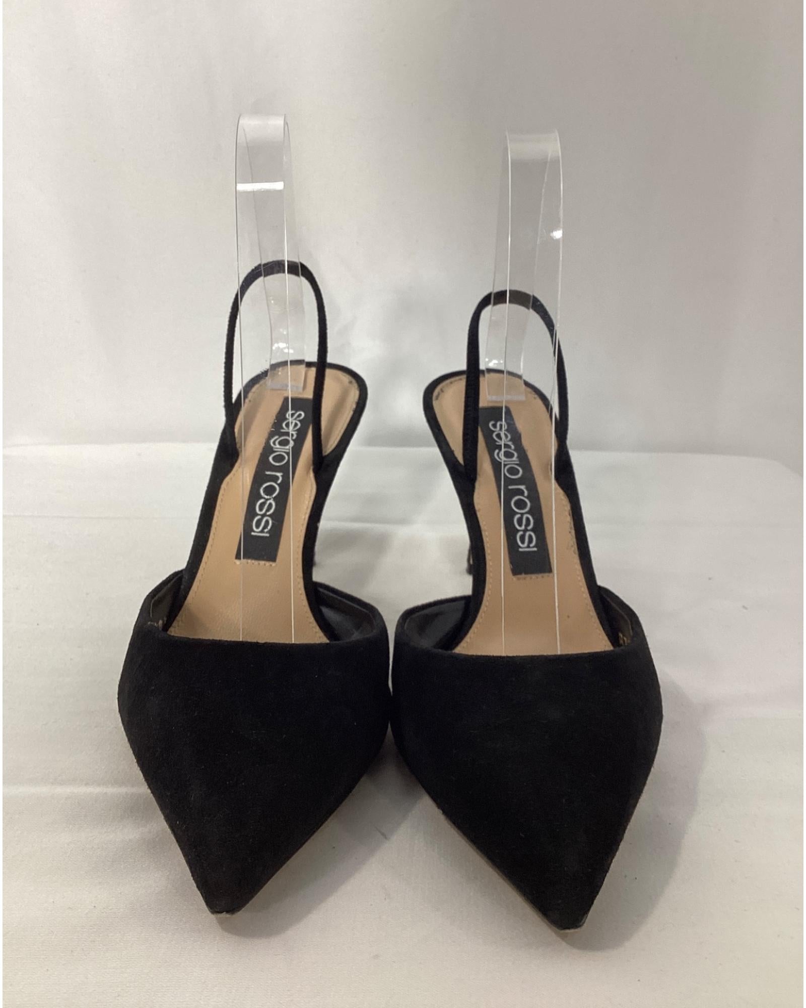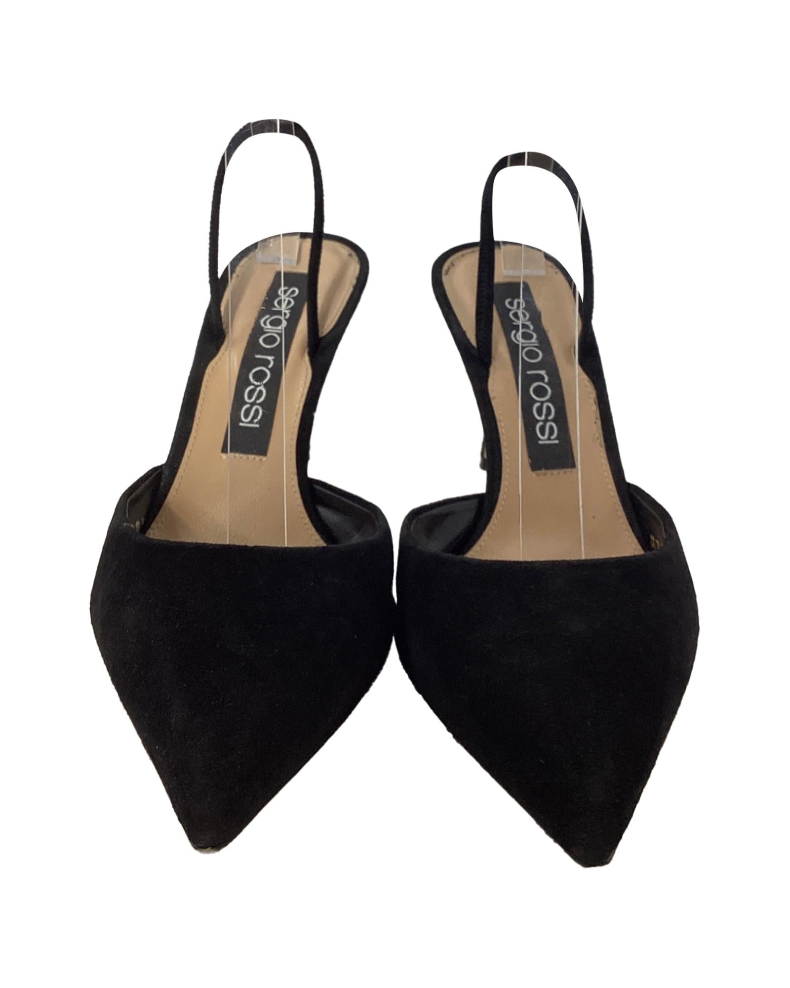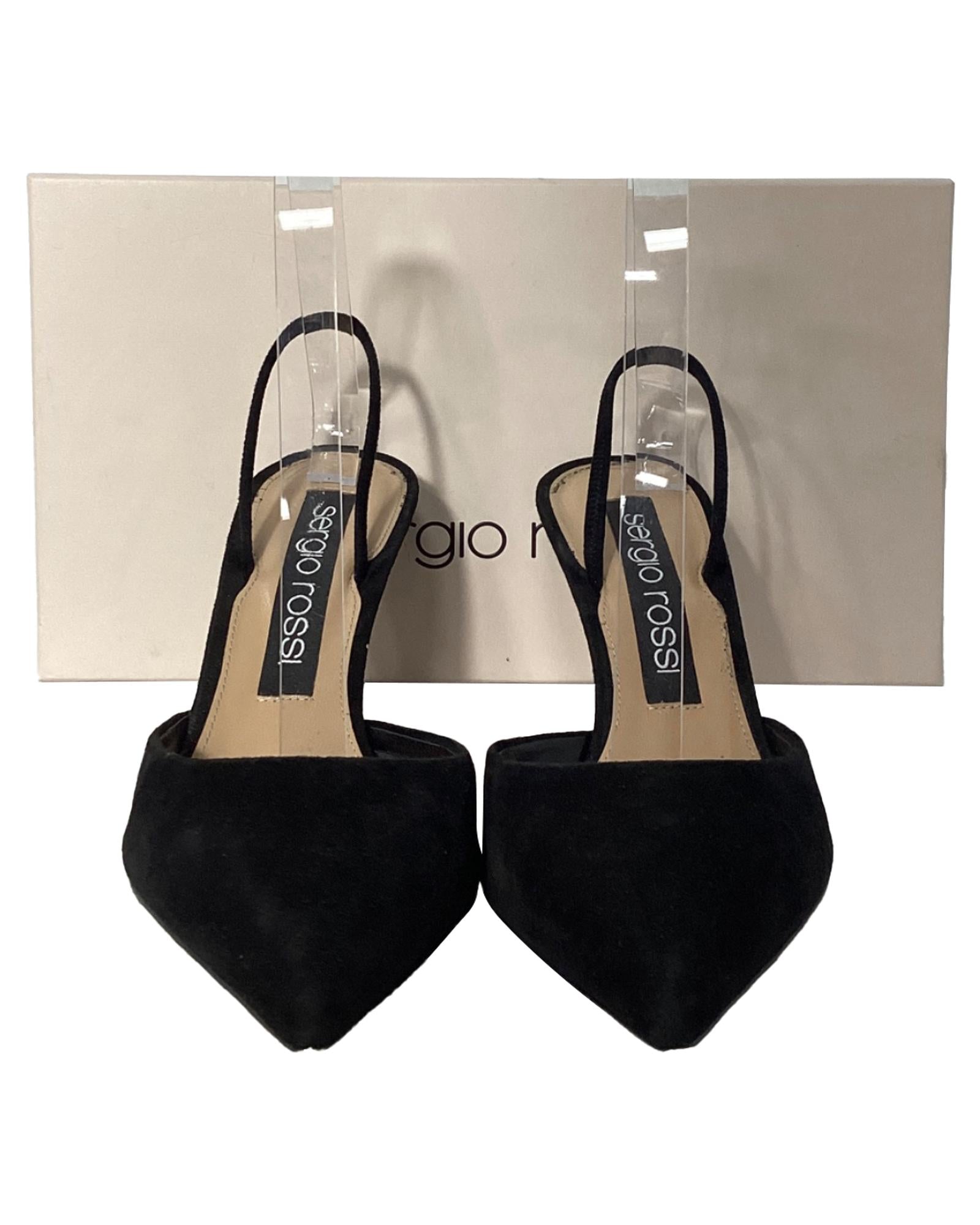 • Sergio Rossi Godiva Slingback Sandals in Black Suede