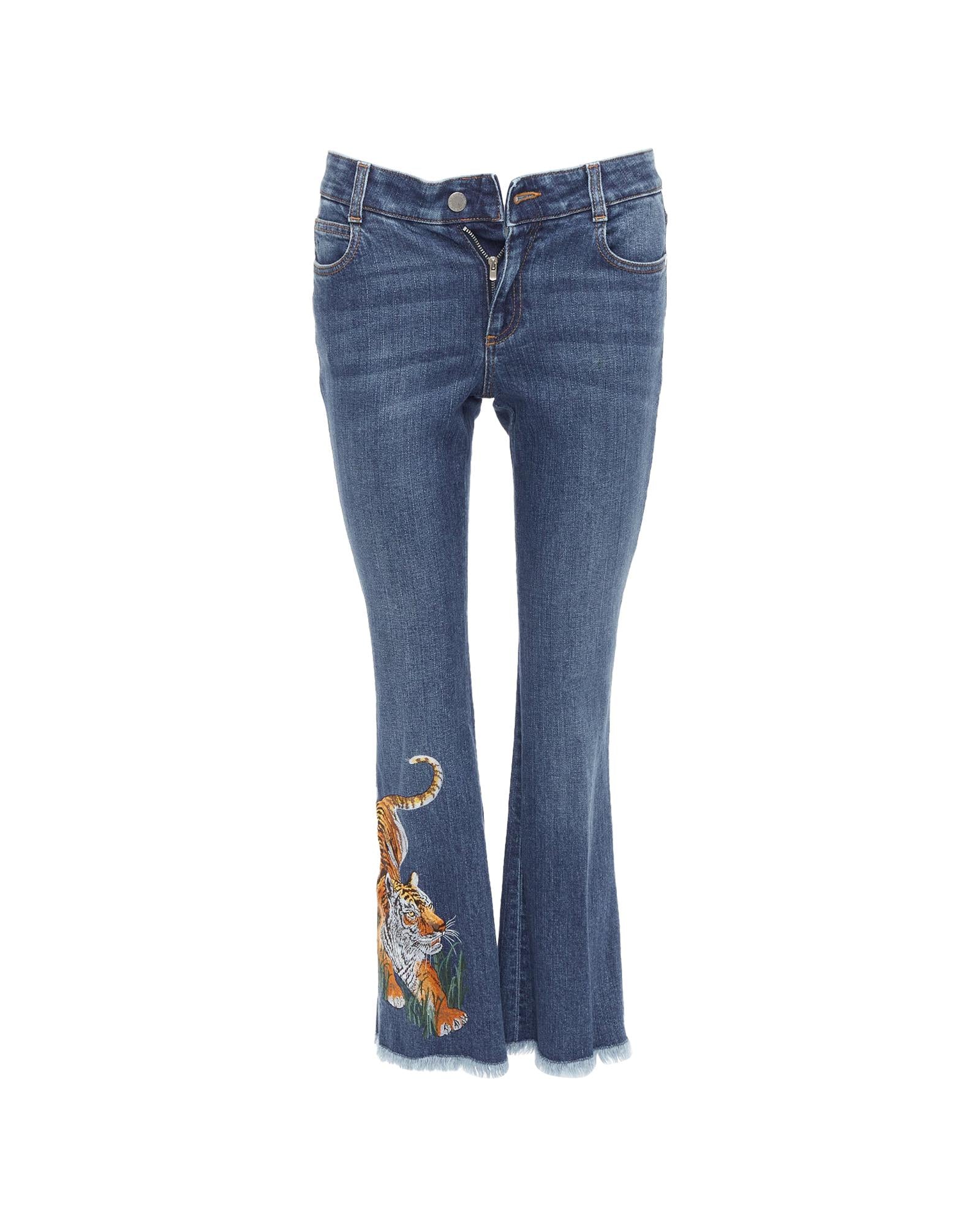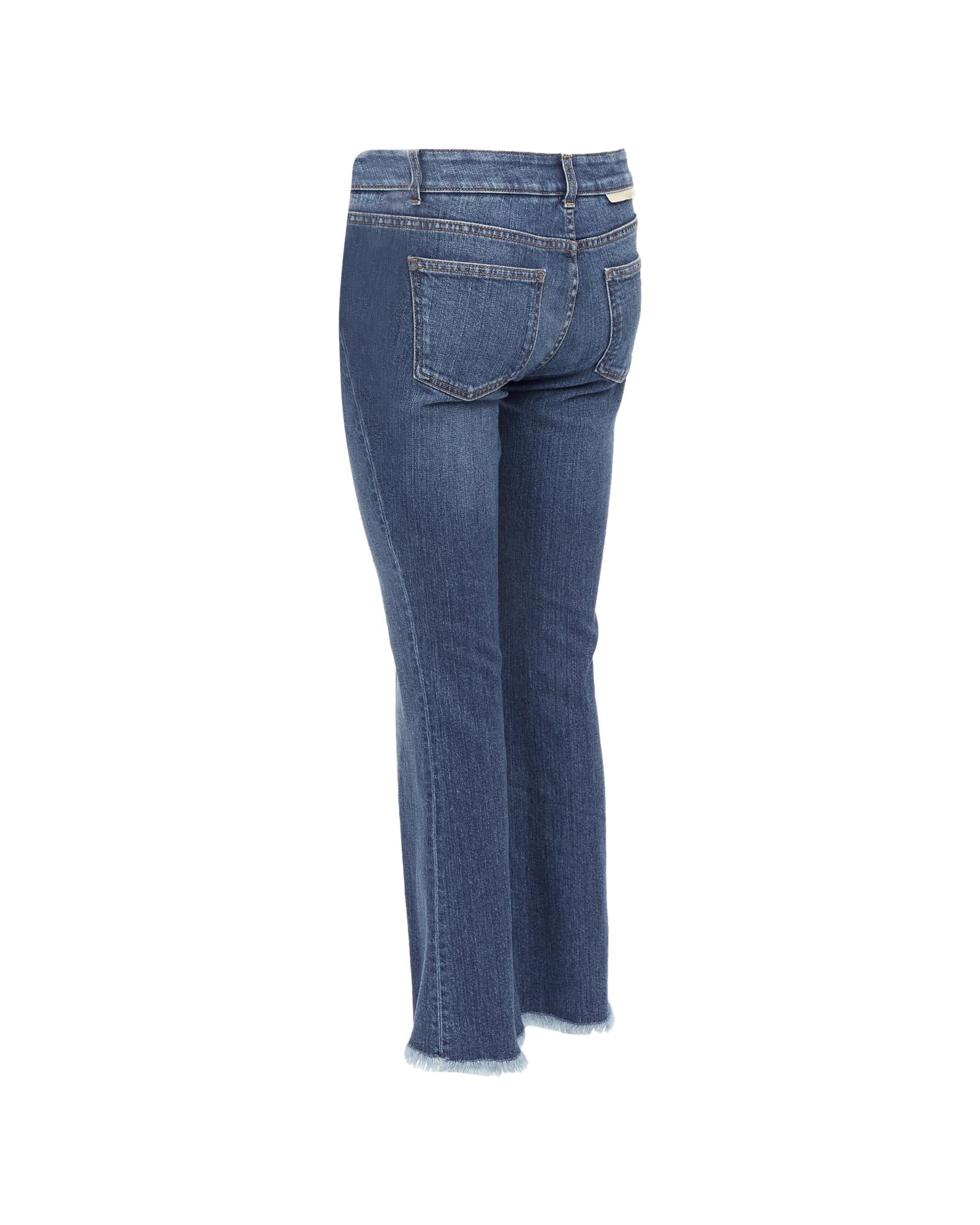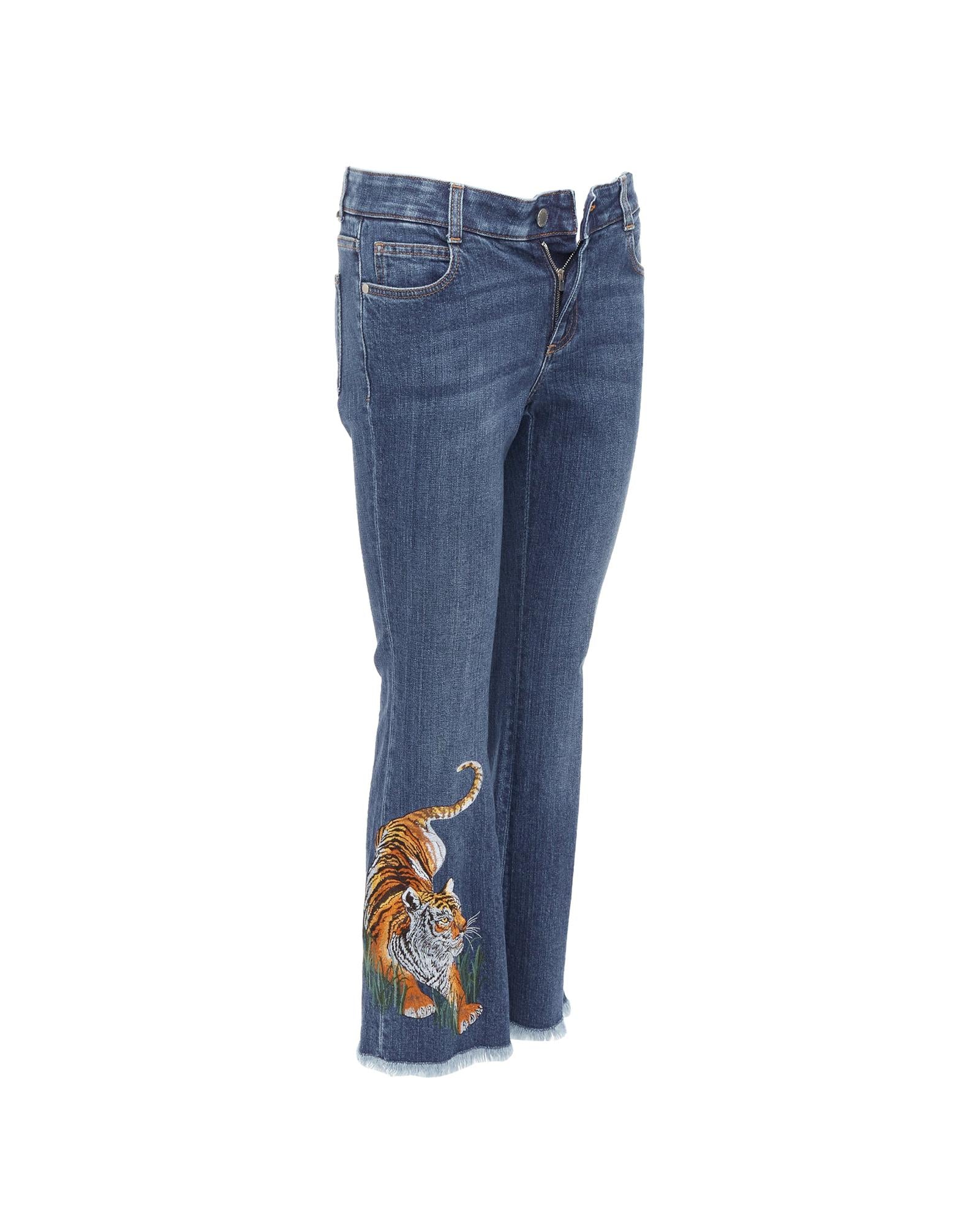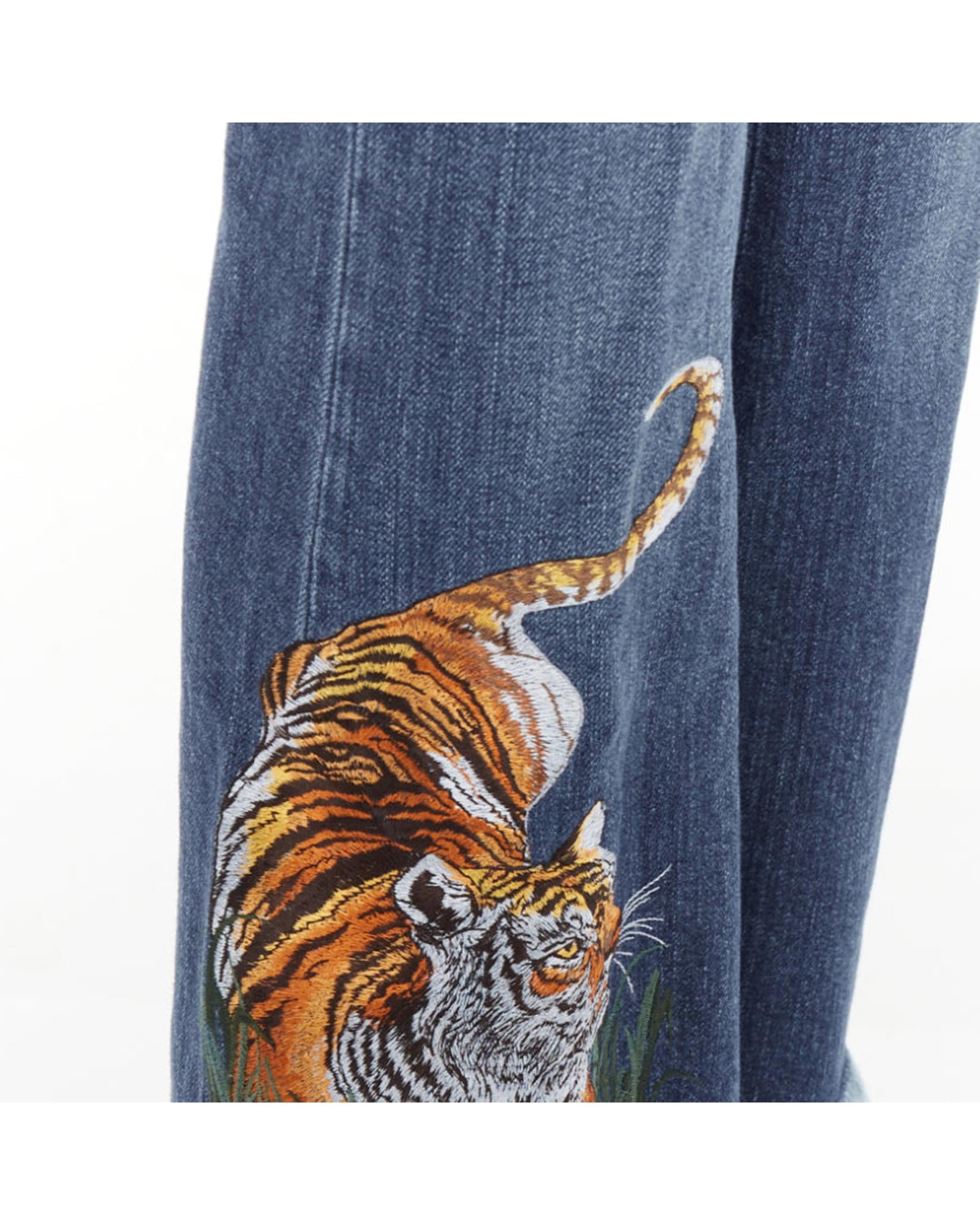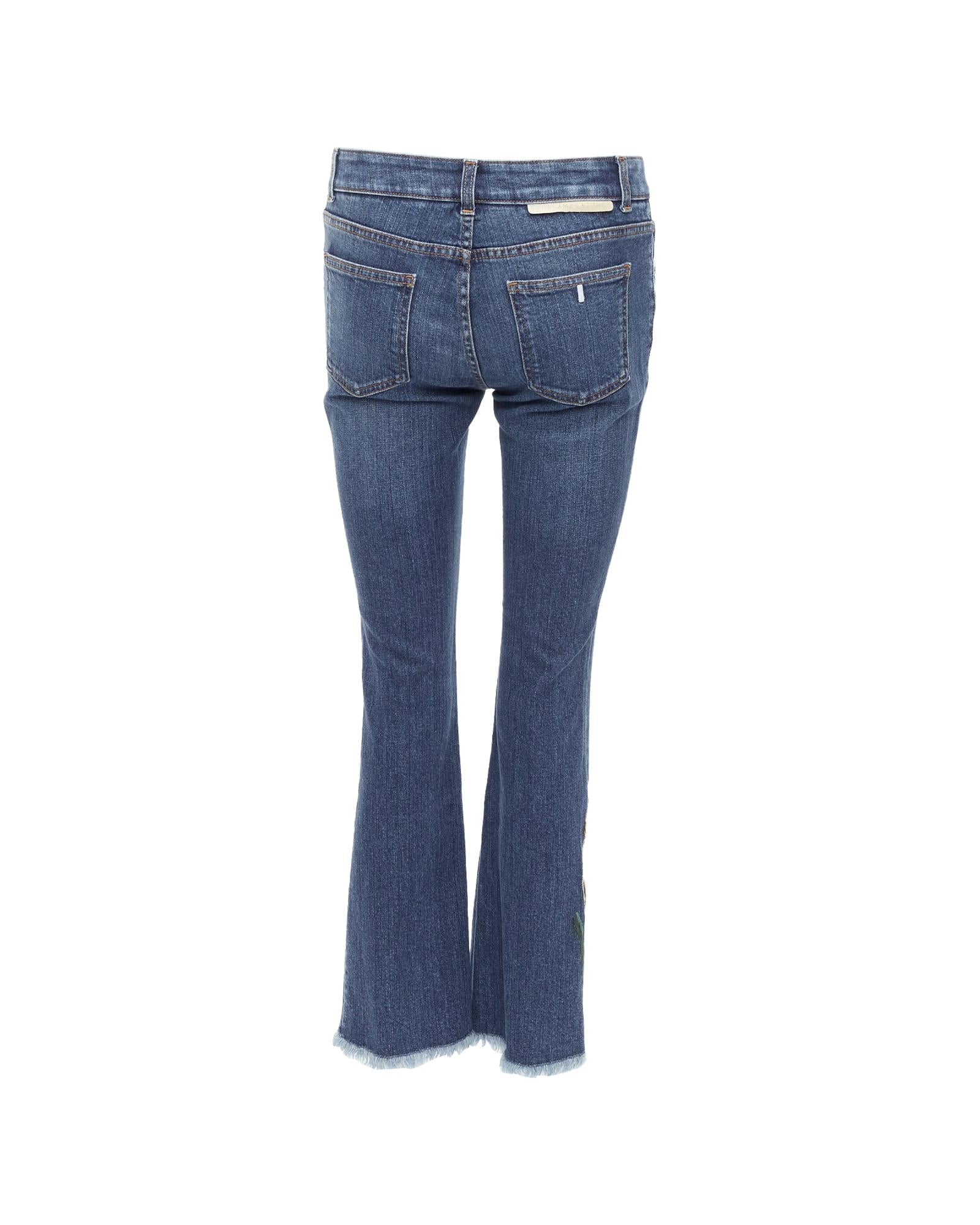 Pre-owned Denim Jeans with Embroidery and Fringed Hems Flared Leg Casual Fashion