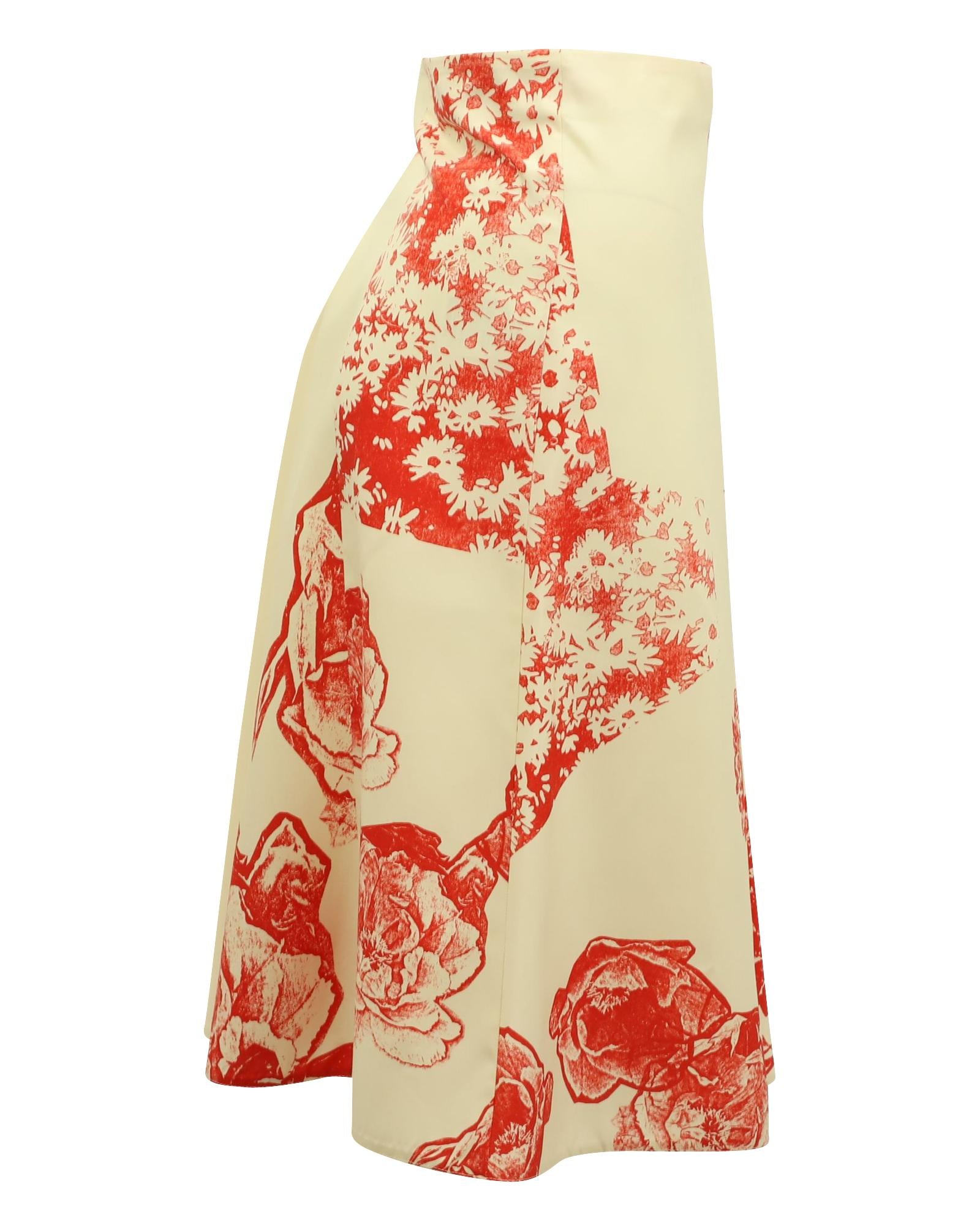 Pre-owned Floral Print ALine Midi Skirt