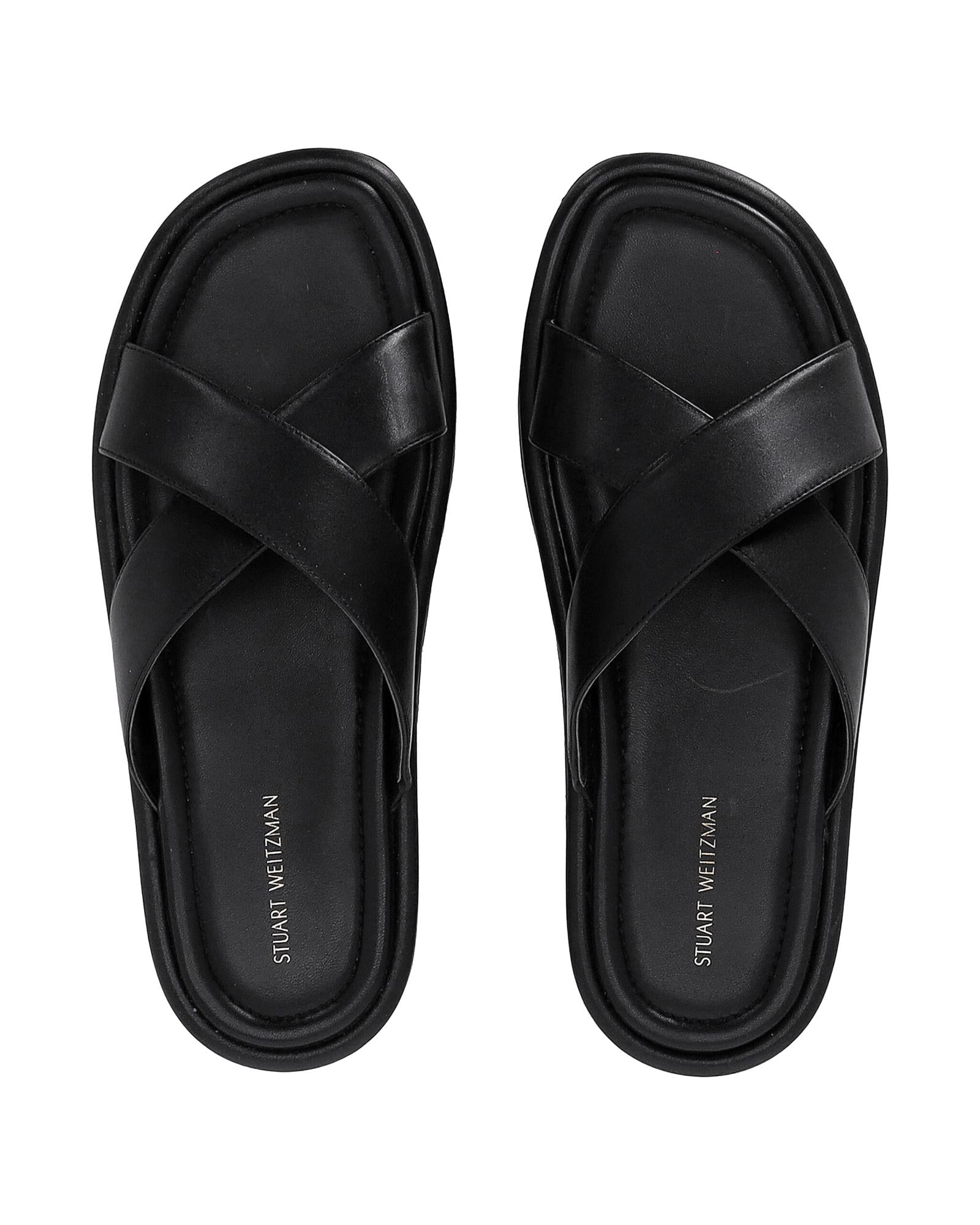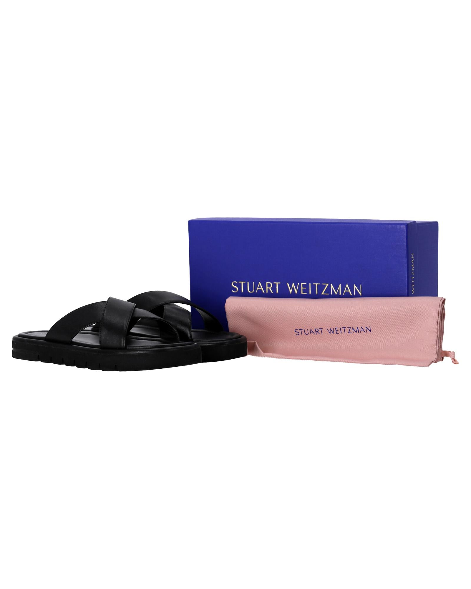 • Stuart Weitzman Elodie Slide Sandals in Black Leather