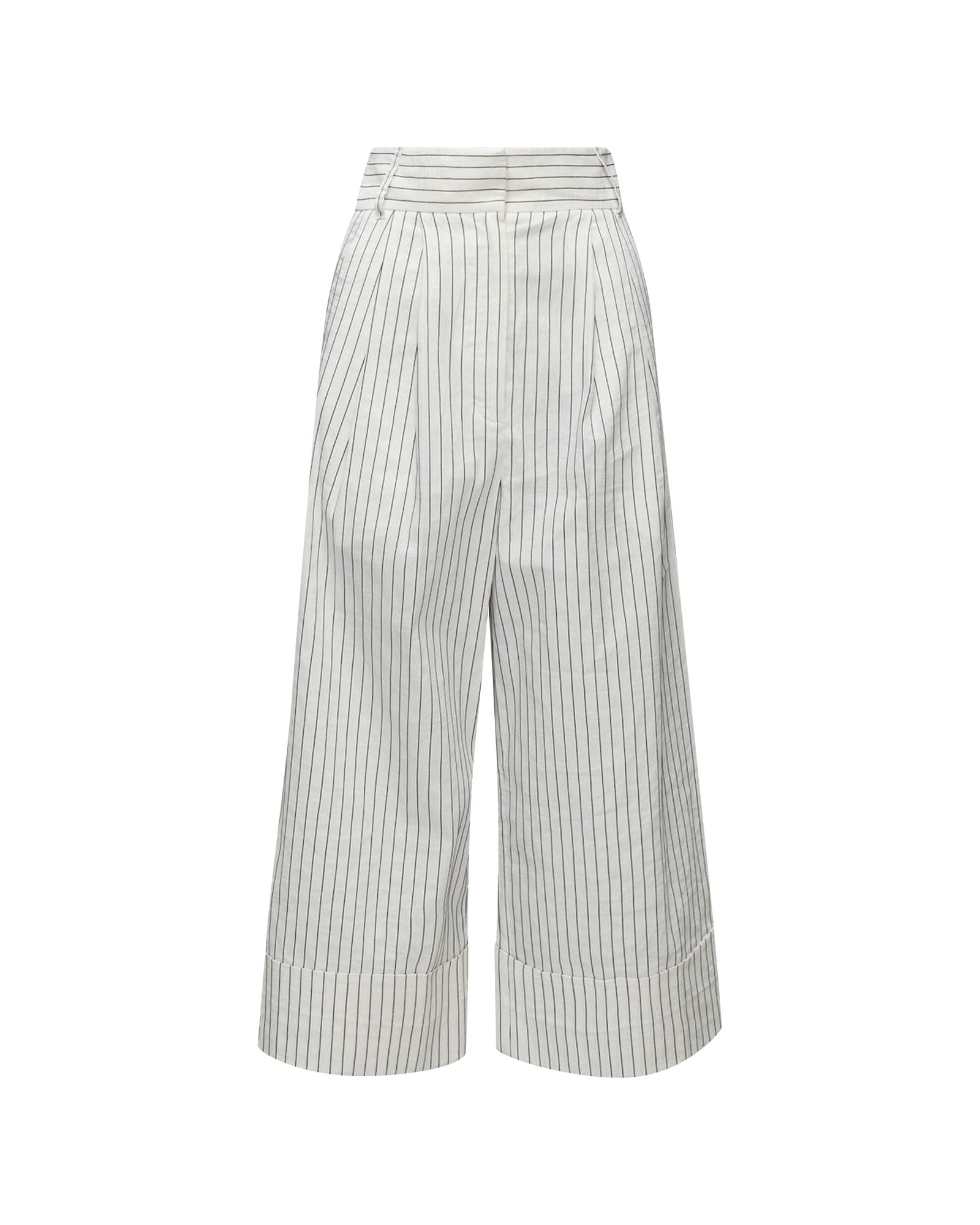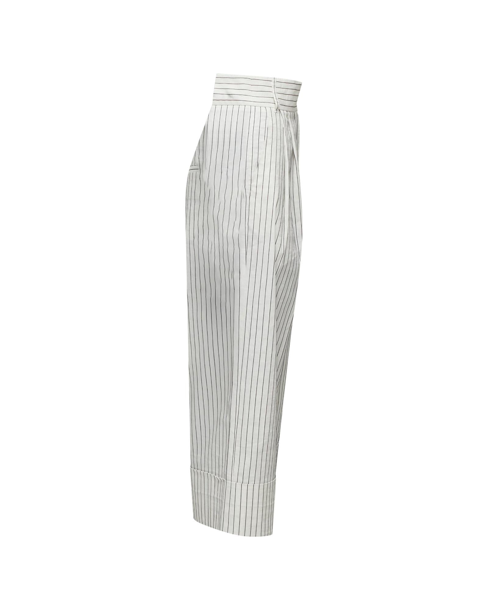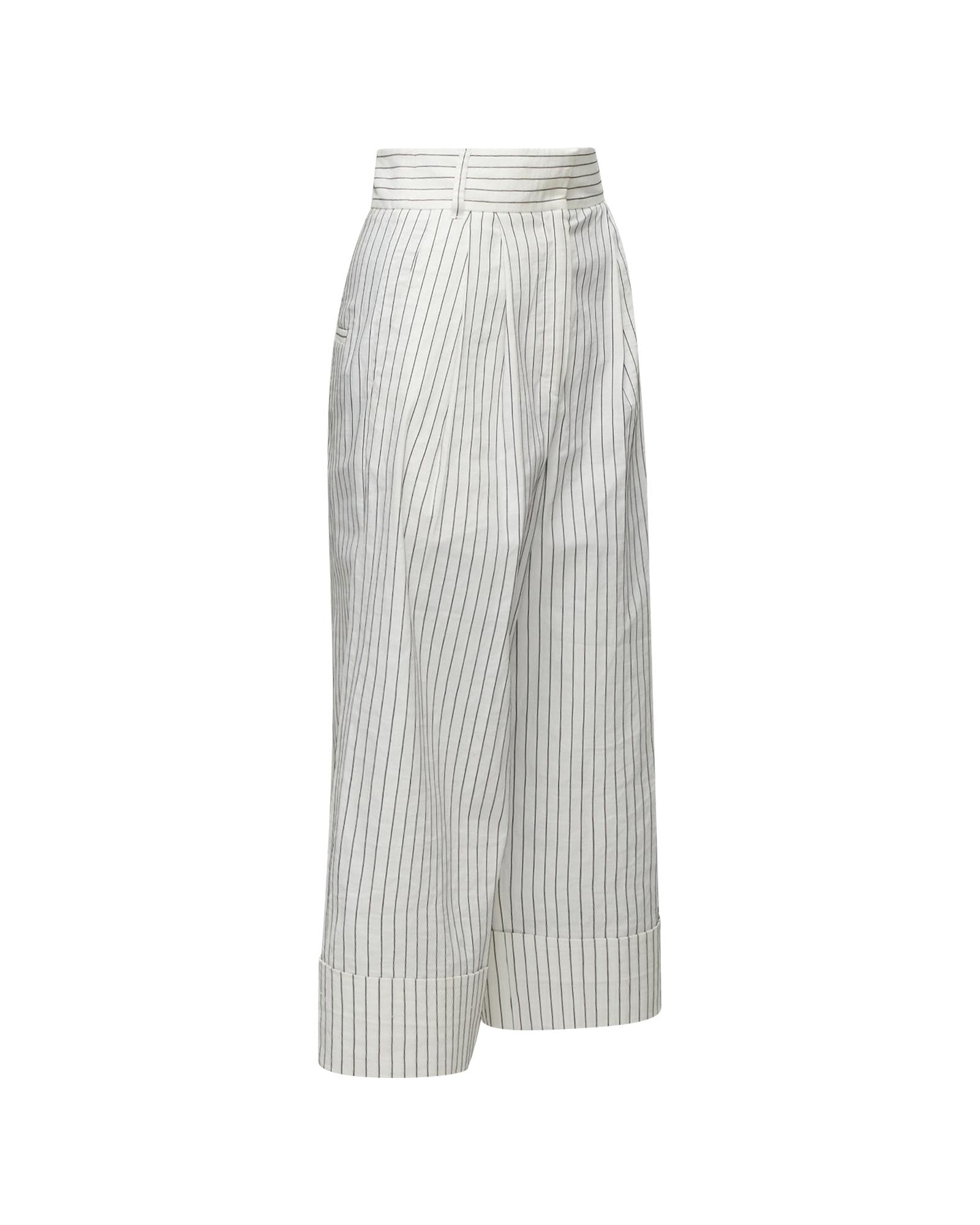 Pre-owned Relaxed Fit Wide Leg Trousers with Vertical Stripes