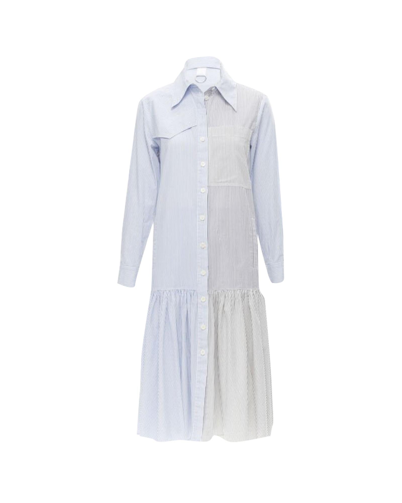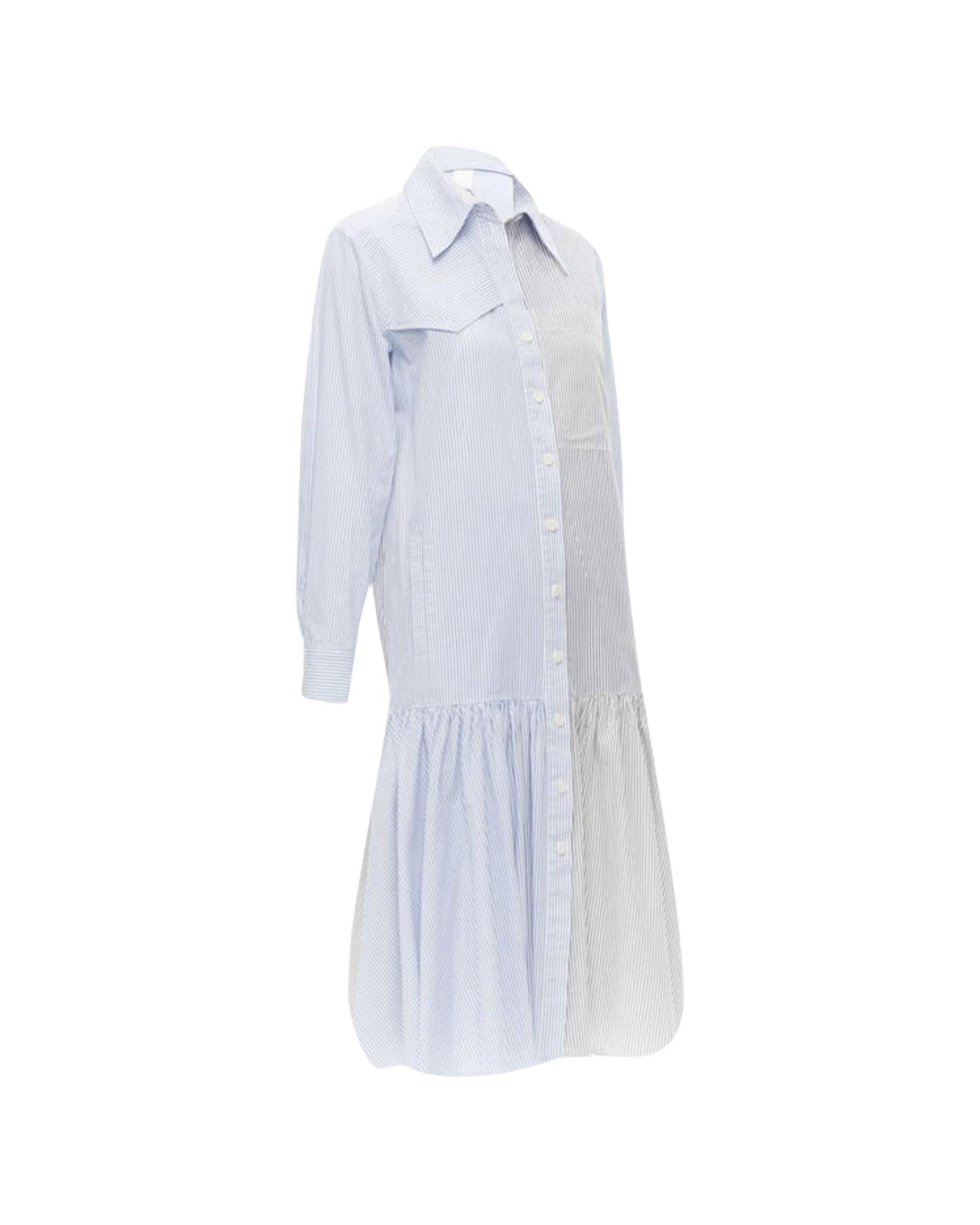 Pre-owned Striped Shirt Dress with Long Sleeves and Front Button Closure