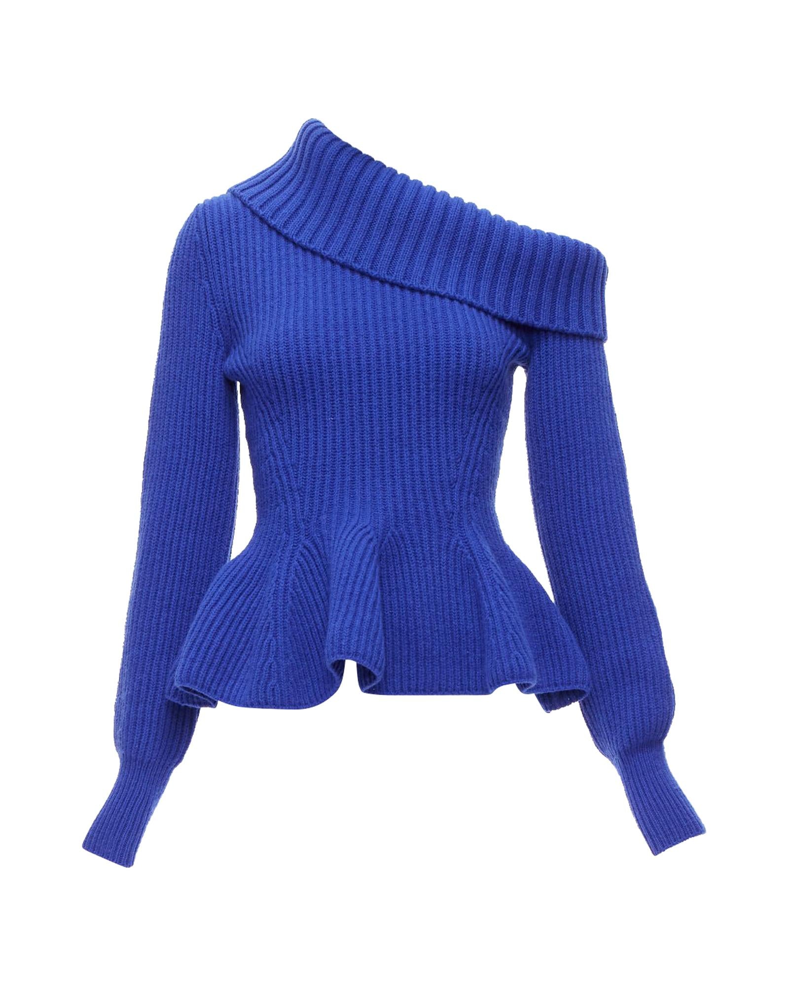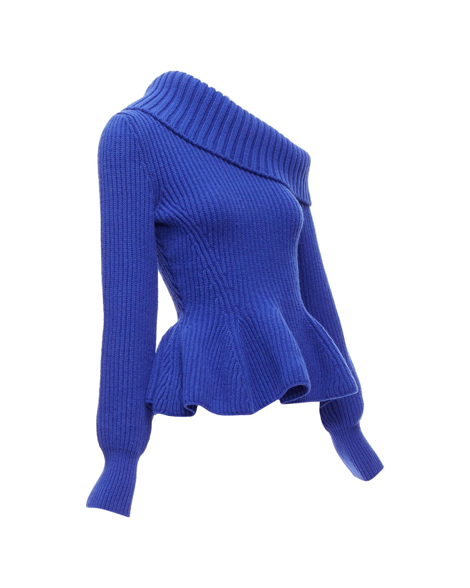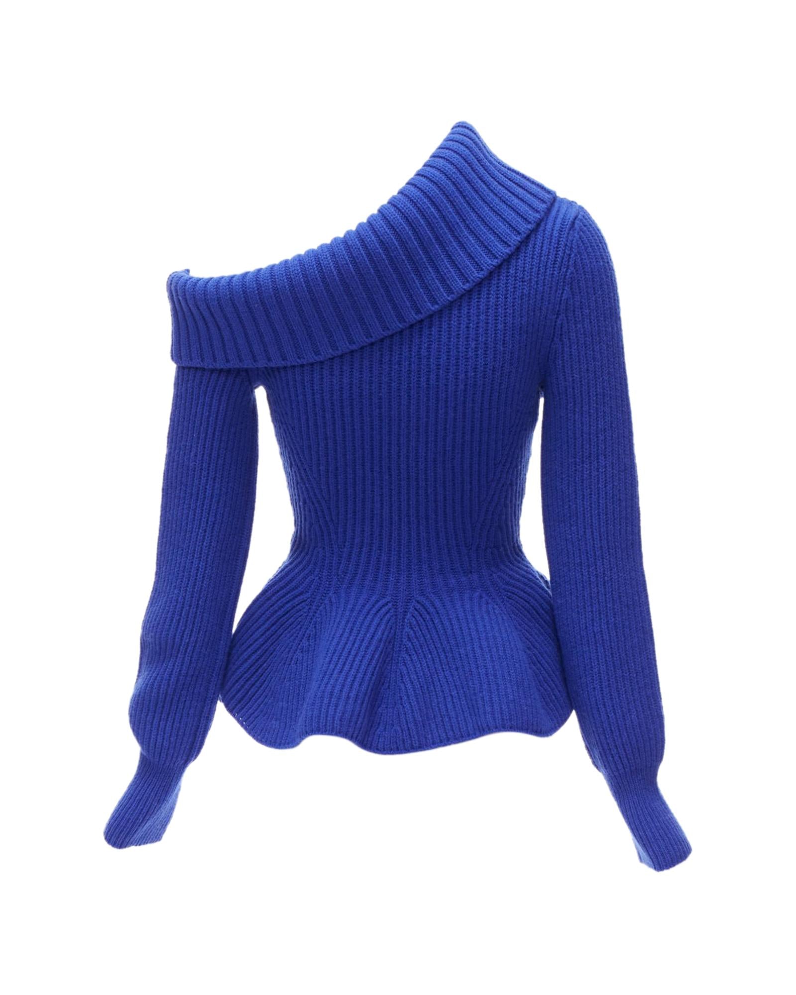 Pre-owned Elegant Knitted Top with Asymmetric Neckline and Peplum Hem