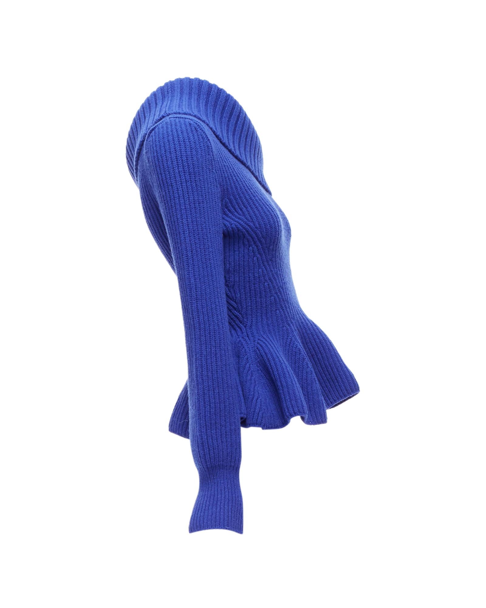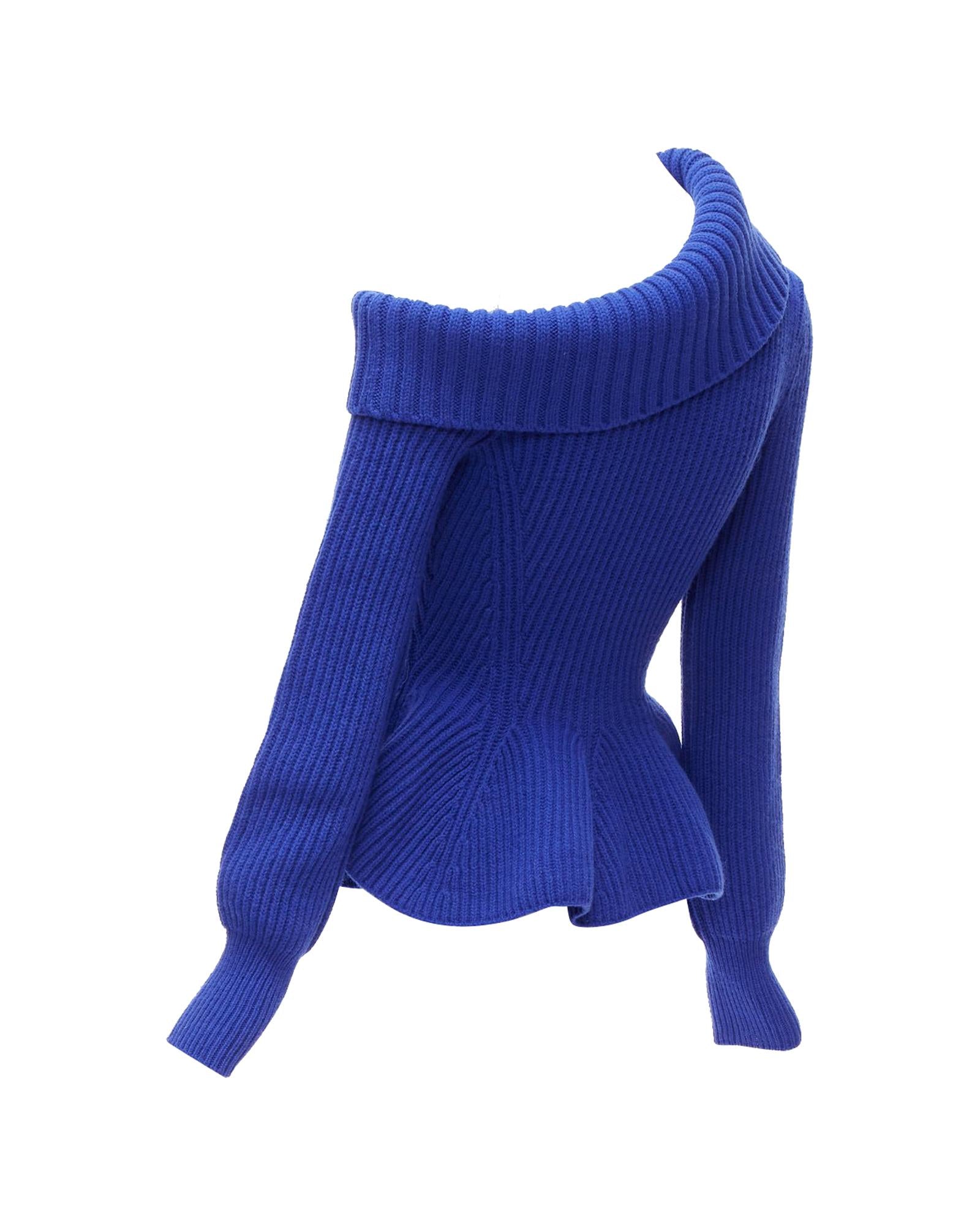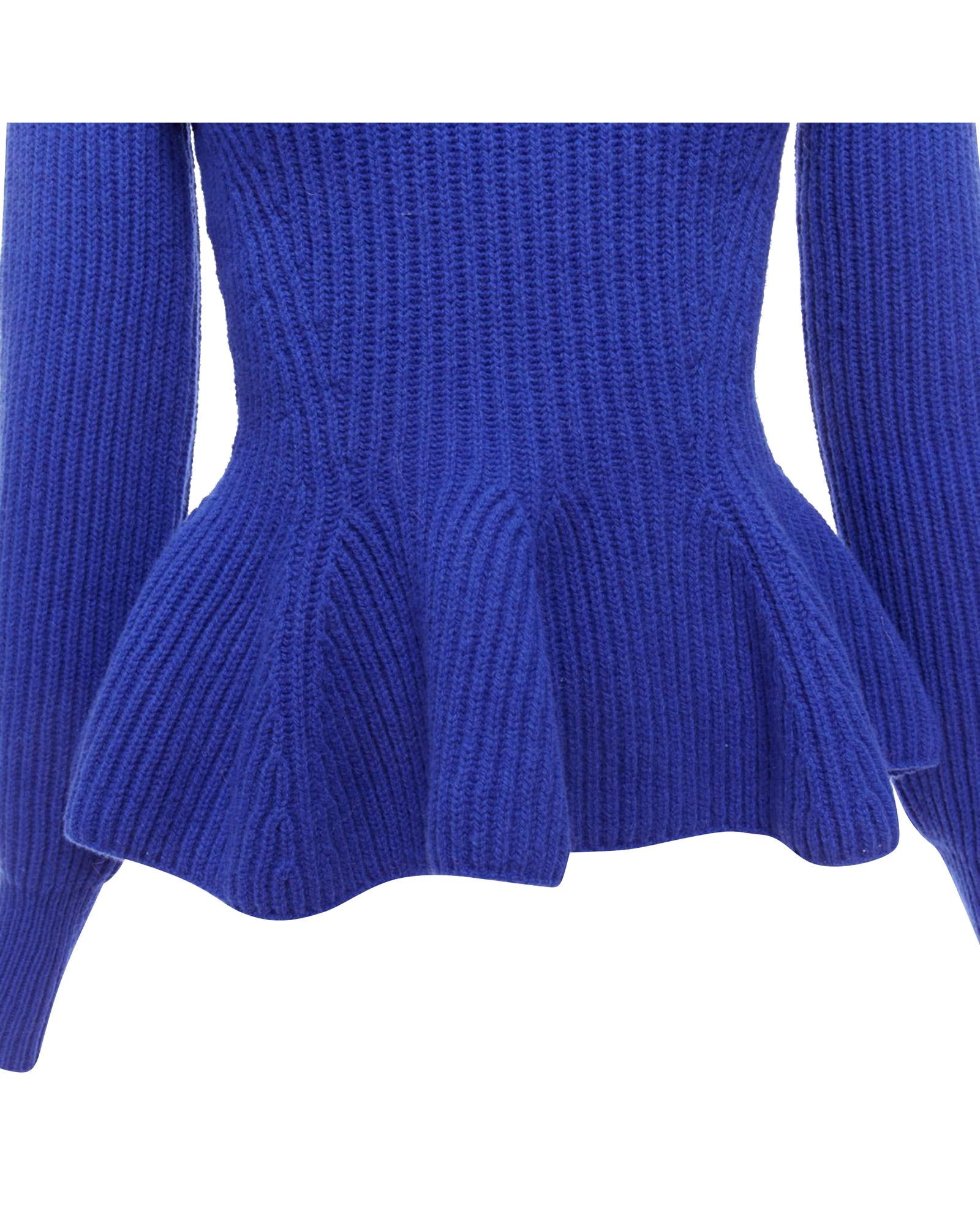 Pre-owned Elegant Knitted Top with Asymmetric Neckline and Peplum Hem