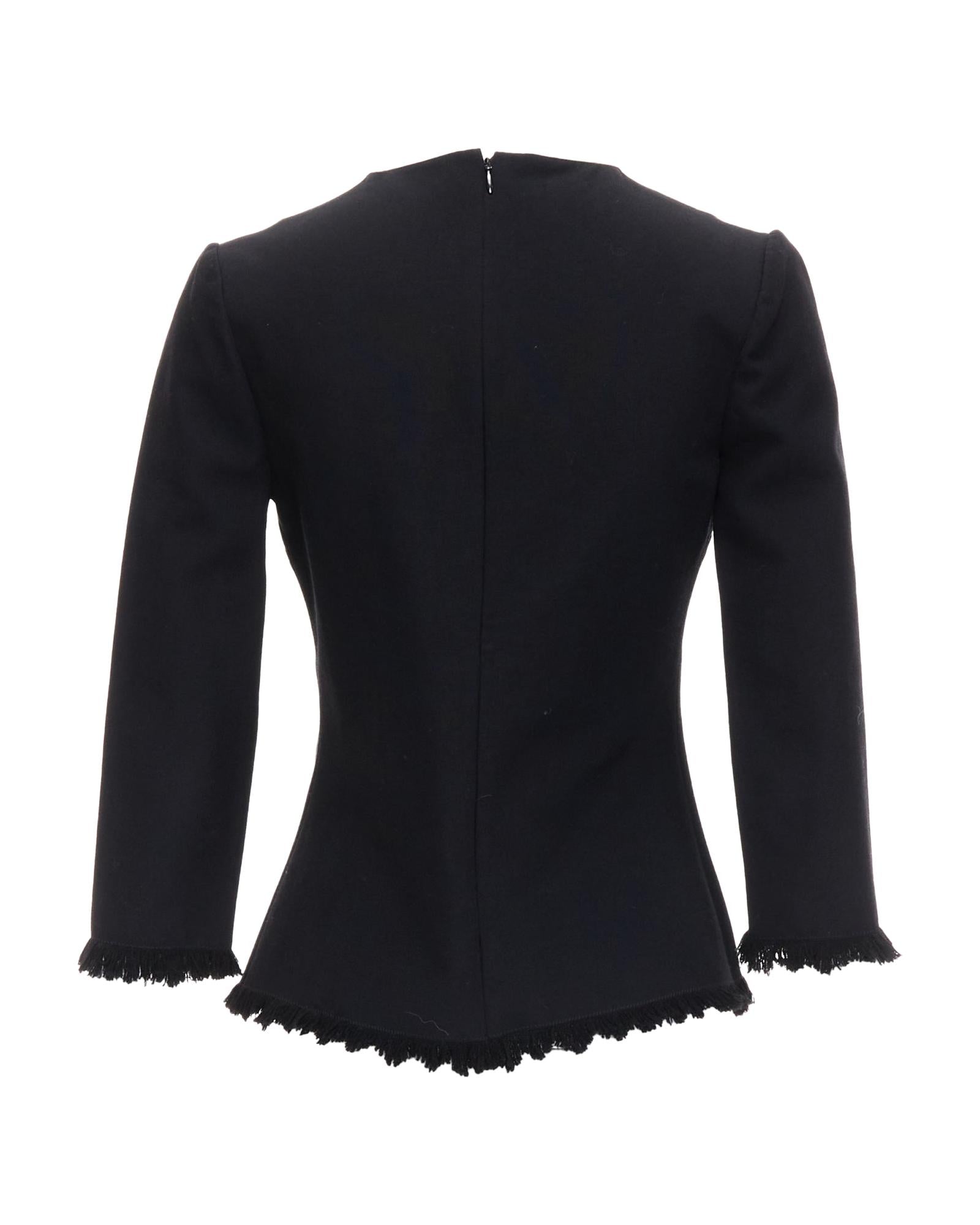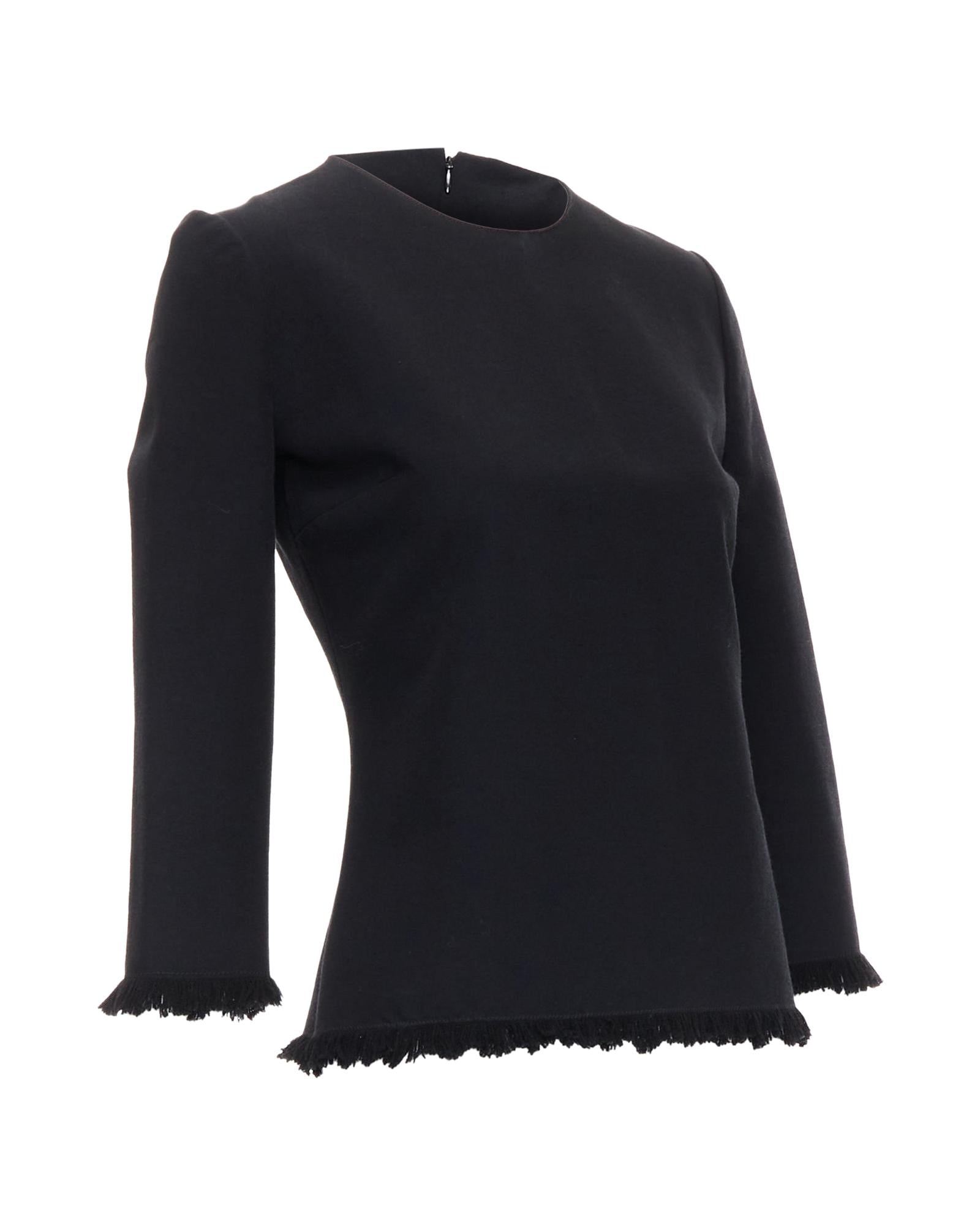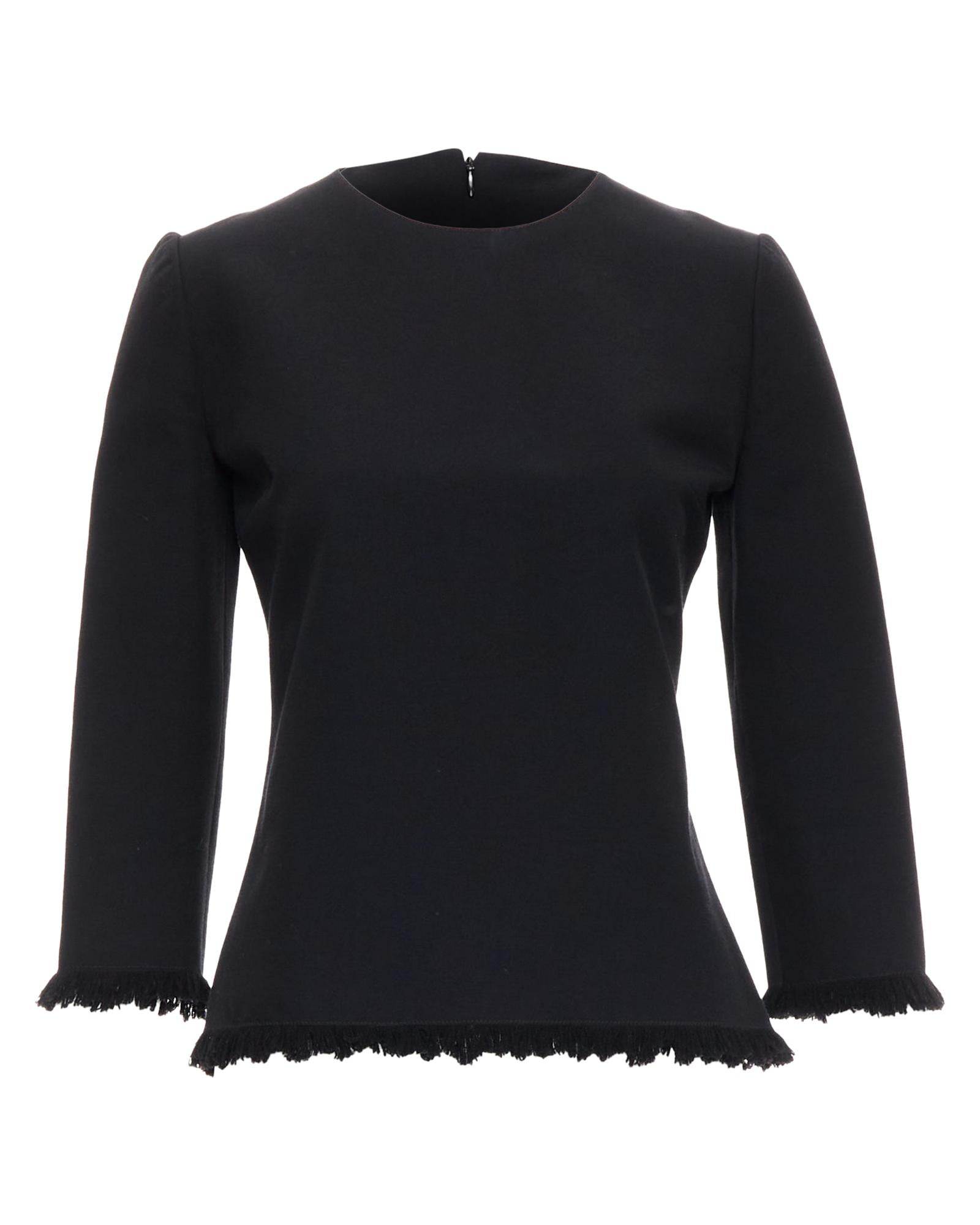 Pre-owned Elegant Top with Long Sleeves and Unique Fringe Detail