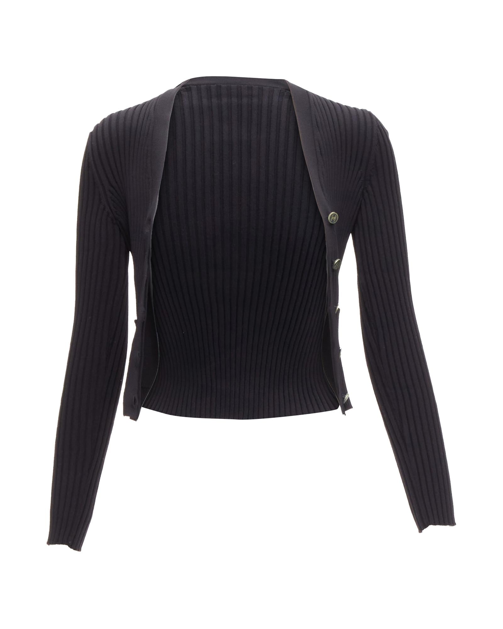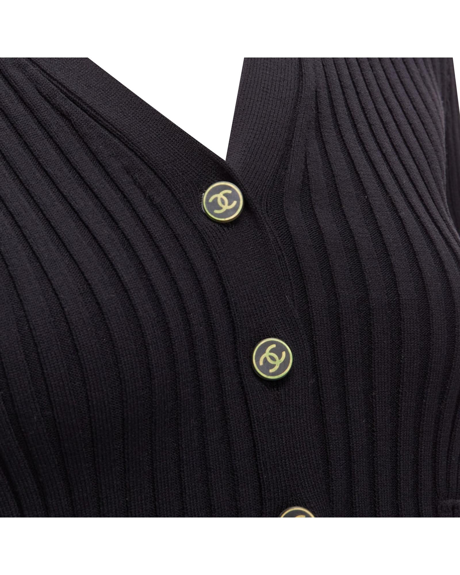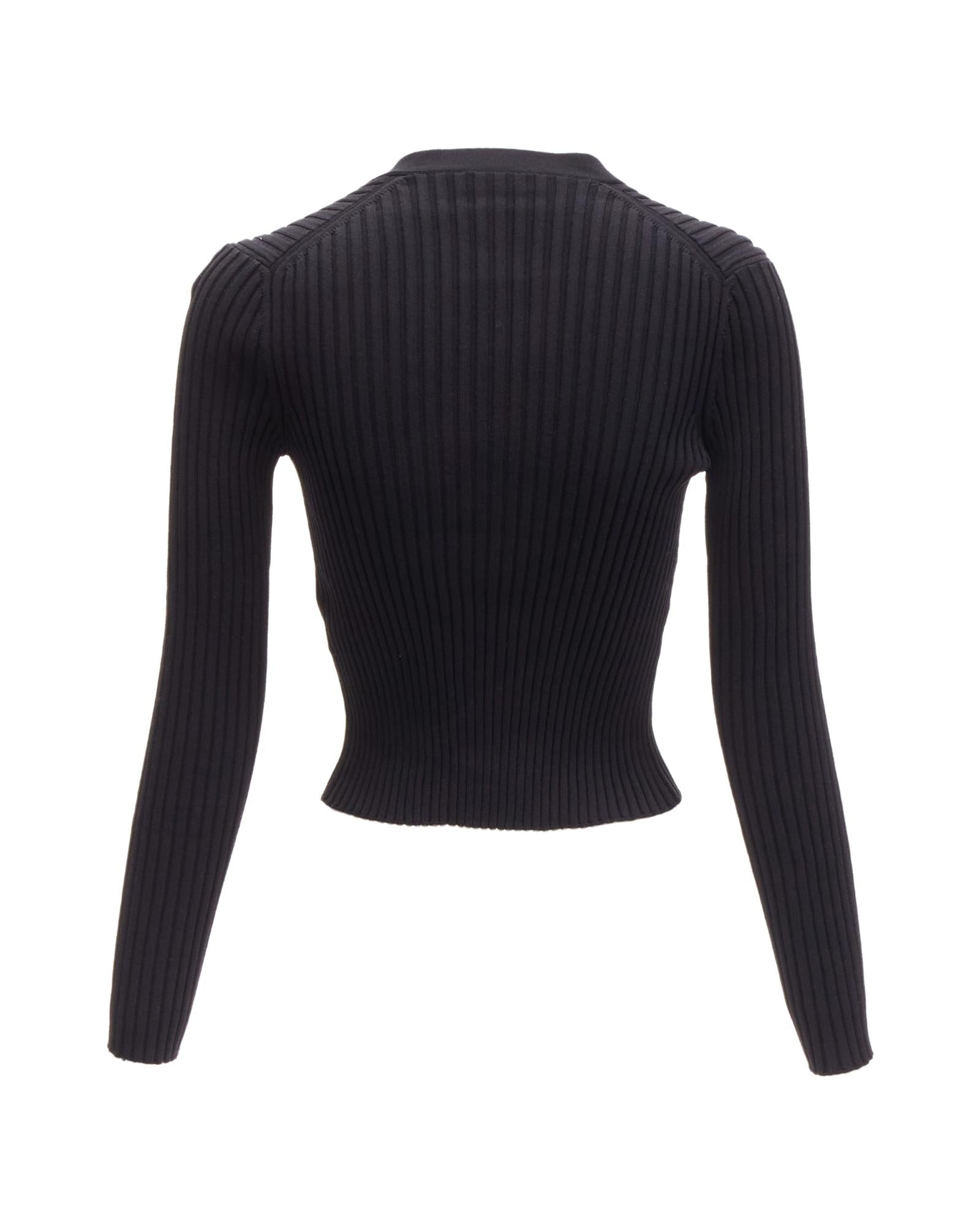 Pre-owned Ribbed Knitwear Top With Button Front V-Neck and Long Sleeves