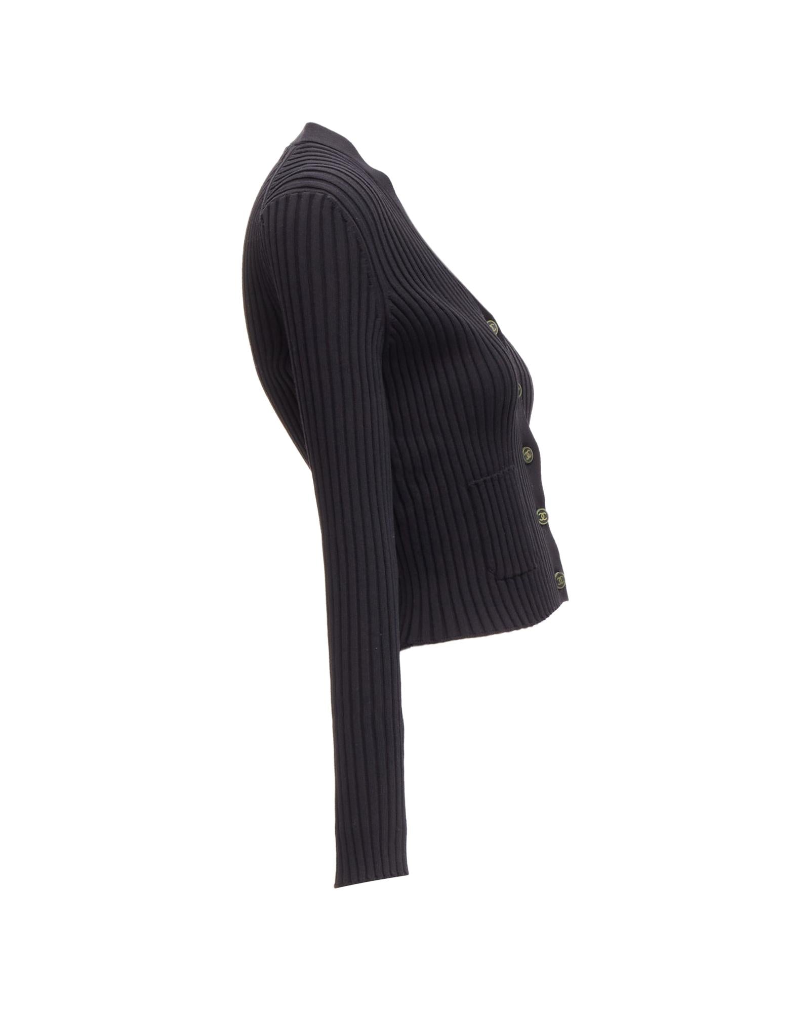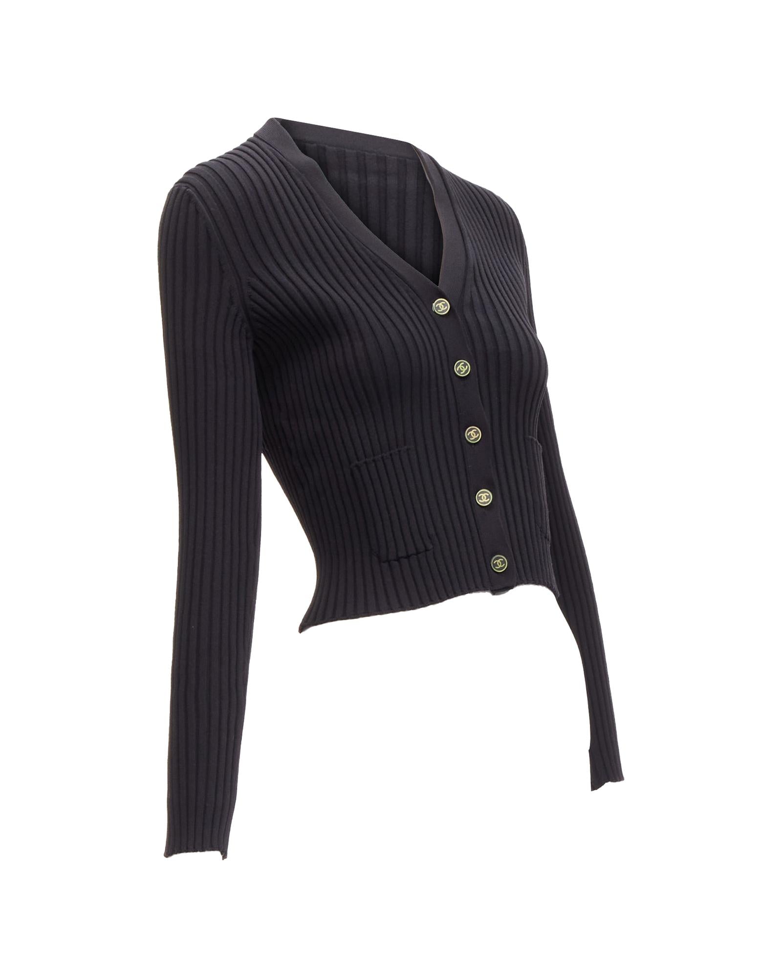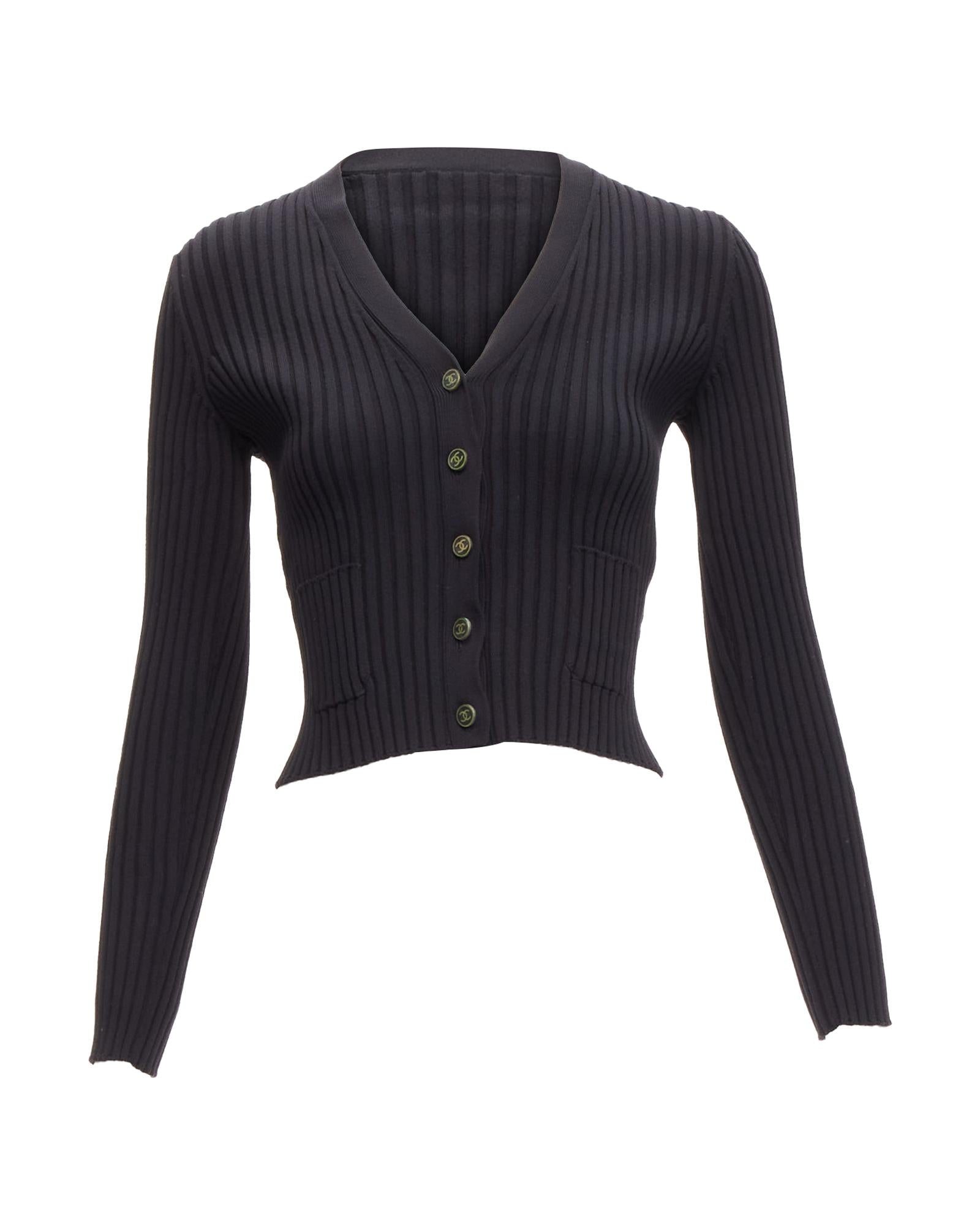Pre-owned Ribbed Knitwear Top With Button Front V-Neck and Long Sleeves