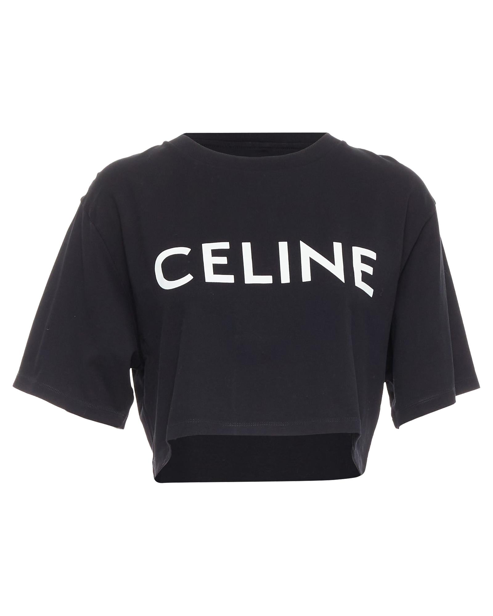 Pre-owned Cropped Cotton T-Shirt with Short Sleeves and Text Print