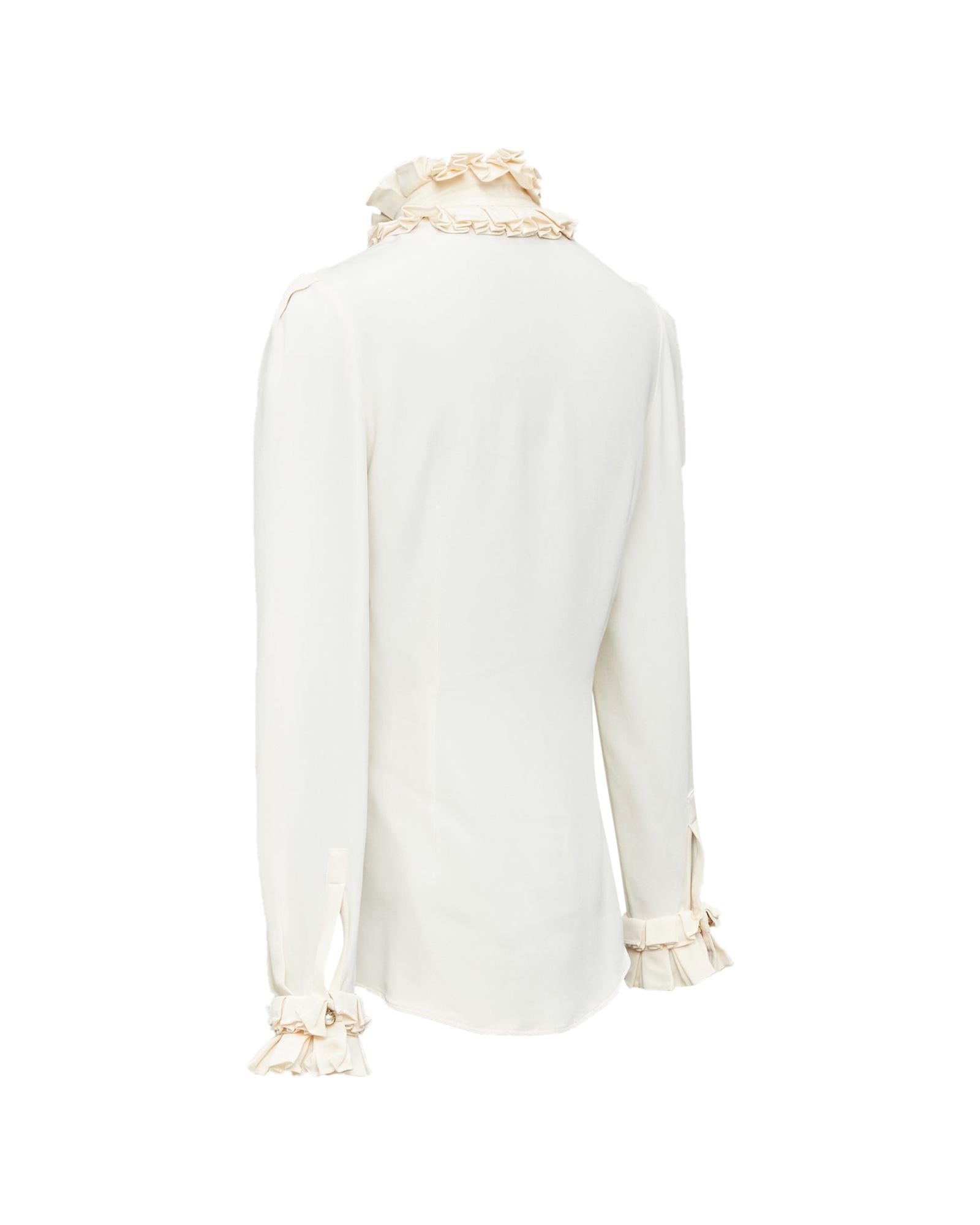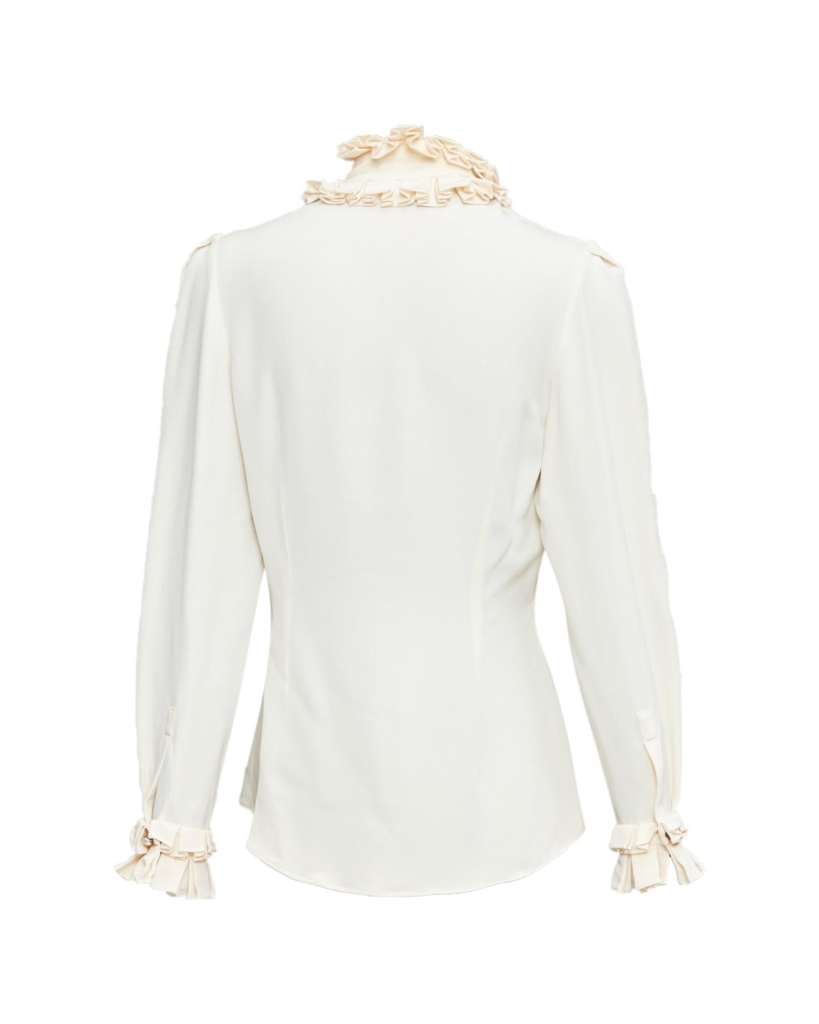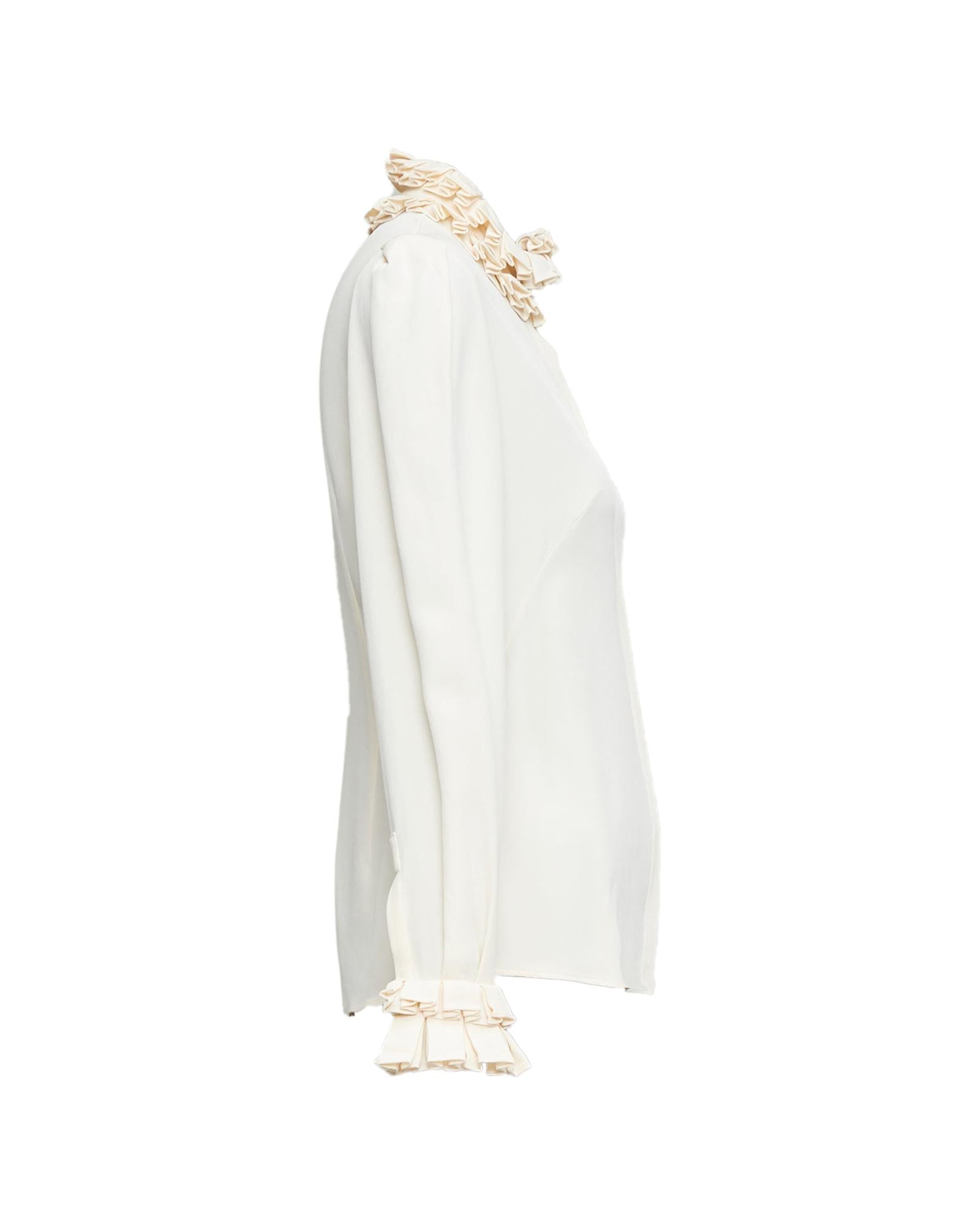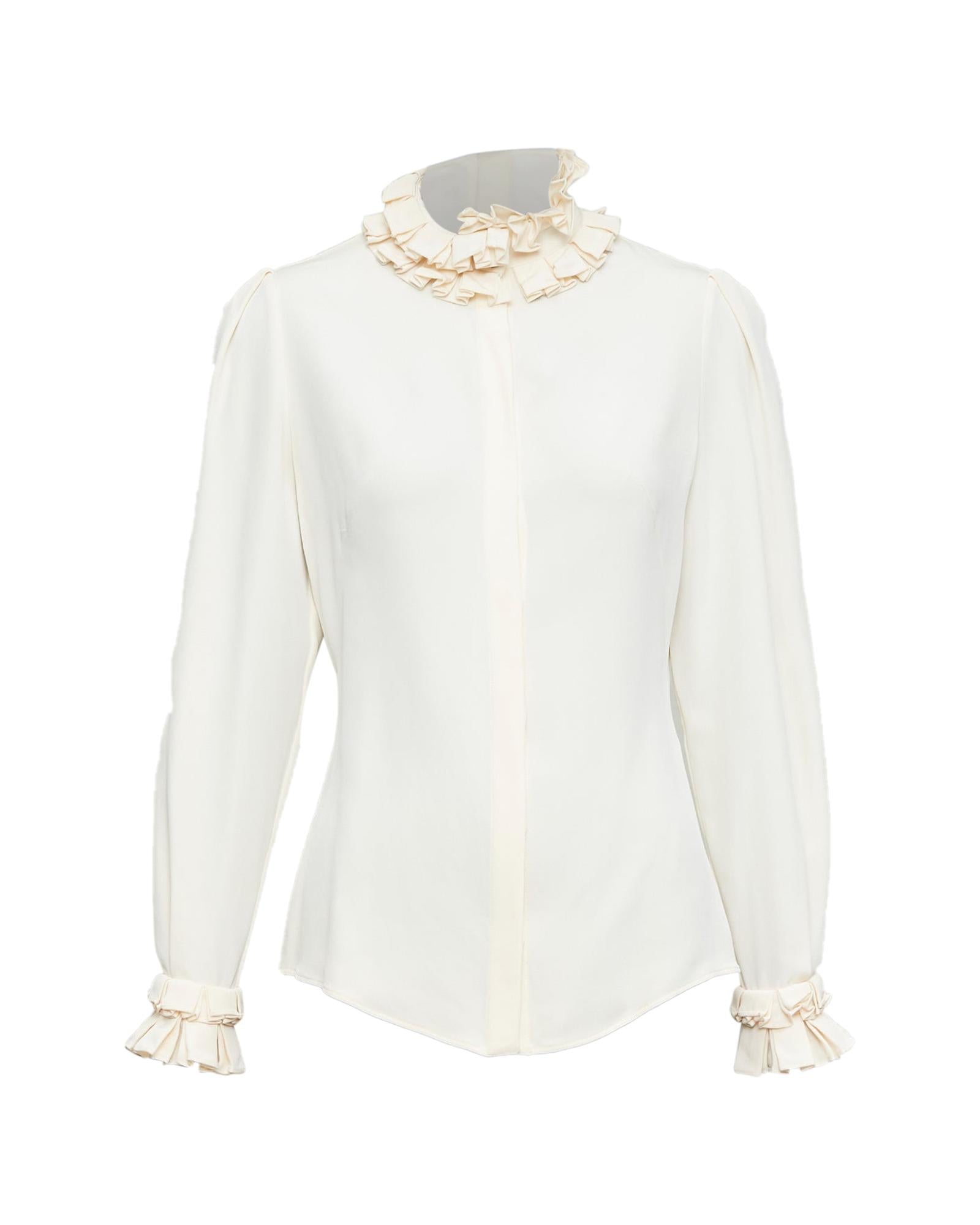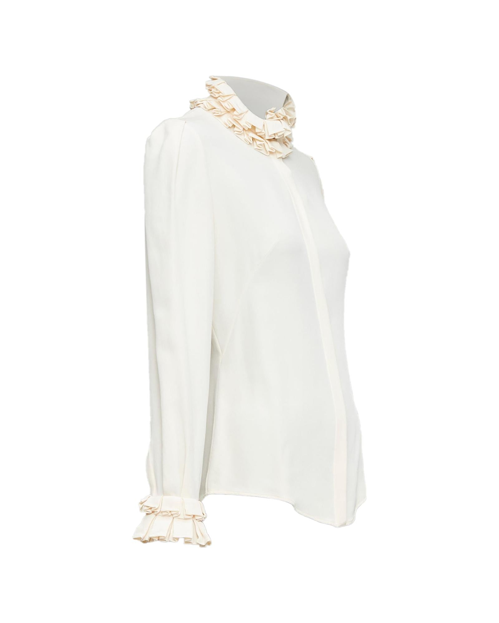 Pre-owned Elegant Long Sleeve Ruffle Trim Blouse Comfortable Fit
