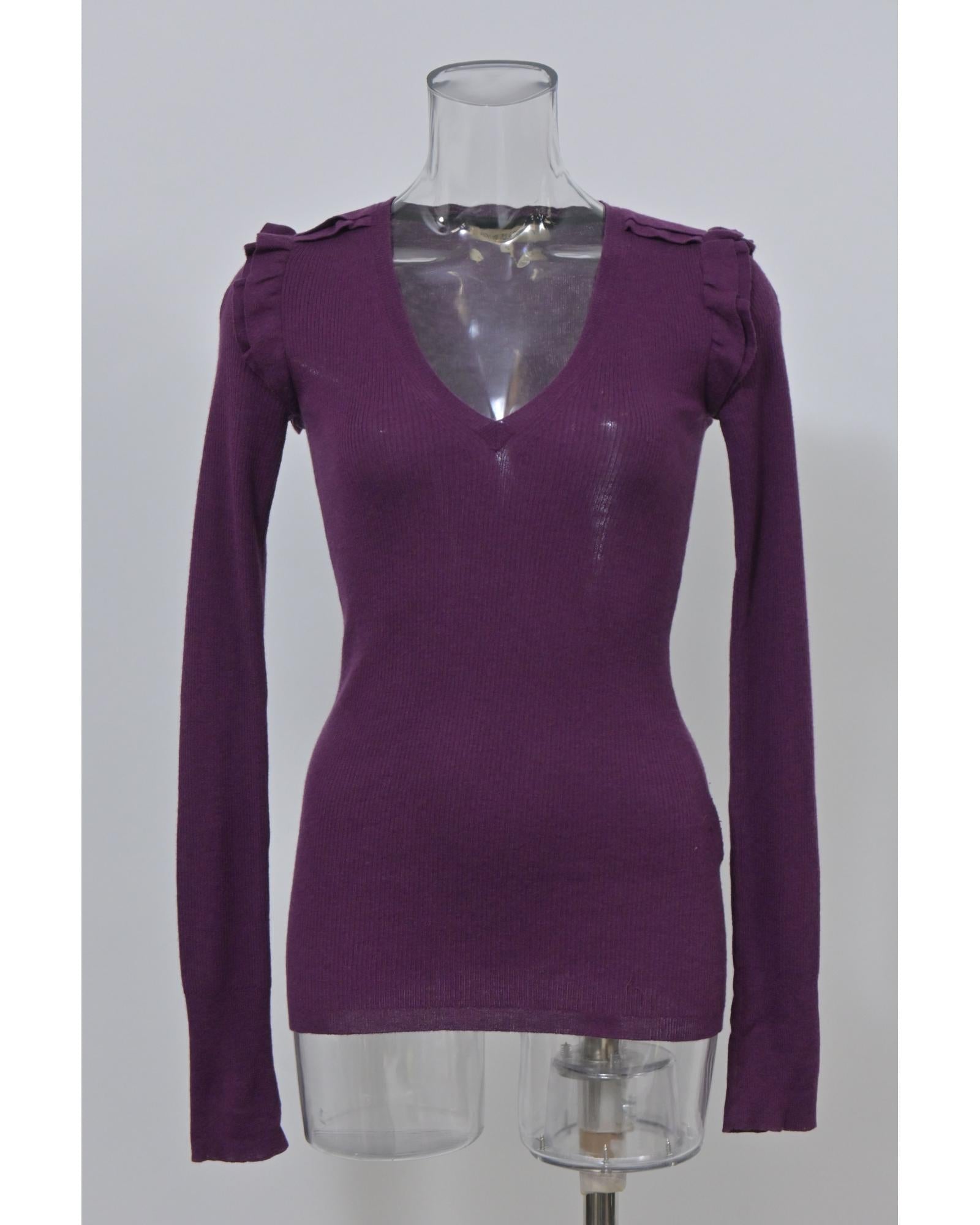 Pre-owned Ribbed Knit VNeck Long Sleeve Sweater