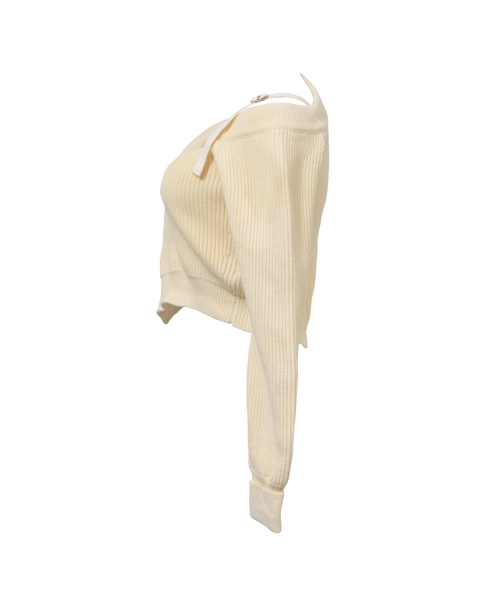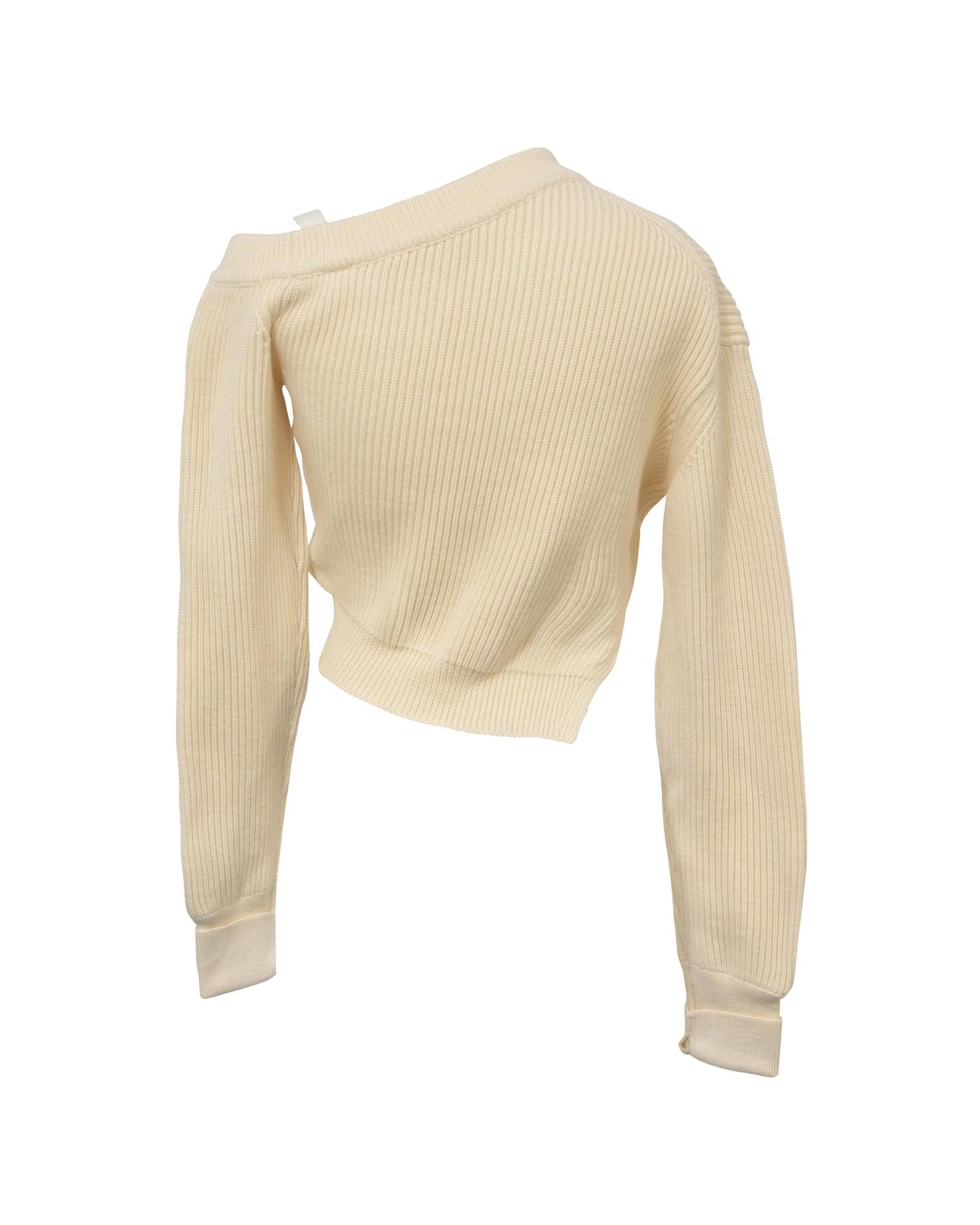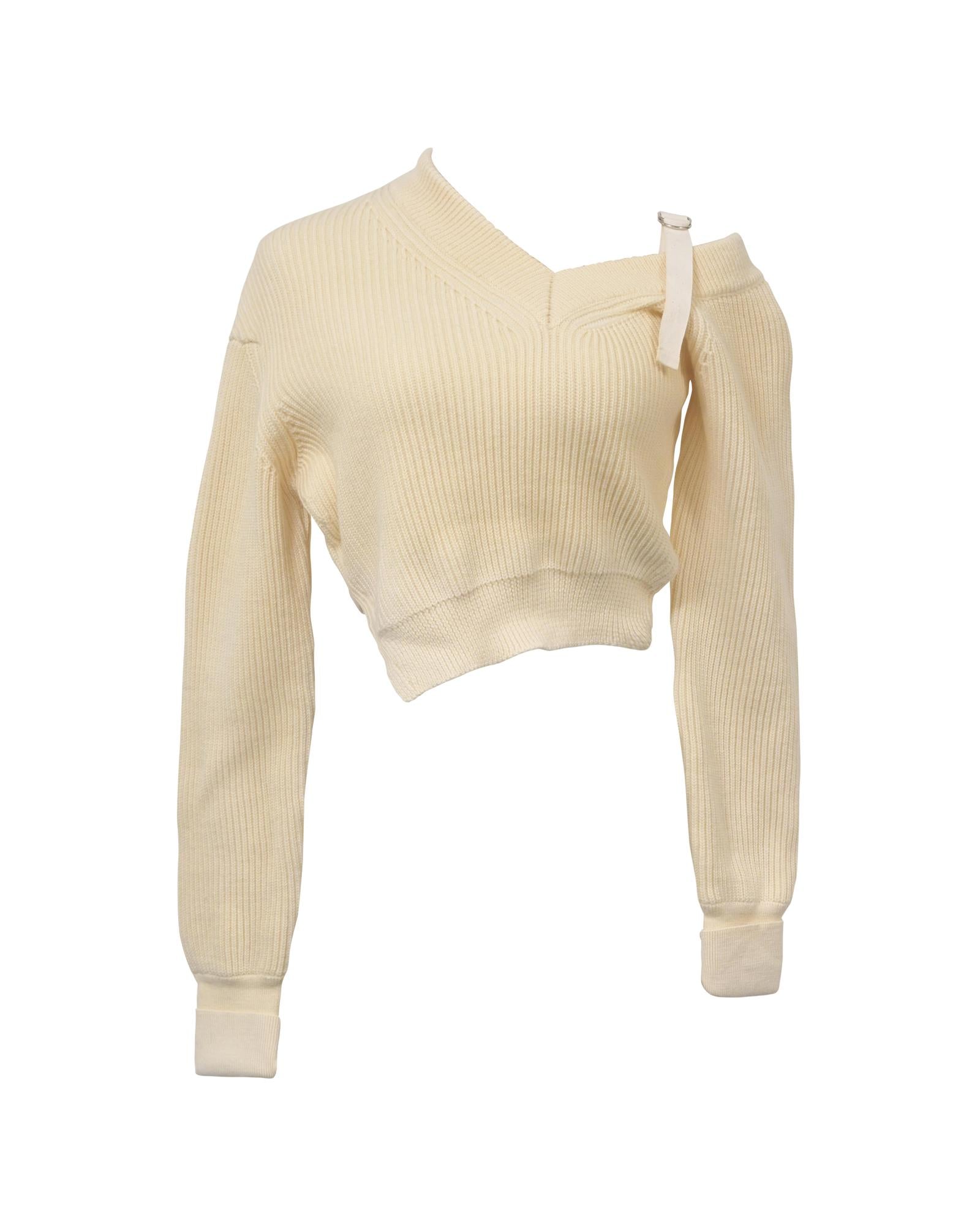 Pre-owned Cropped Ribbed Knit OneShoulder Sweater