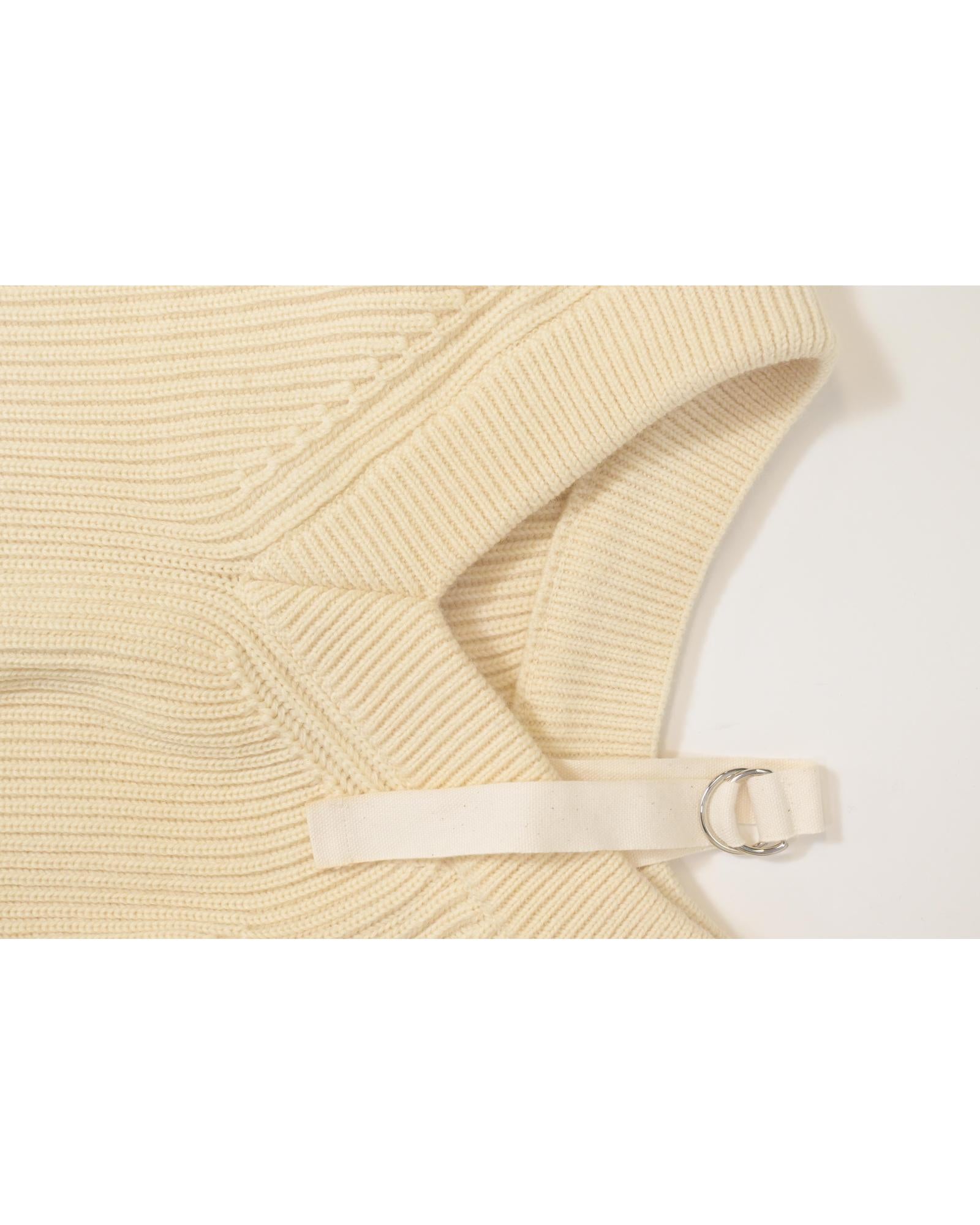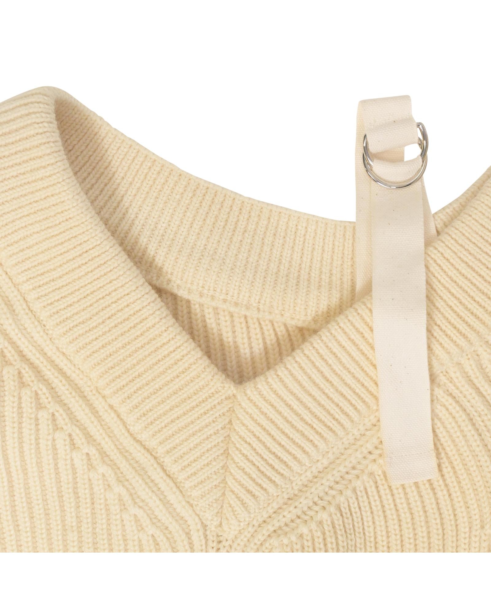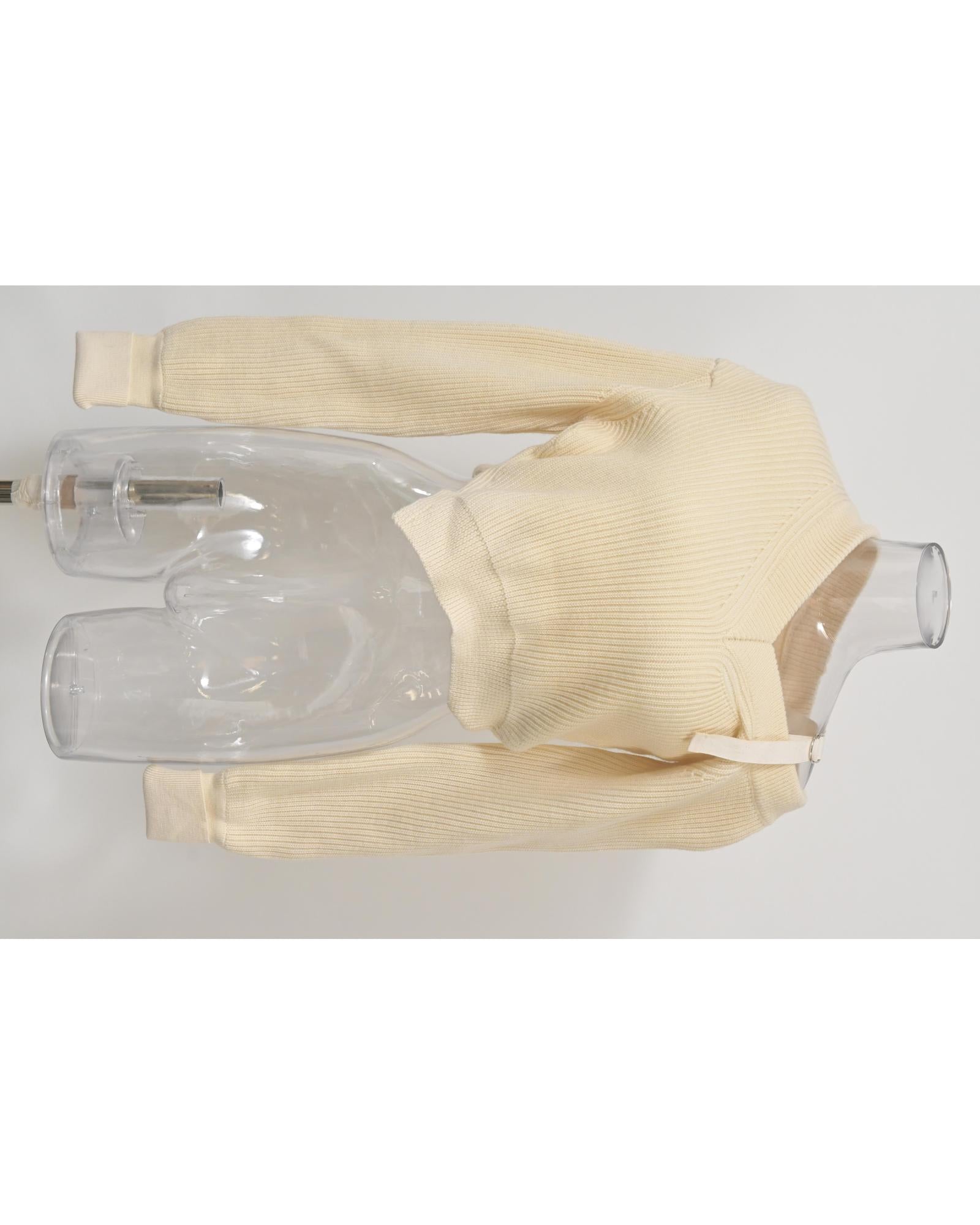 Pre-owned Cropped Ribbed Knit OneShoulder Sweater