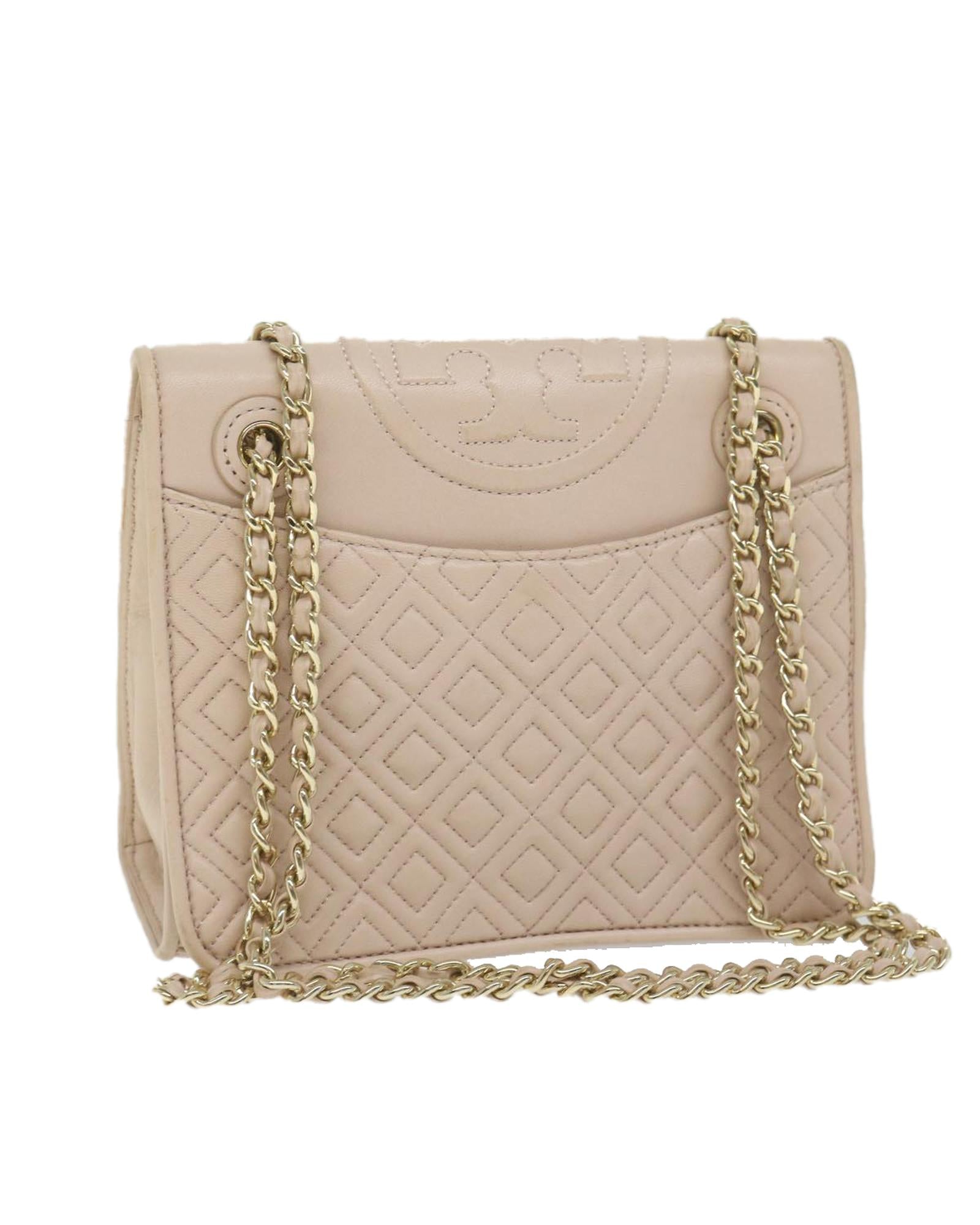 The Tory Burch Pink Leather Shoulder Bag showcases a feminine and sophisticated design with its soft pink color and high-quality leather material. Despite displaying signs of wear such as rubbing and a slight loss of shape on the exterior this shoulder bag retains its elegant charm.