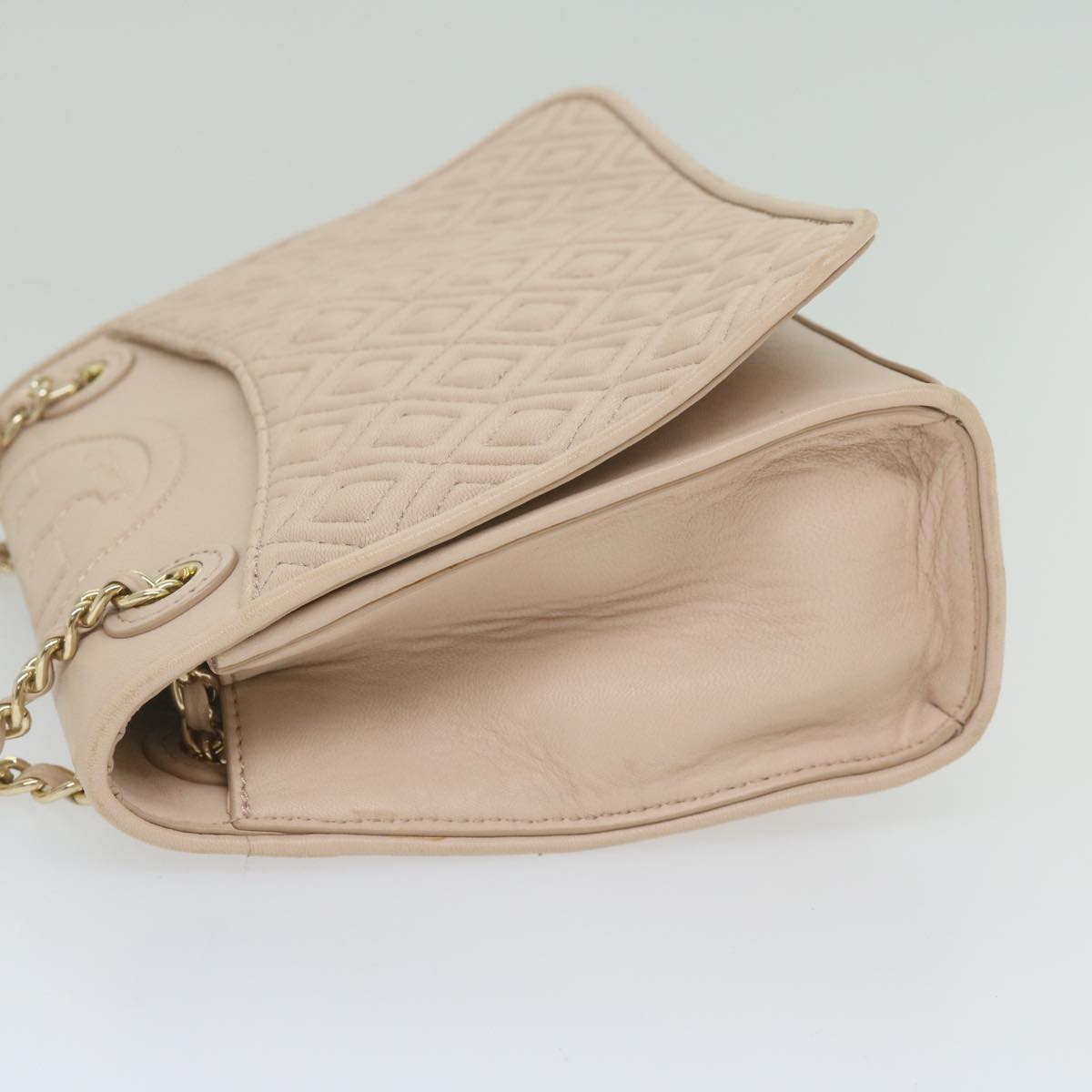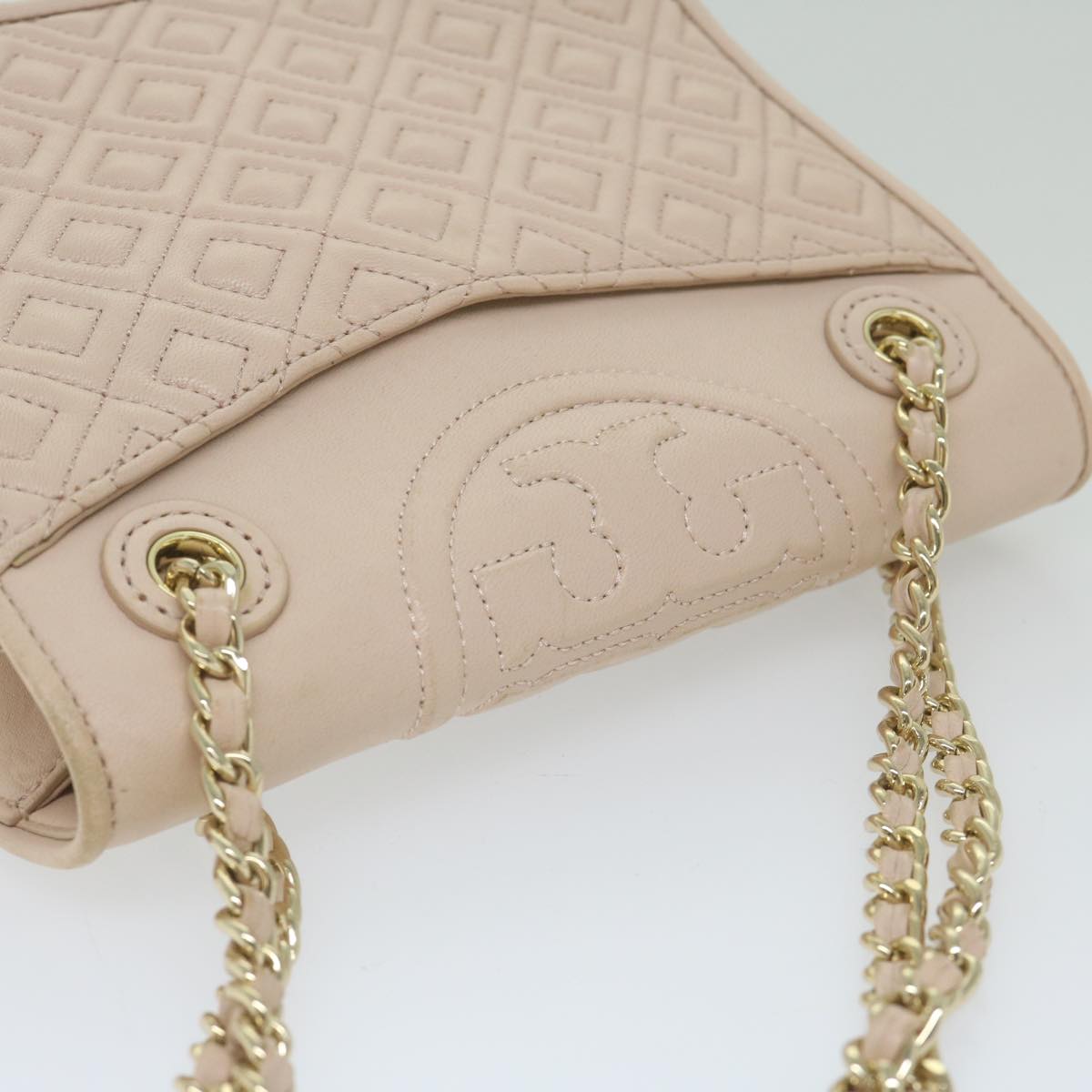 The Tory Burch Pink Leather Shoulder Bag showcases a feminine and sophisticated design with its soft pink color and high-quality leather material. Despite displaying signs of wear such as rubbing and a slight loss of shape on the exterior this shoulder bag retains its elegant charm.
