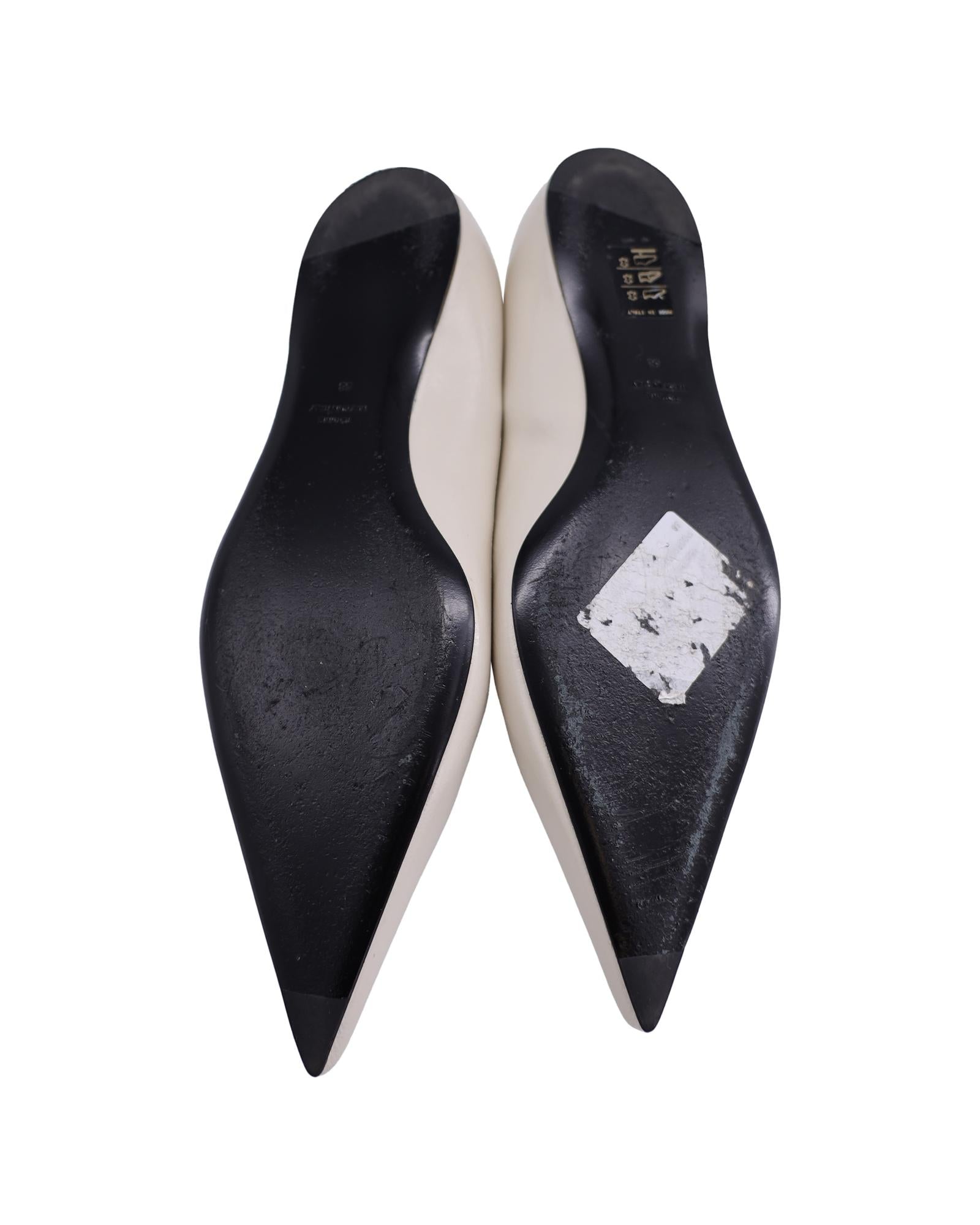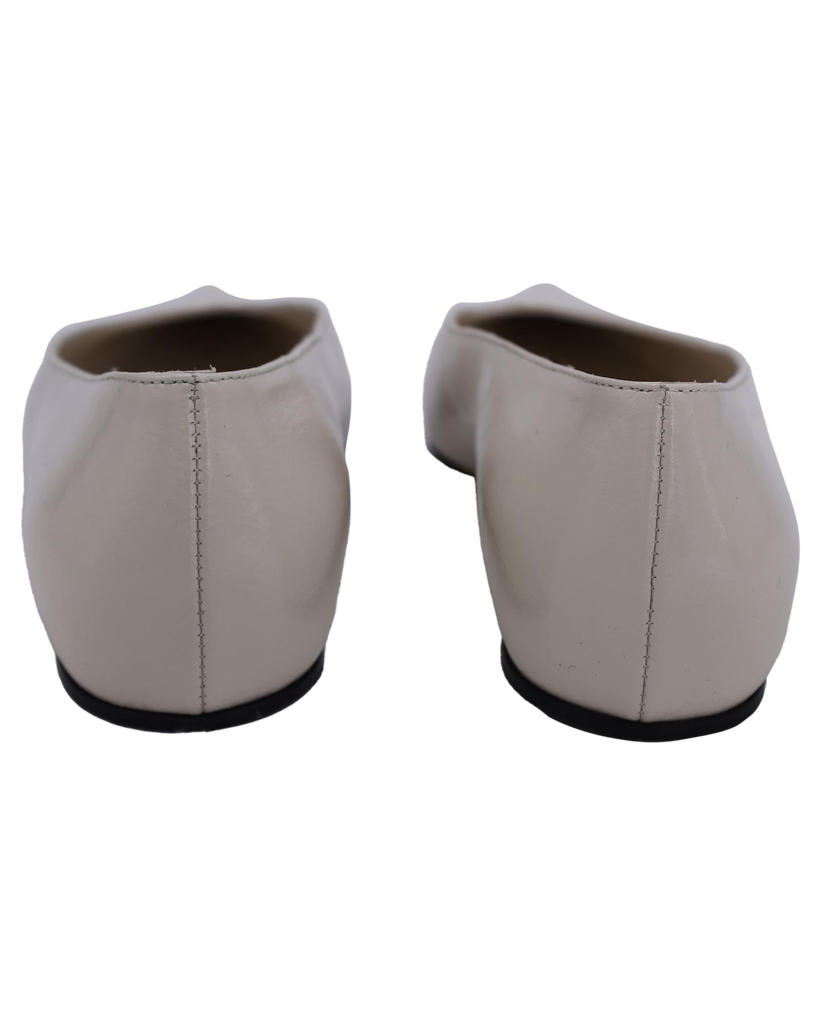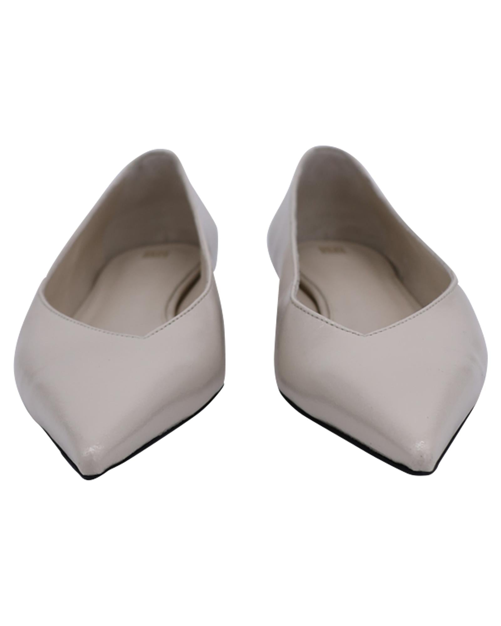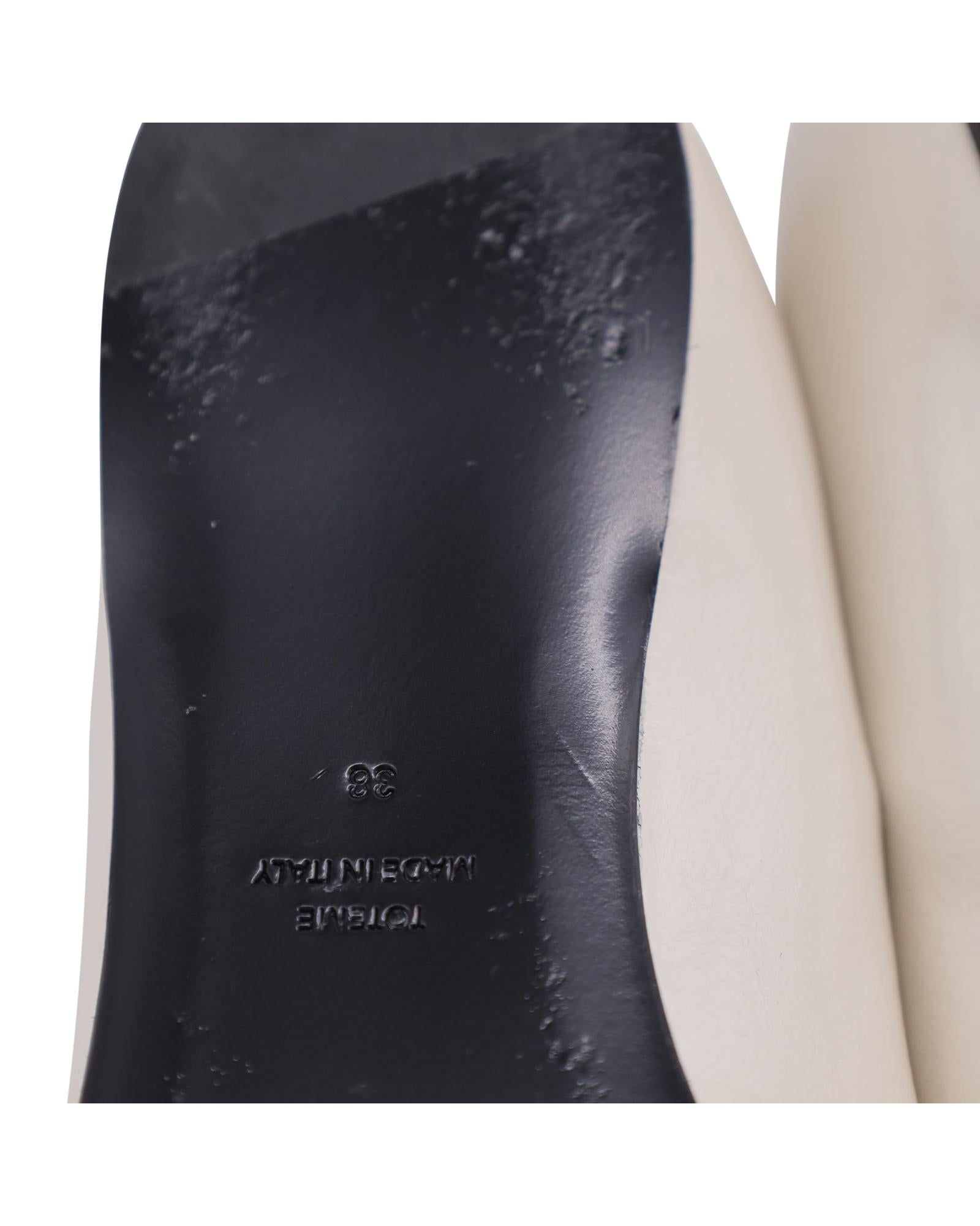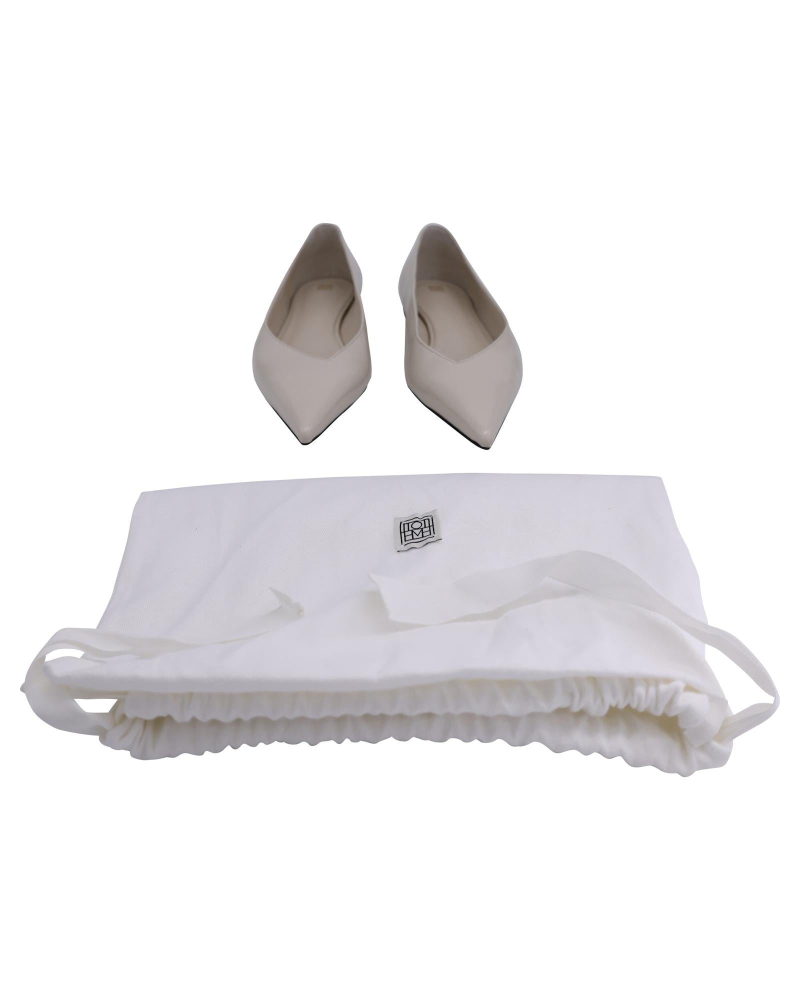 - Toteme Asymmetric Ballet Flats in Cream Calfskin Leather