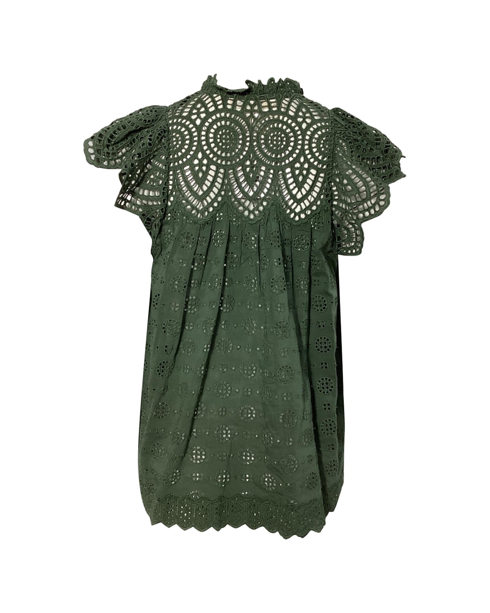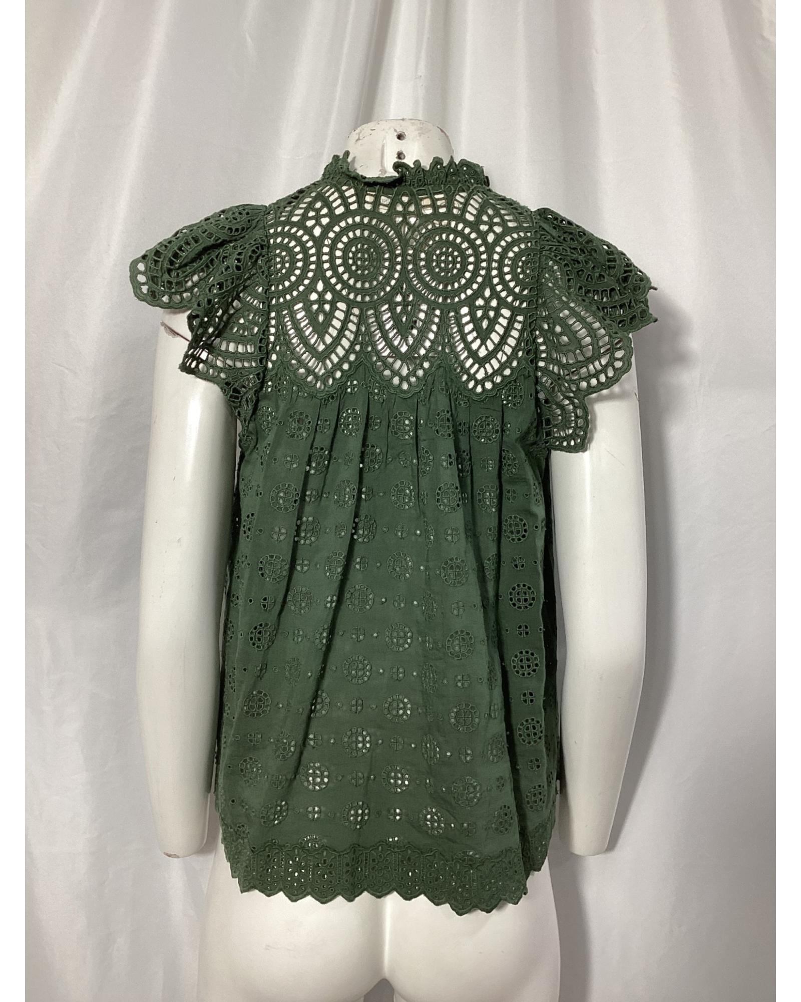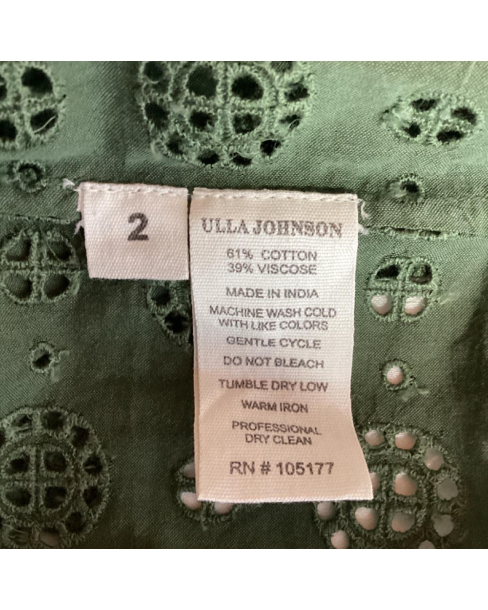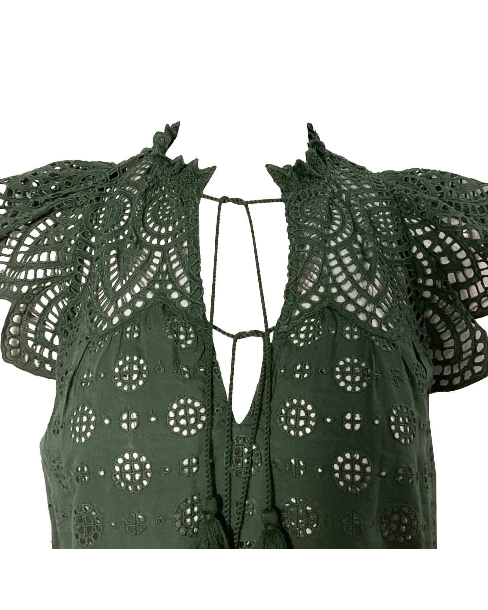 • Ulla Johnson Flutter Sleeve Top in Green Cotton