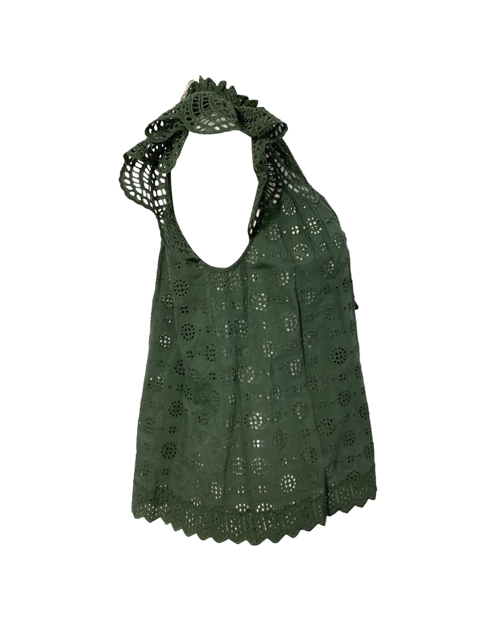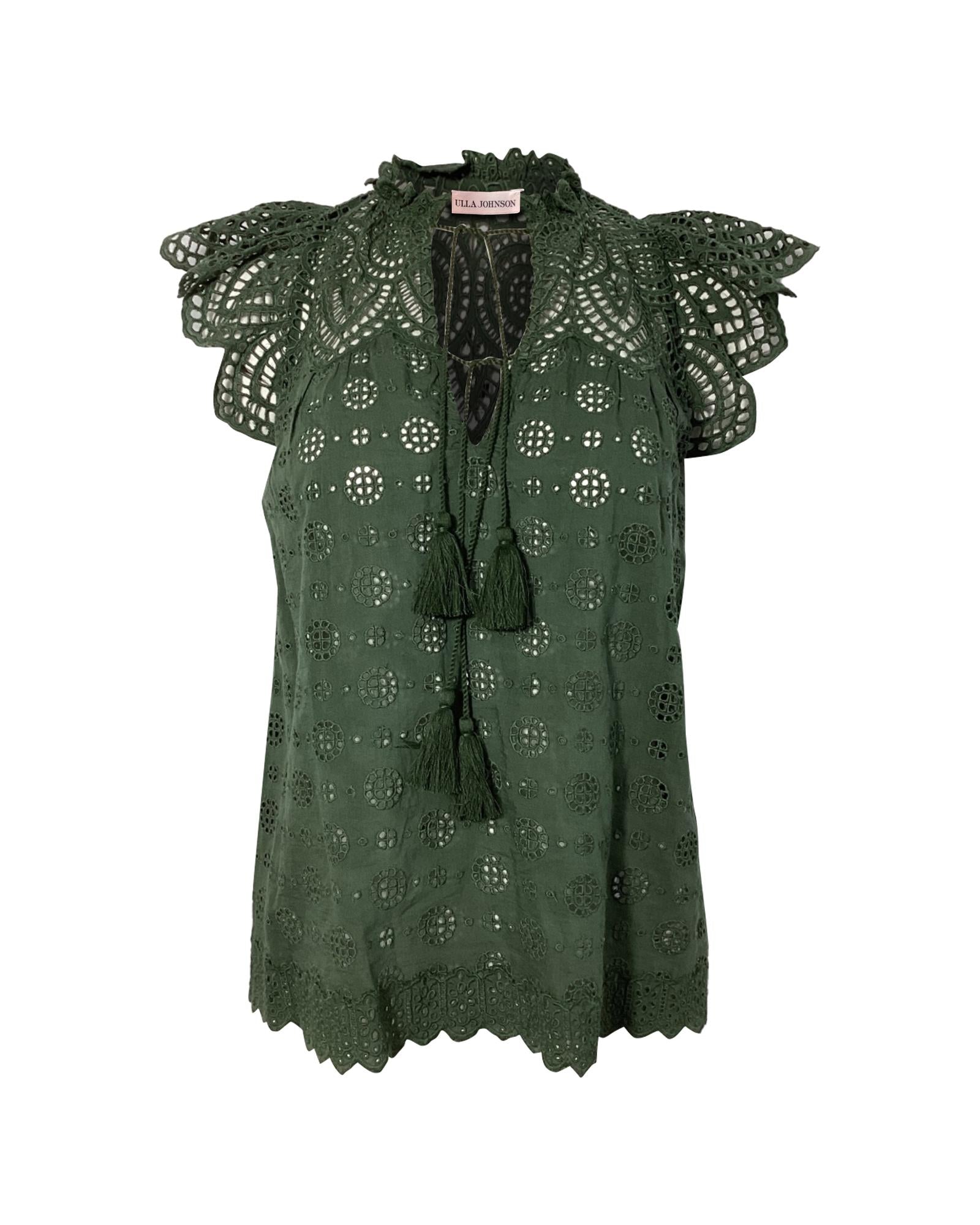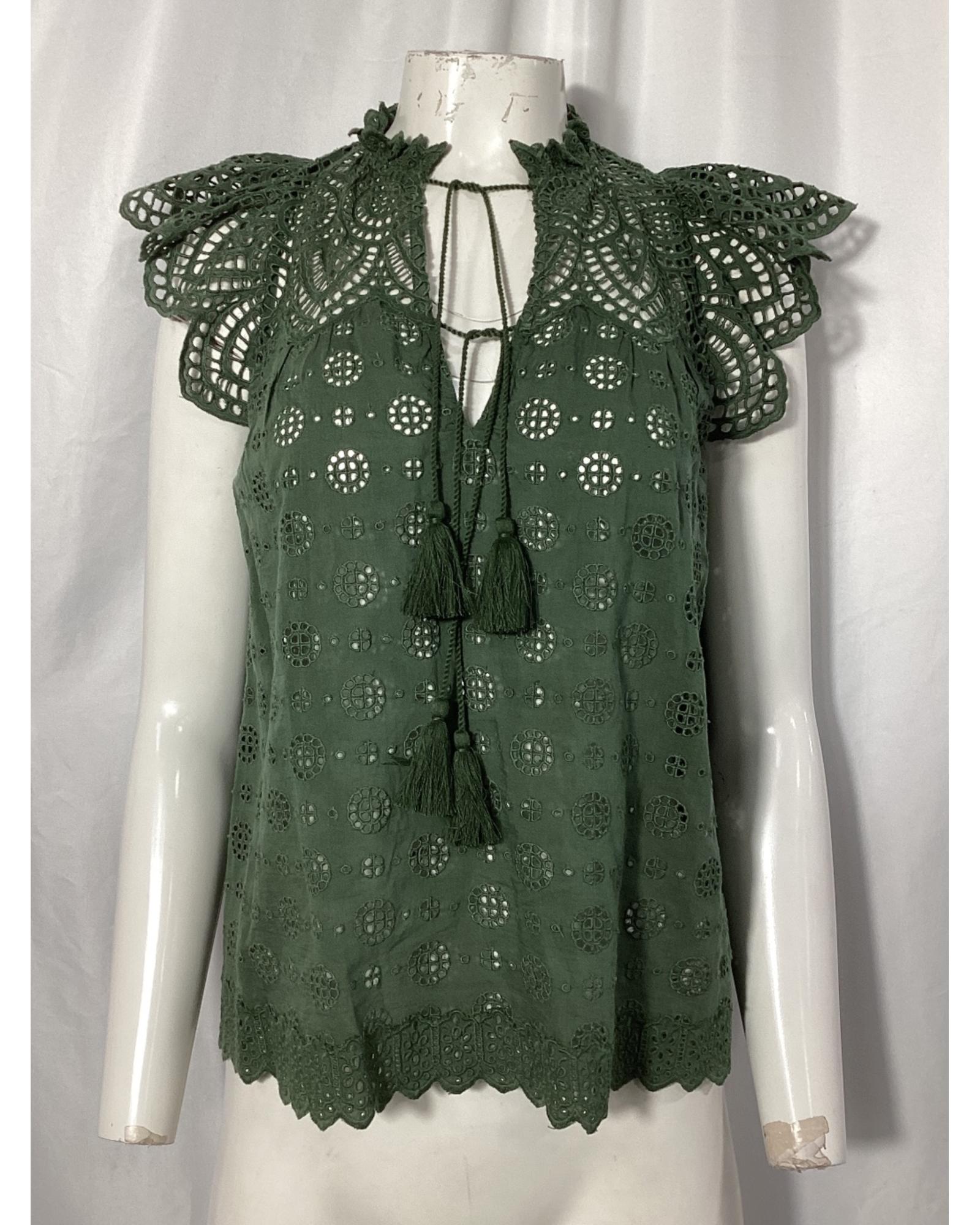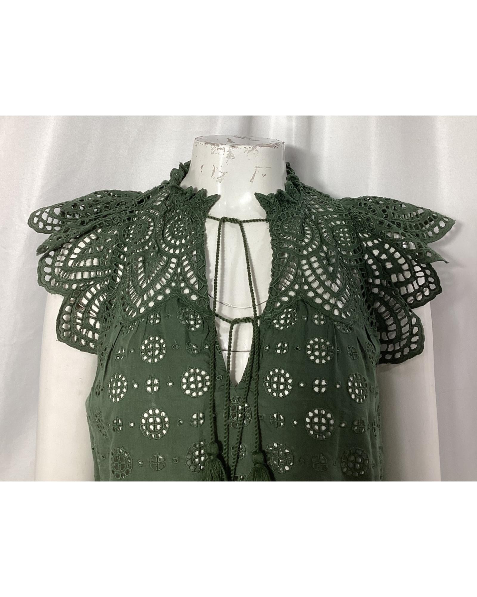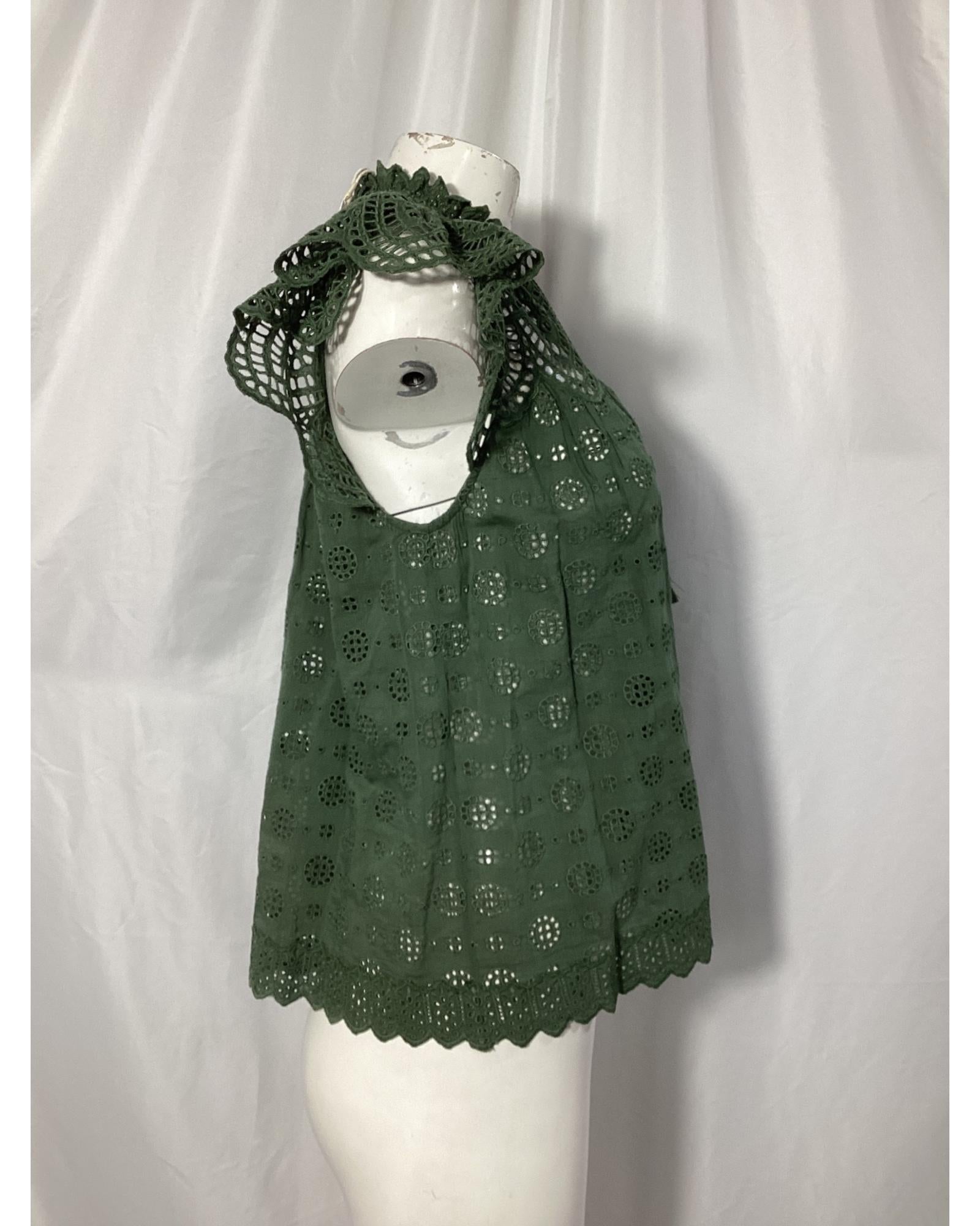 • Ulla Johnson Flutter Sleeve Top in Green Cotton
