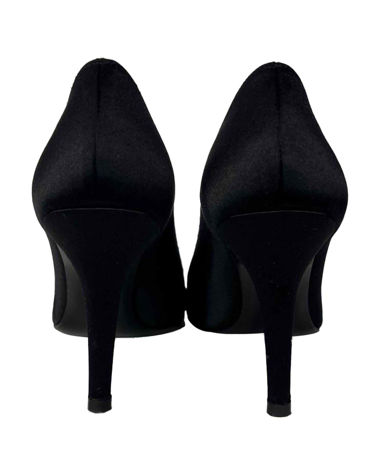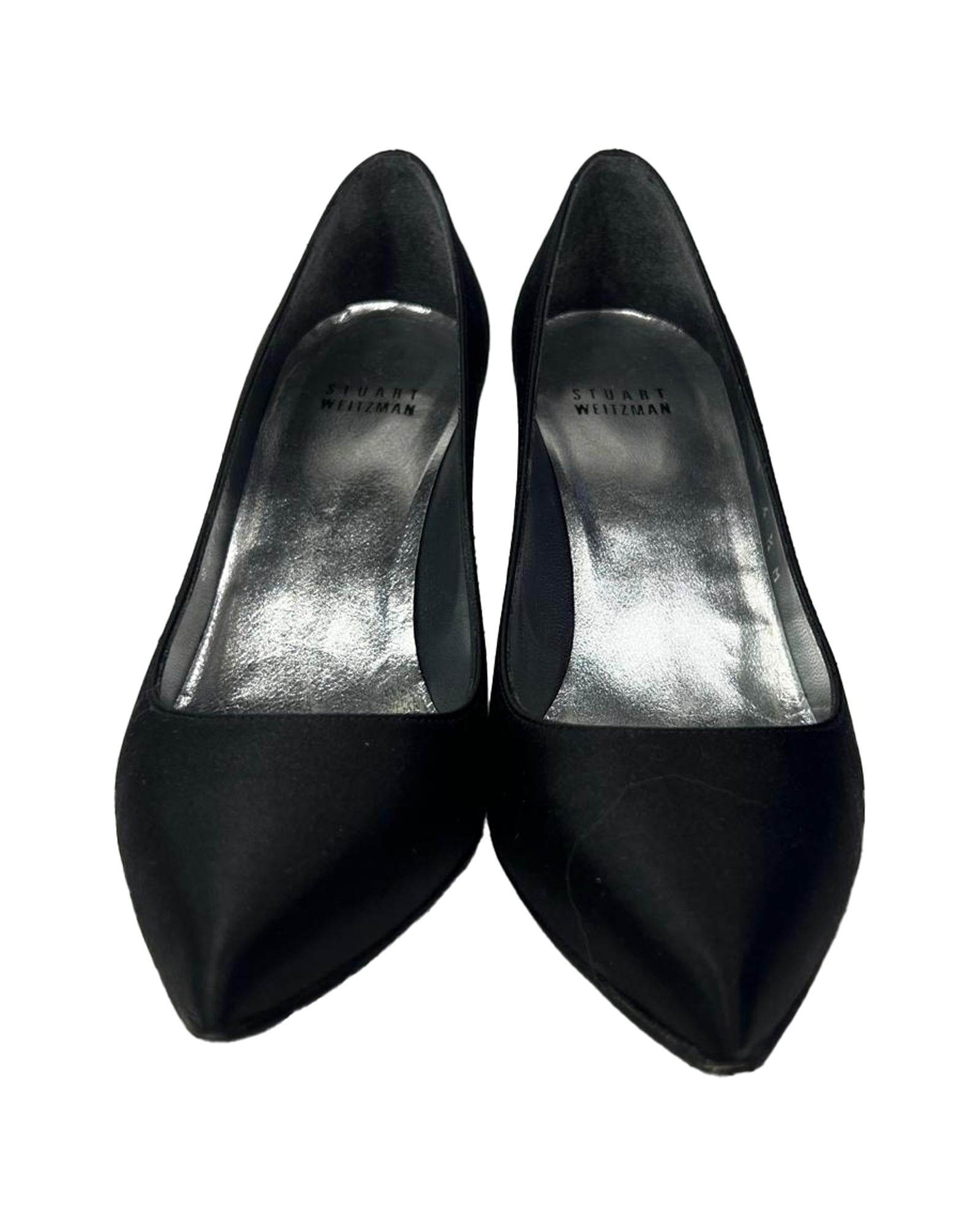 - Stuart Weitzman Pointed Toe Pumps in Black Satin