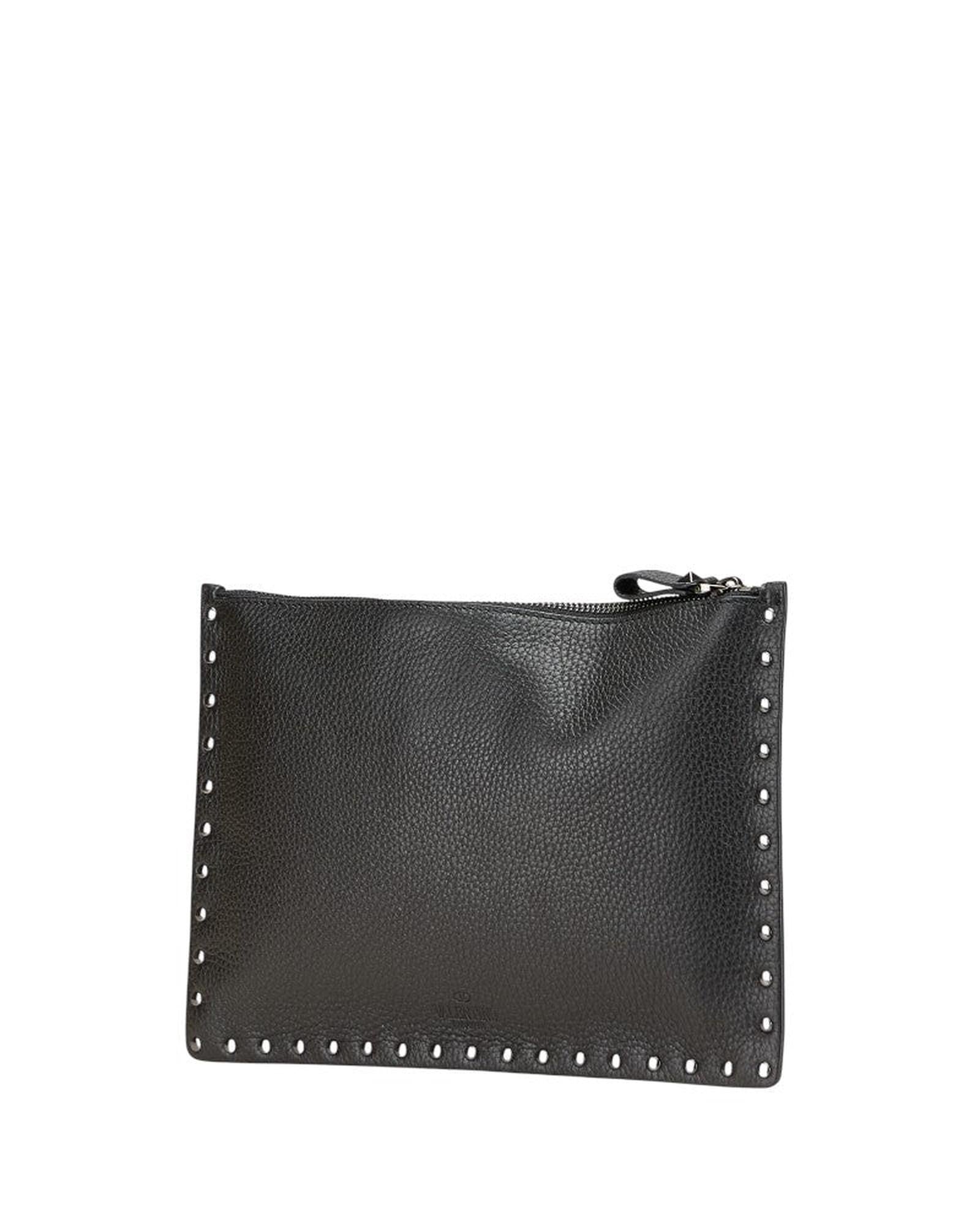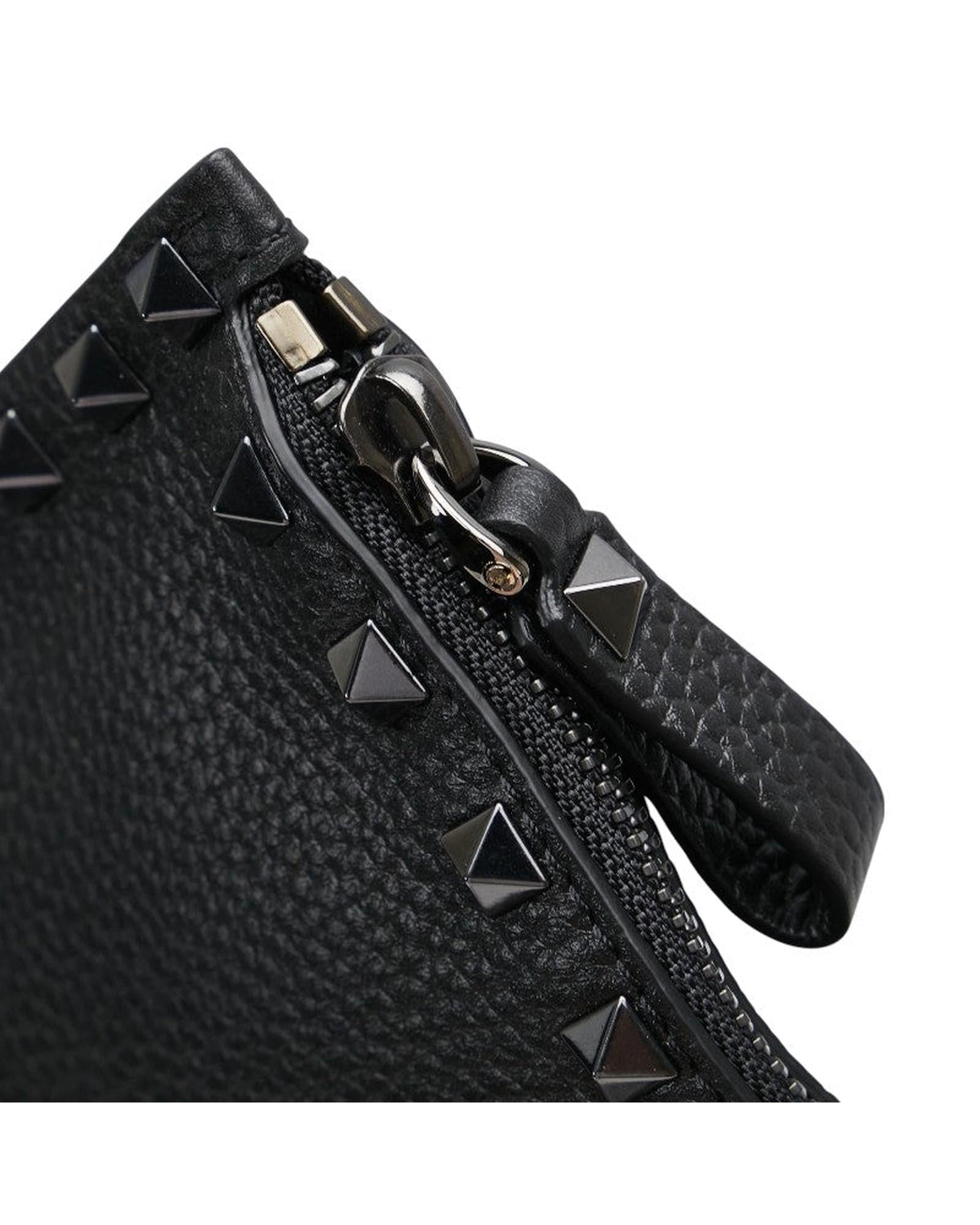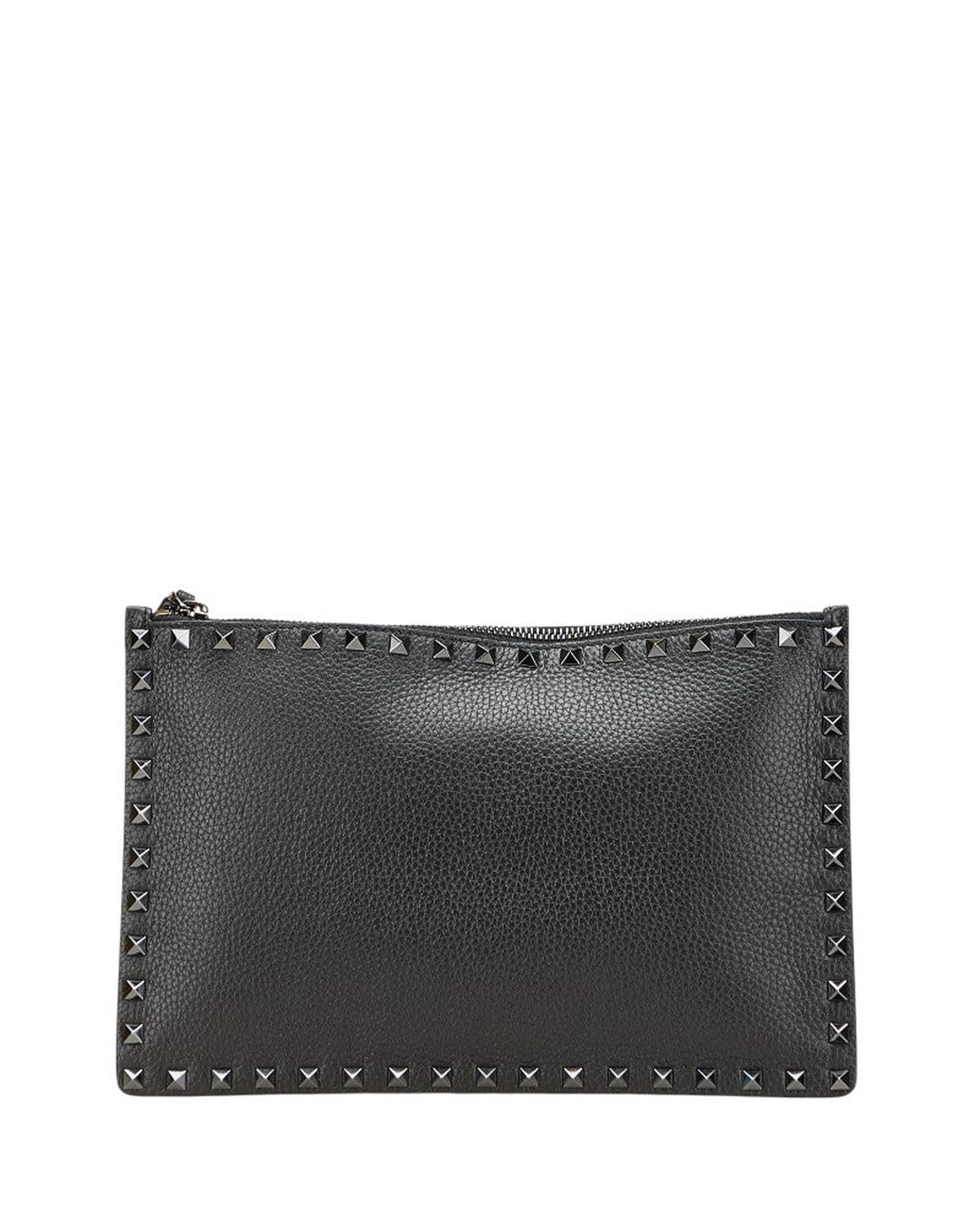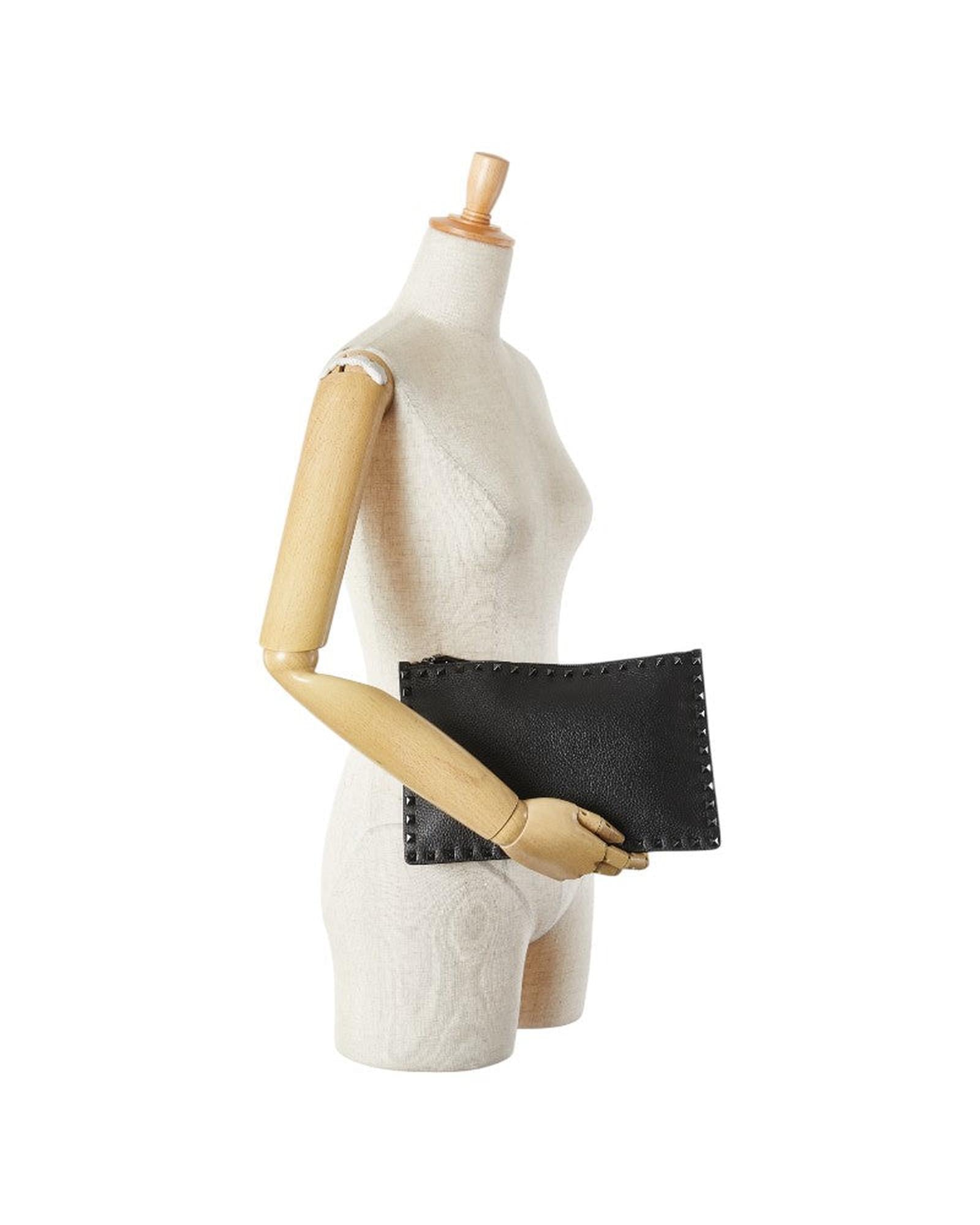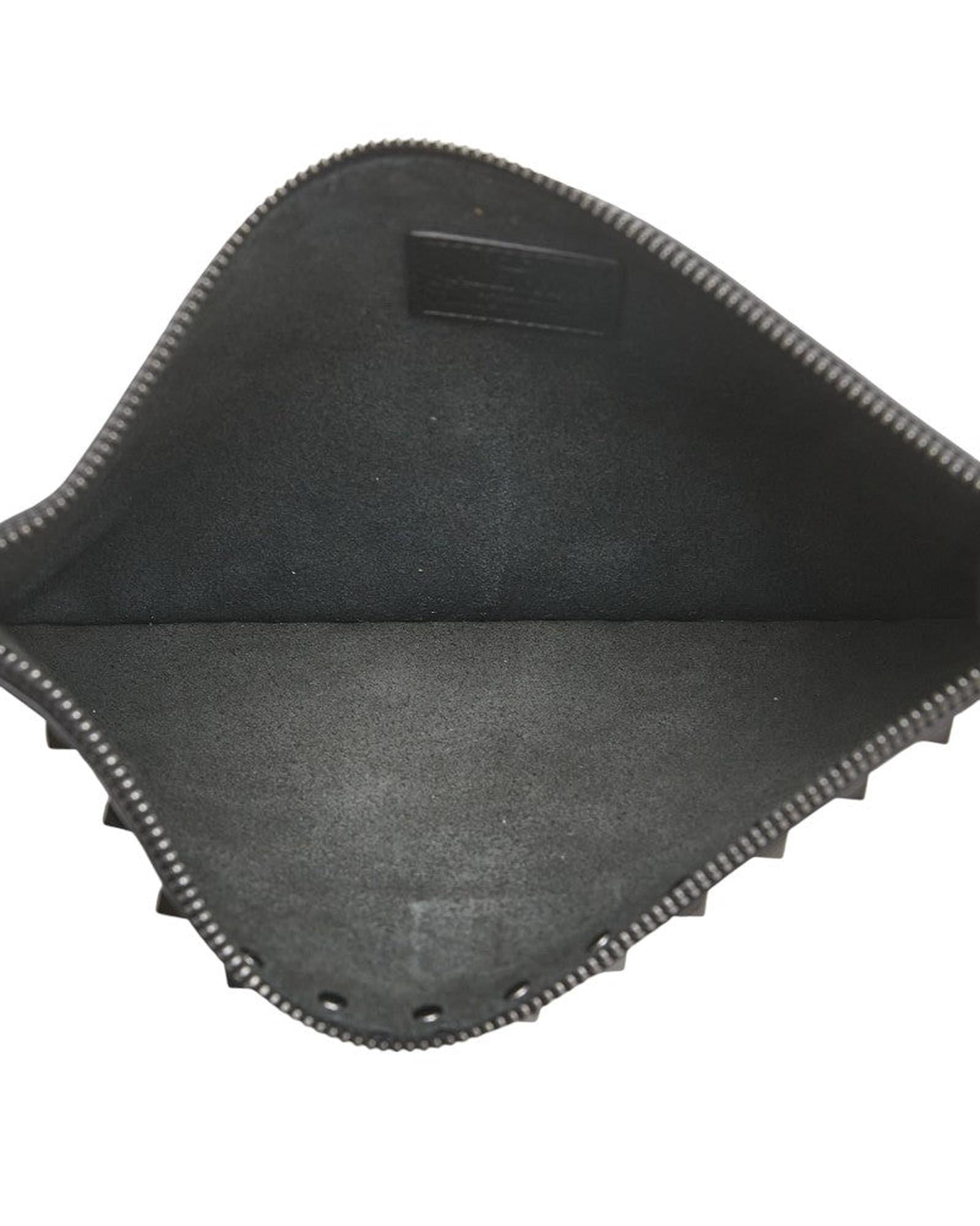 Pre-owned Leather Zip Pouch with Studded Trim Accessory
