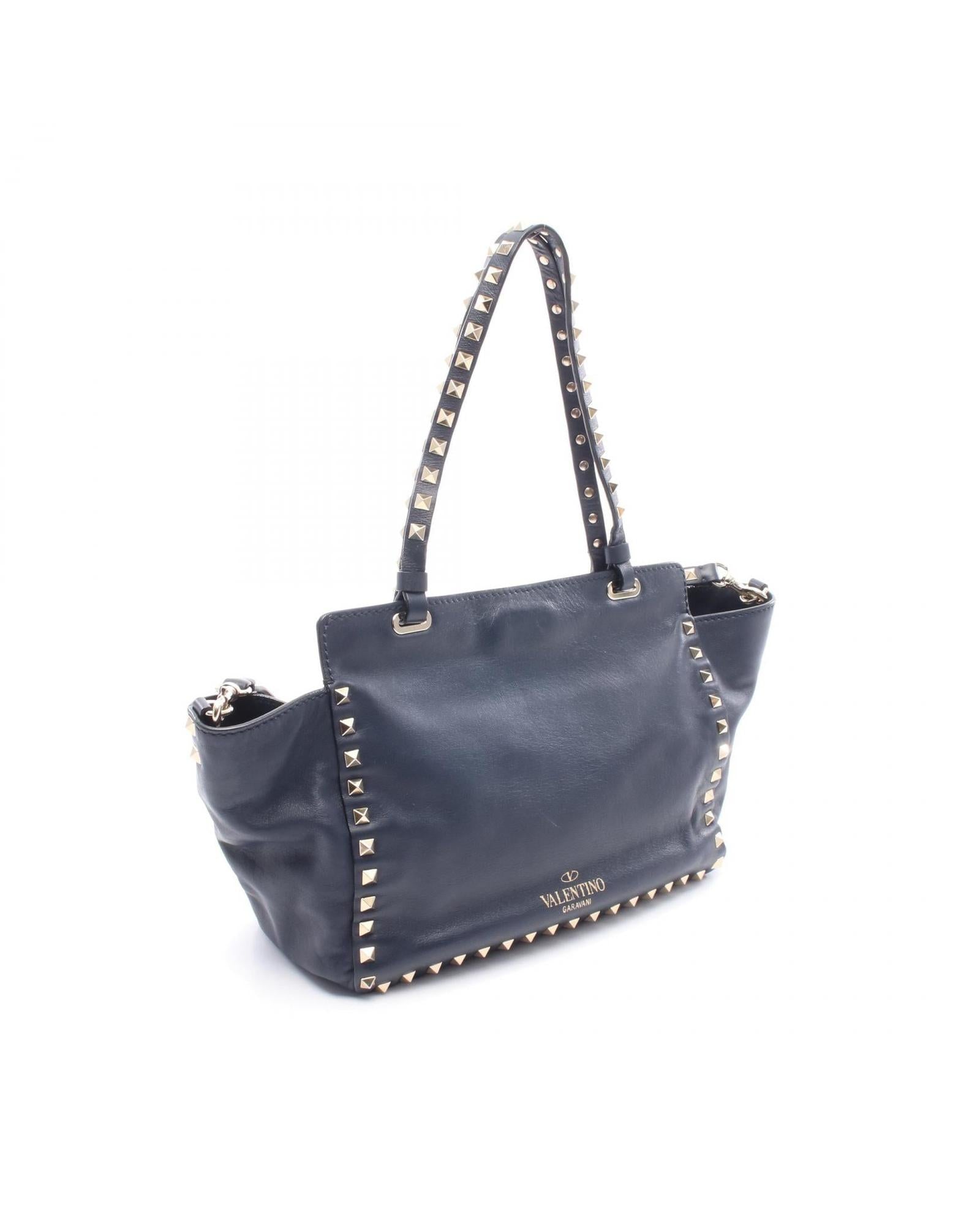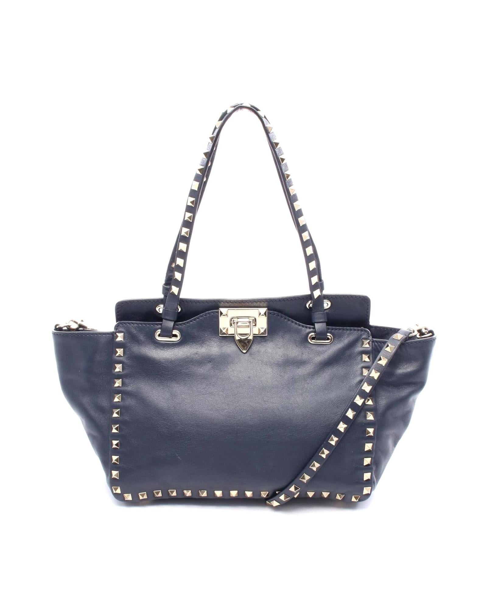 Pre-owned Leather Tote Bag with Studs and Turn Lock Closure