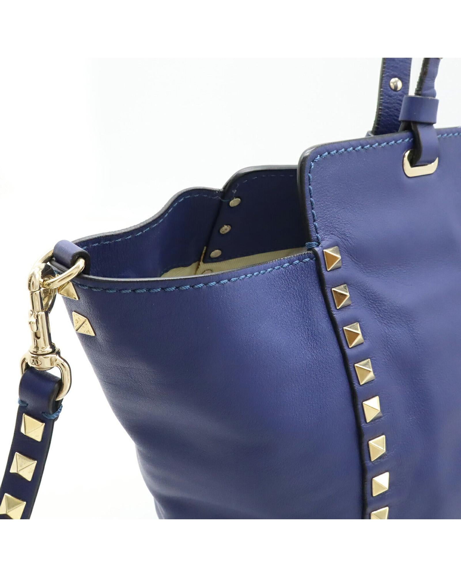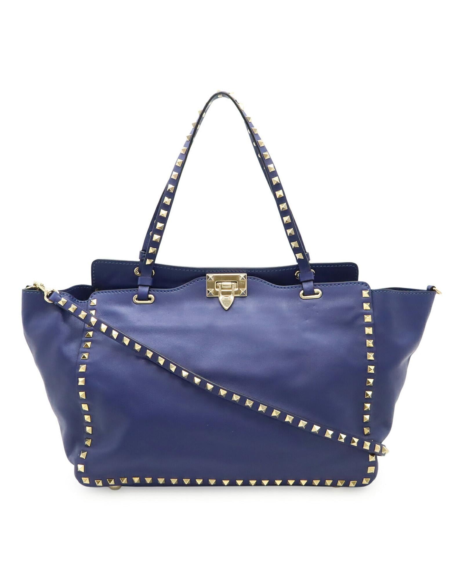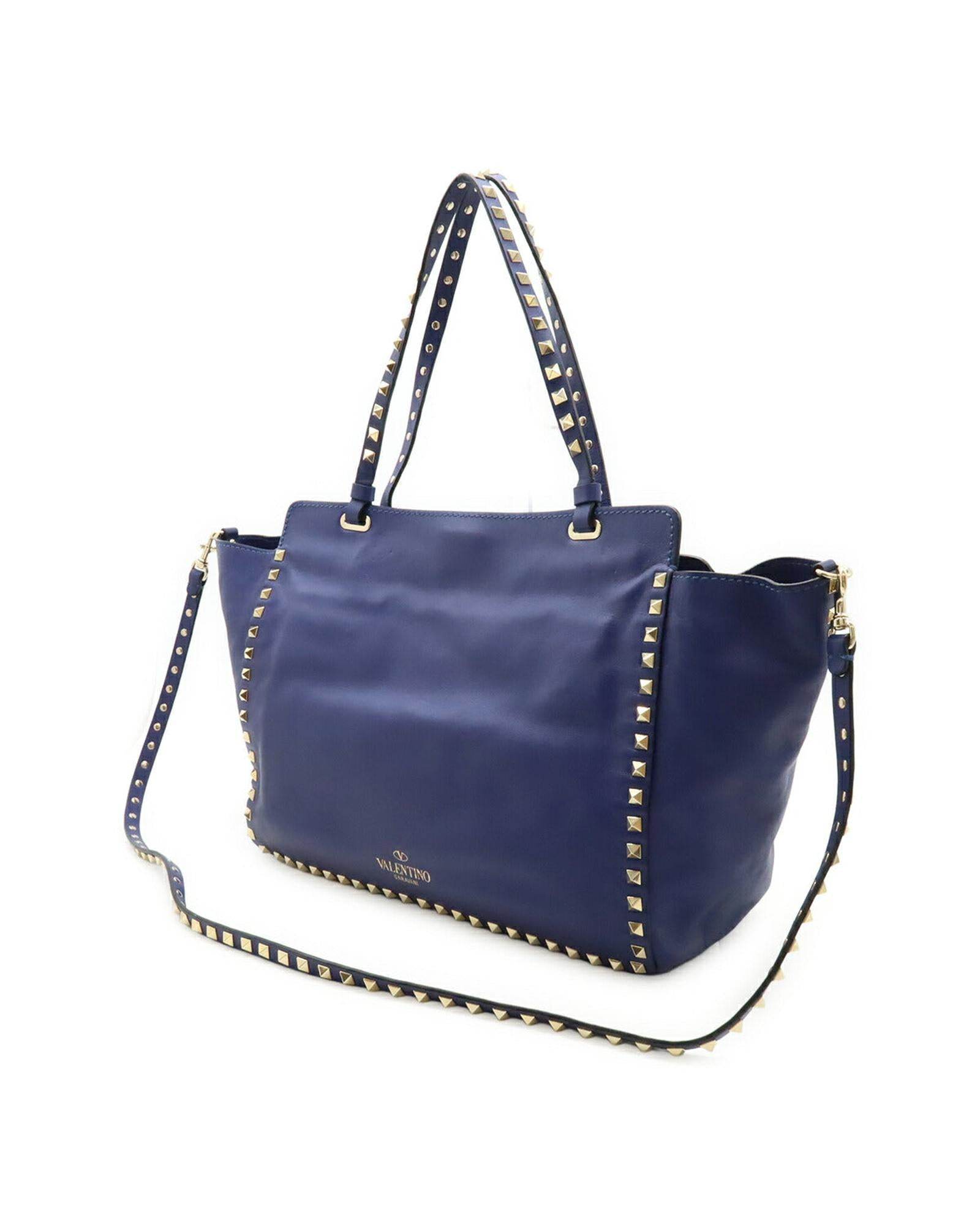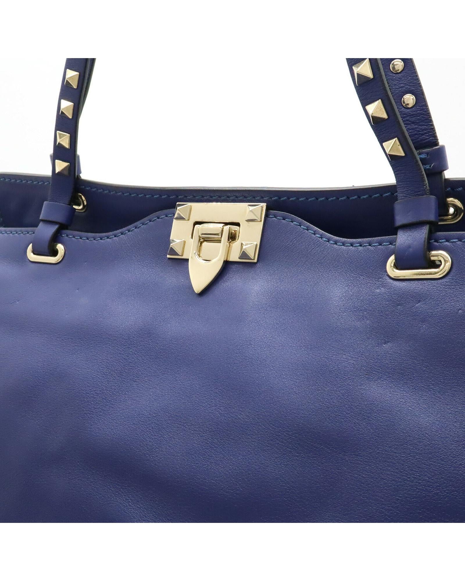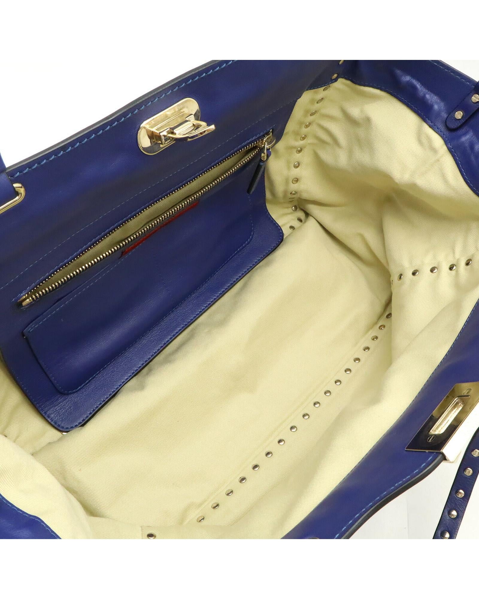 Pre-owned Leather Tote Bag with Stud Detail and Interior Pockets
