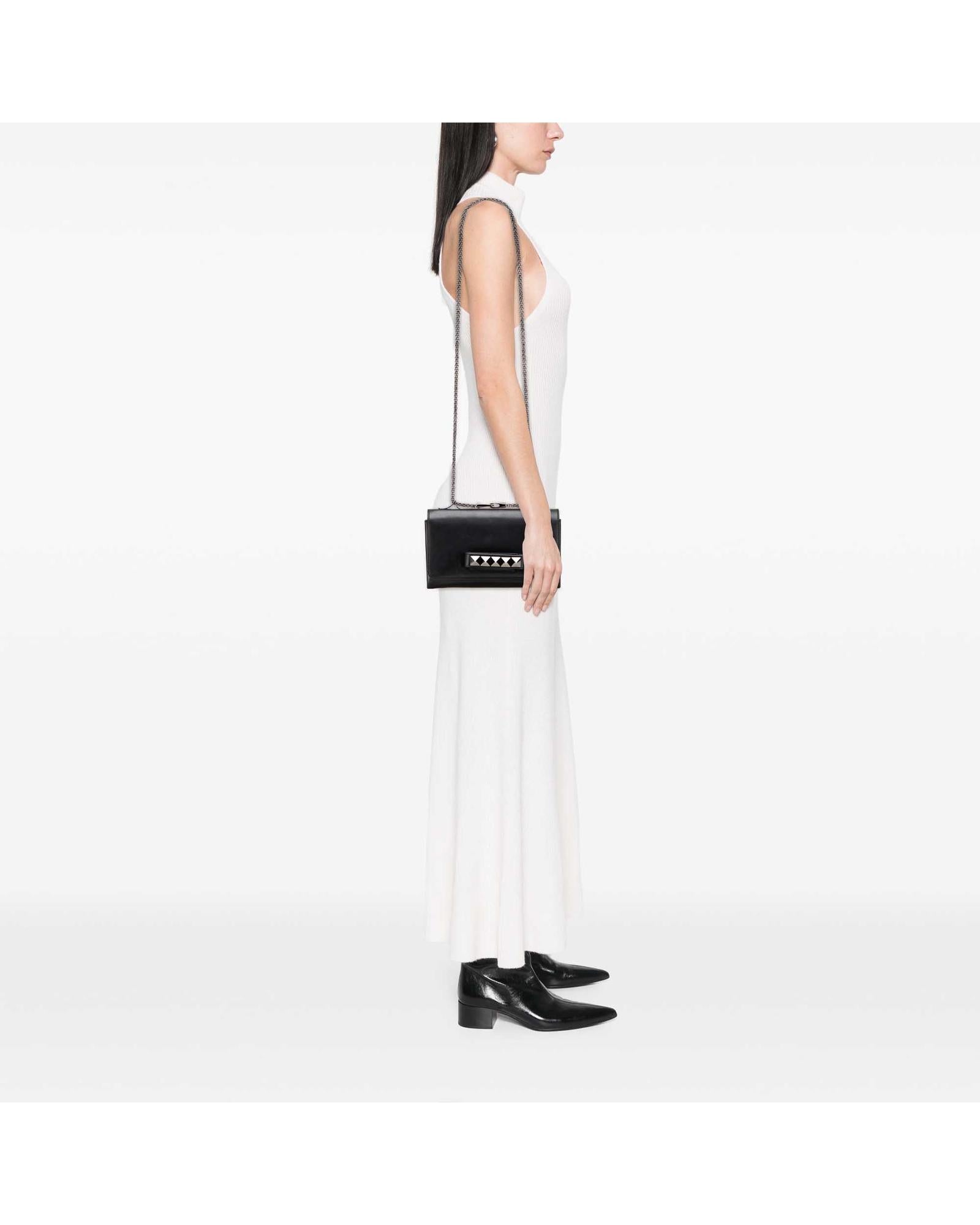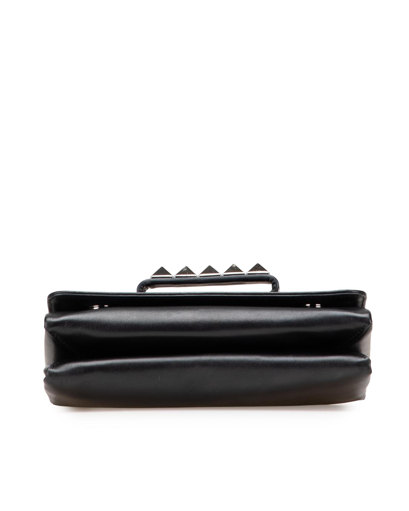 The Va Va Voom features a leather body a front flap with magnetic snap closures a studded leather handle a chain link shoulder strap and an interior slip pocket.Brand: Valentino