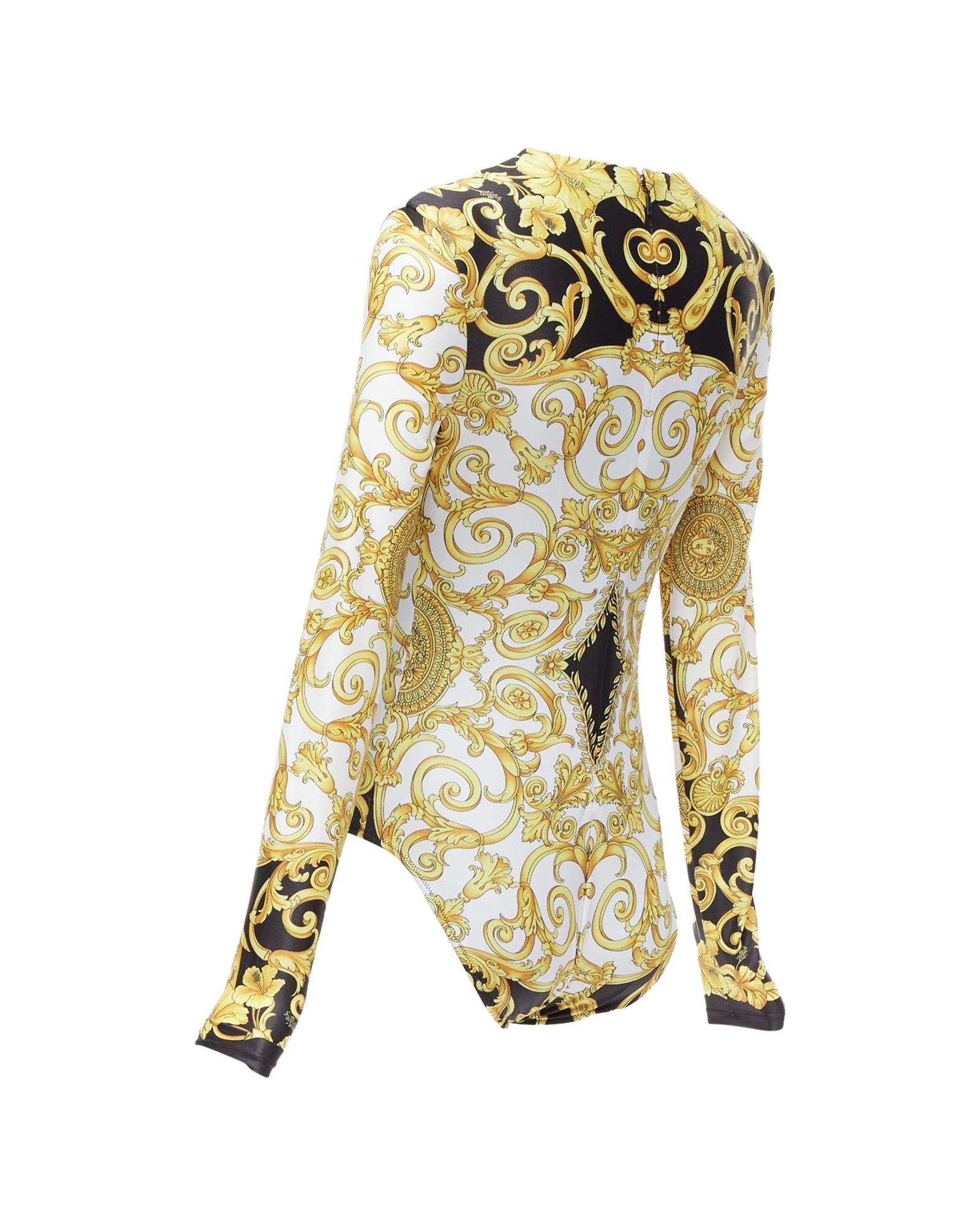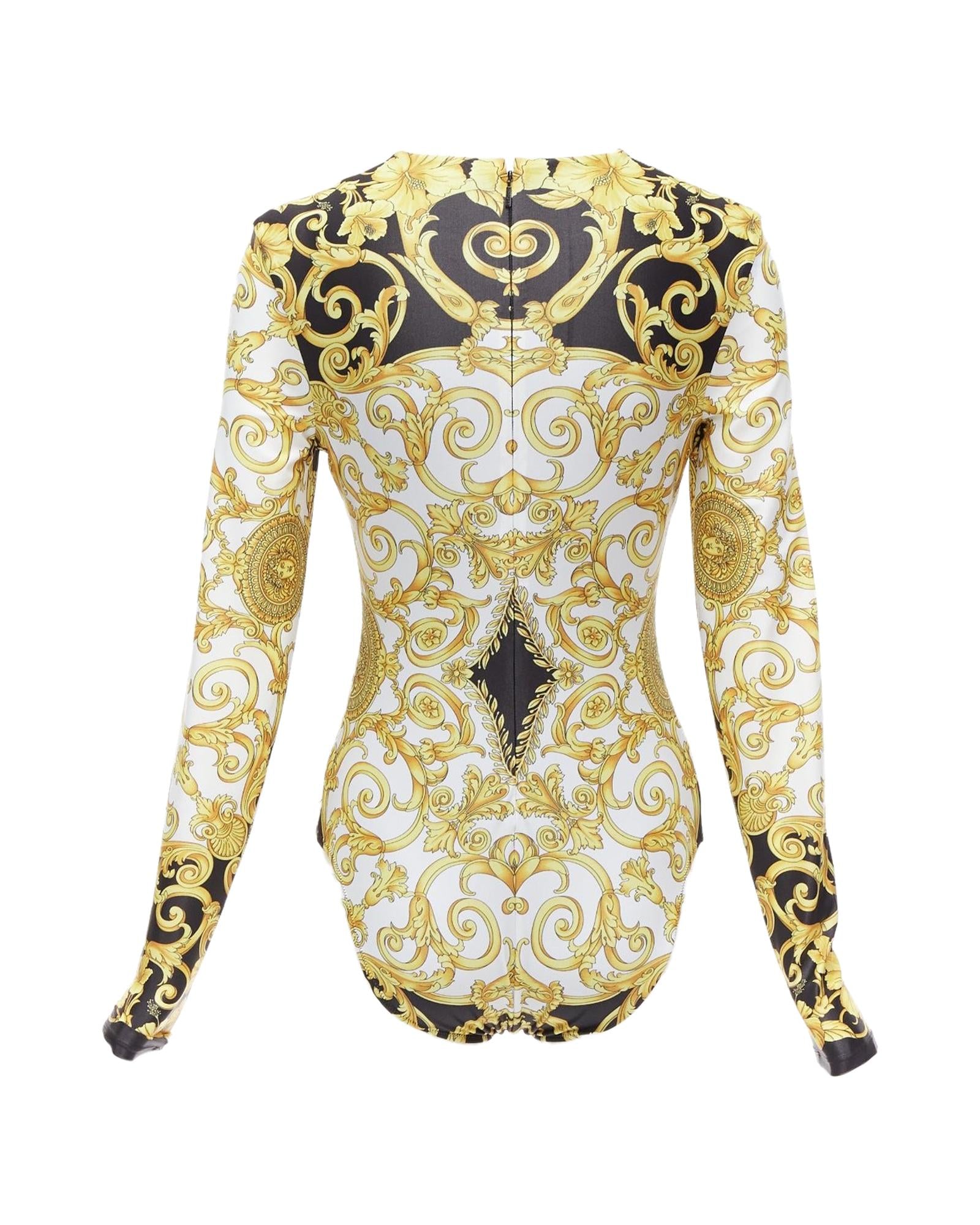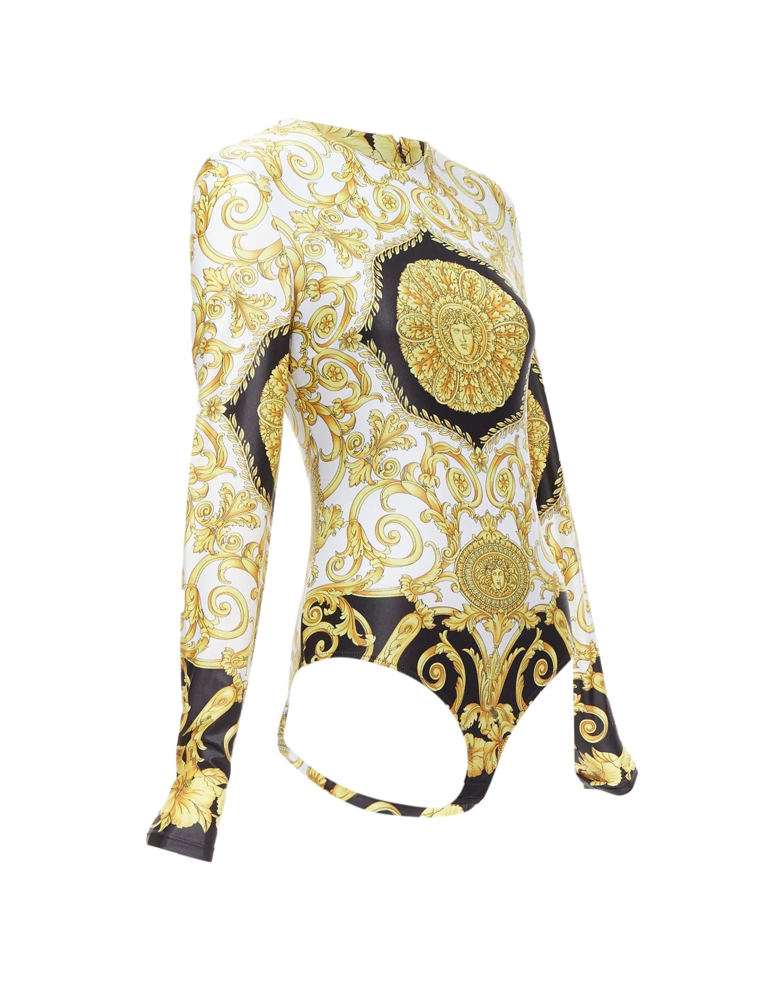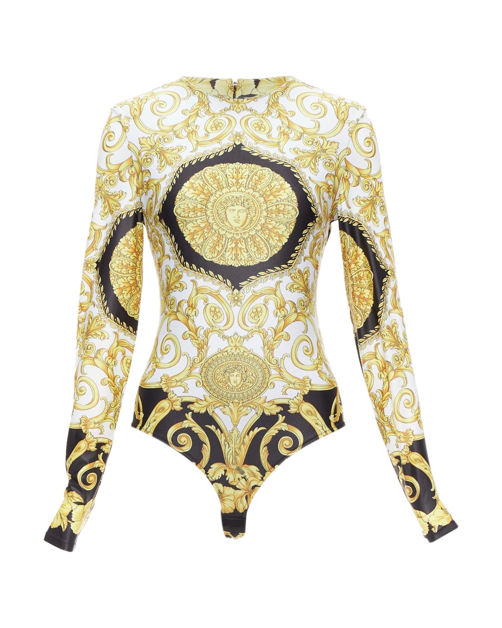 Pre-owned Long Sleeve Printed Bodysuit High Neckline Full Length Sleeves