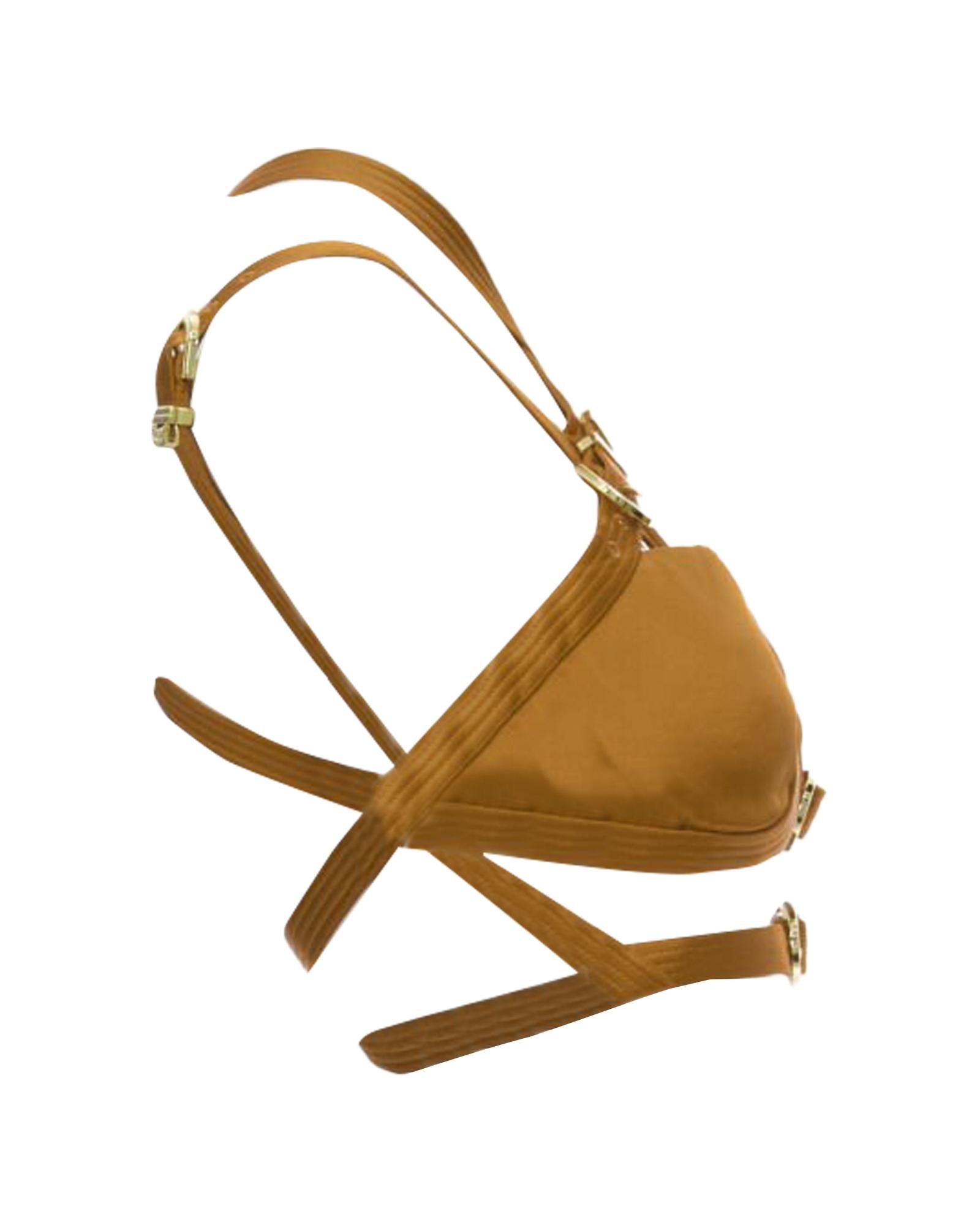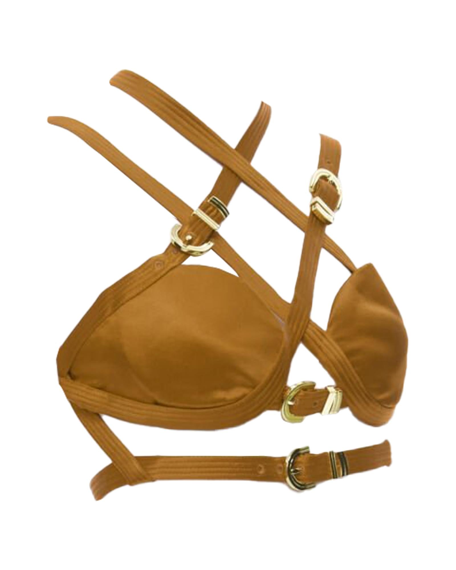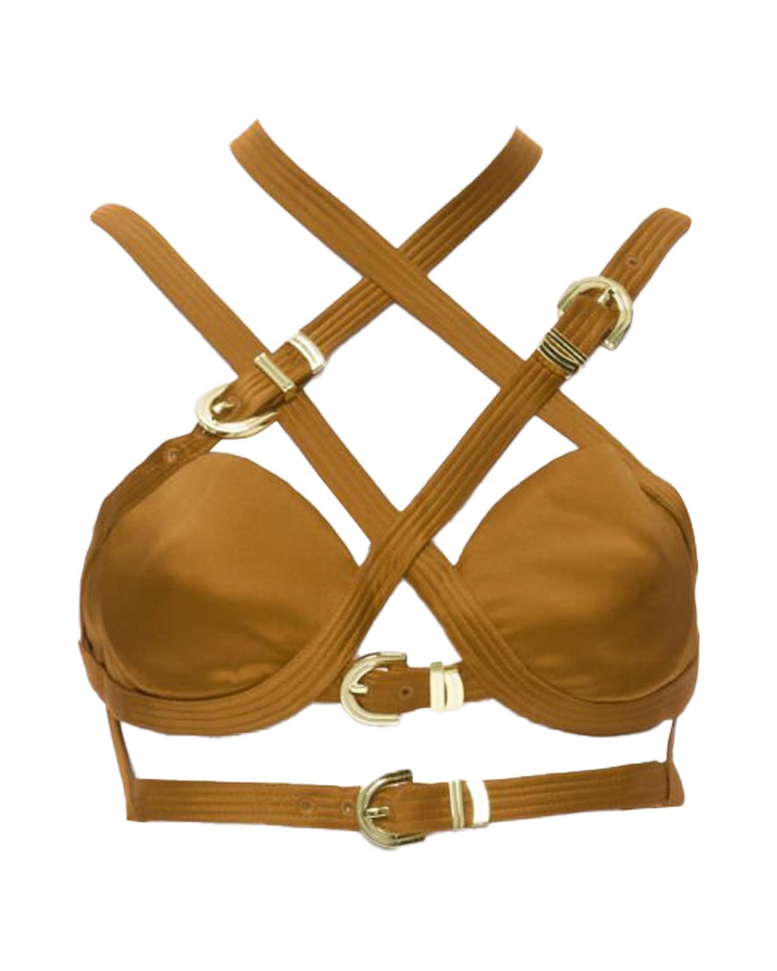 Adjustable Swim Top with Cross Straps and Buckle Details