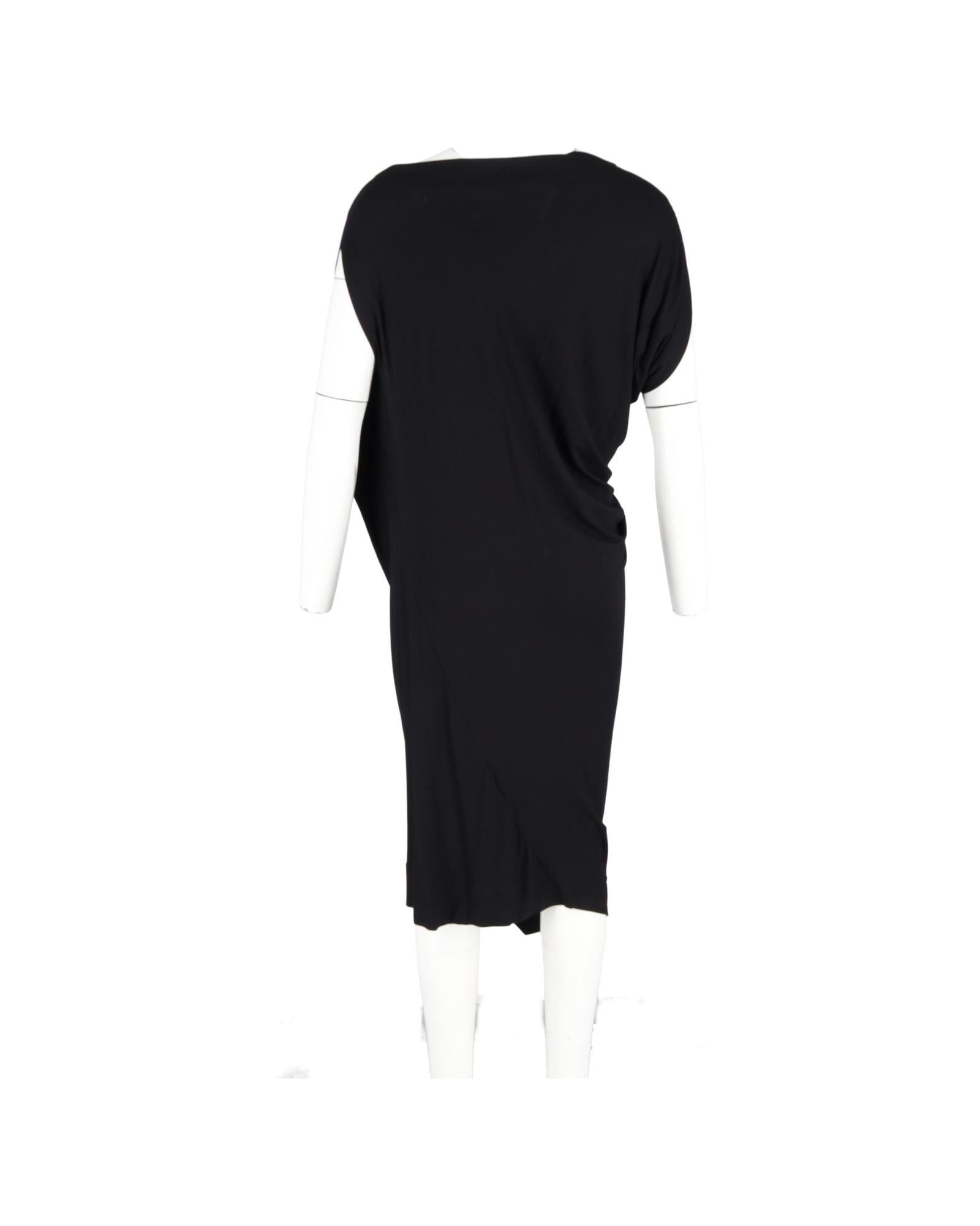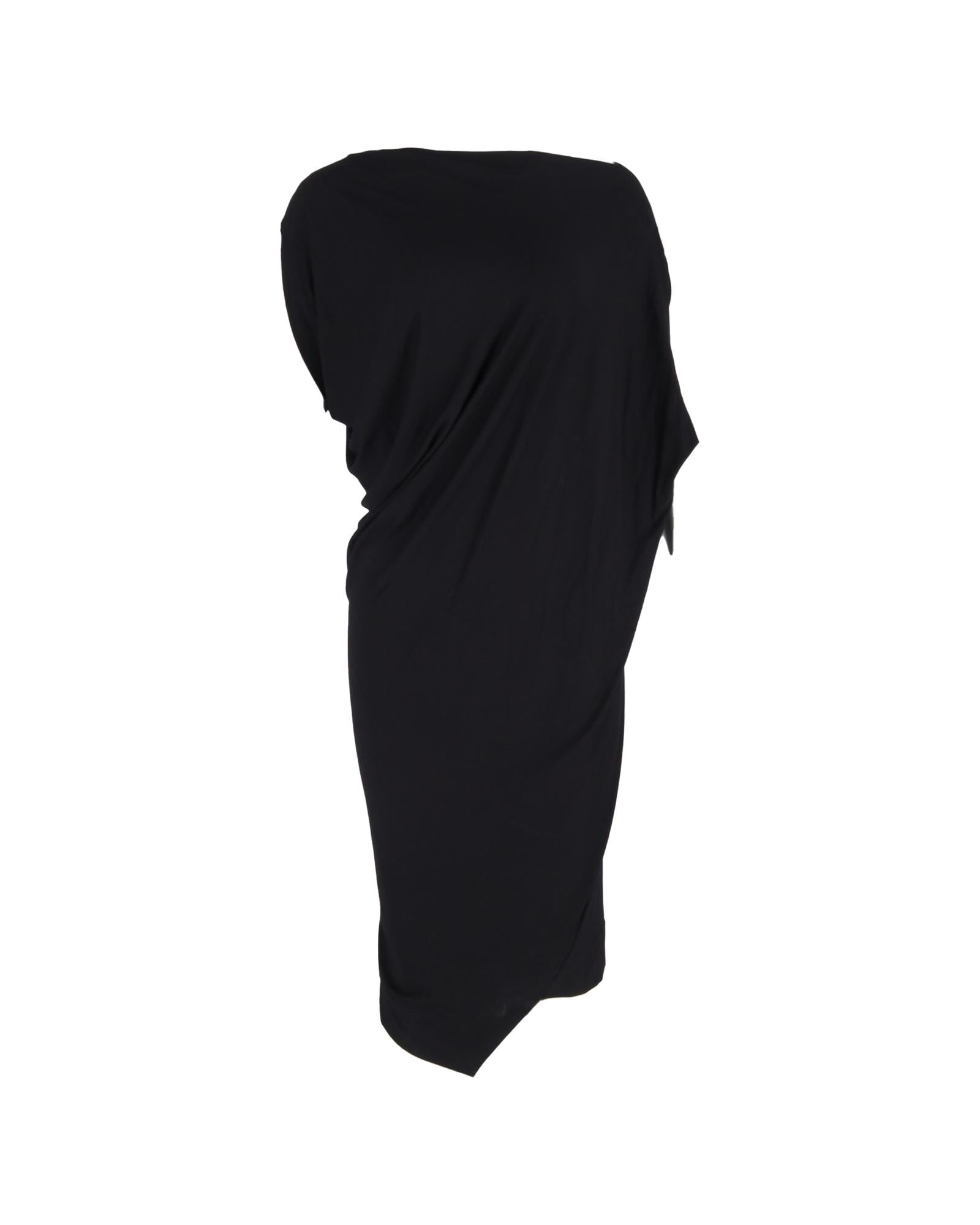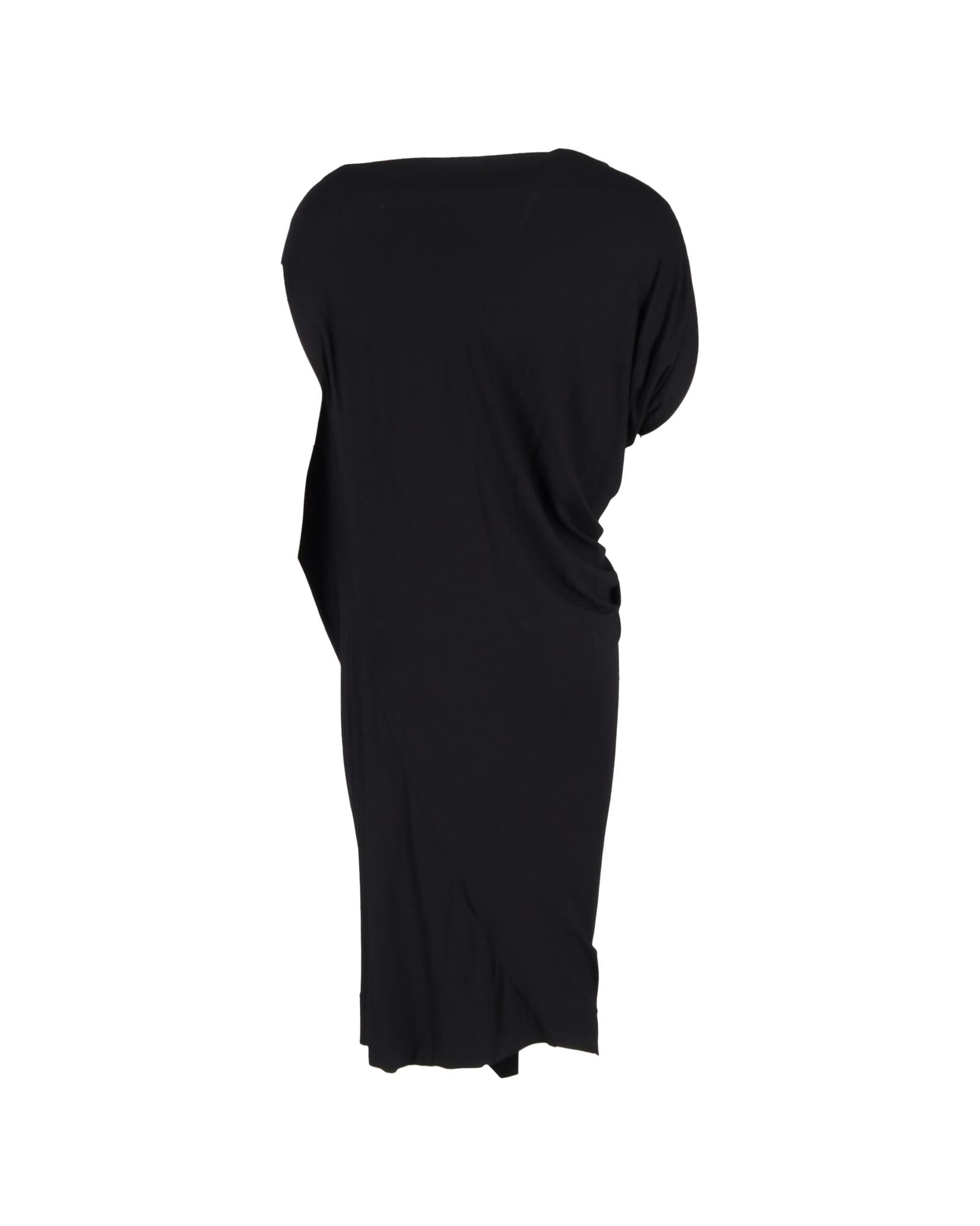 Elegant Draped Midi Dress with Unique Asymmetric Hemline