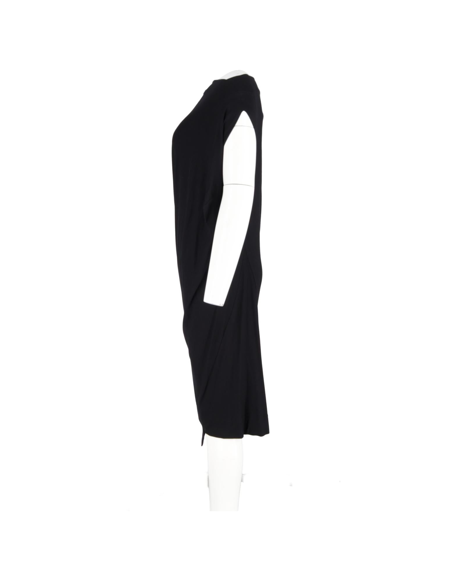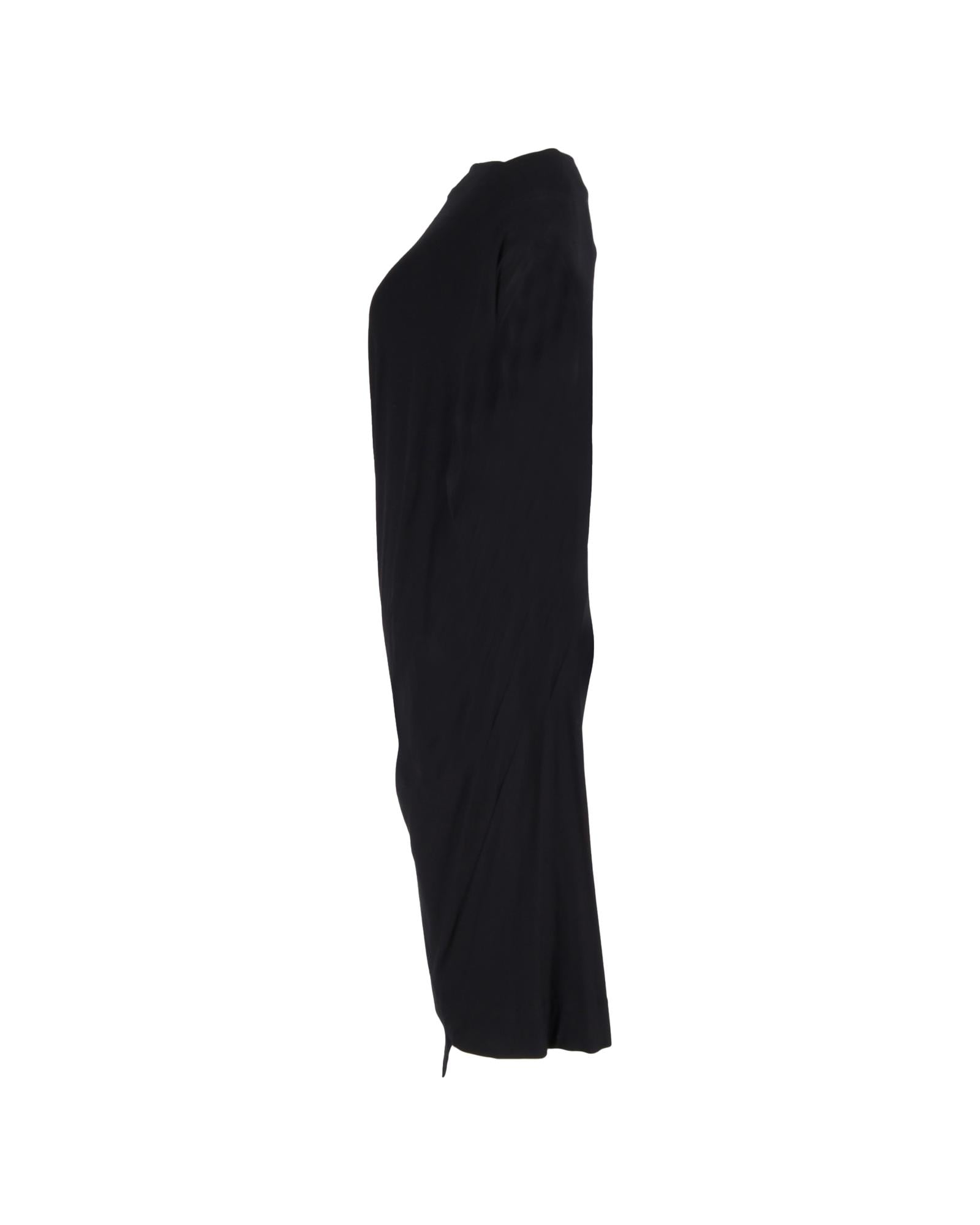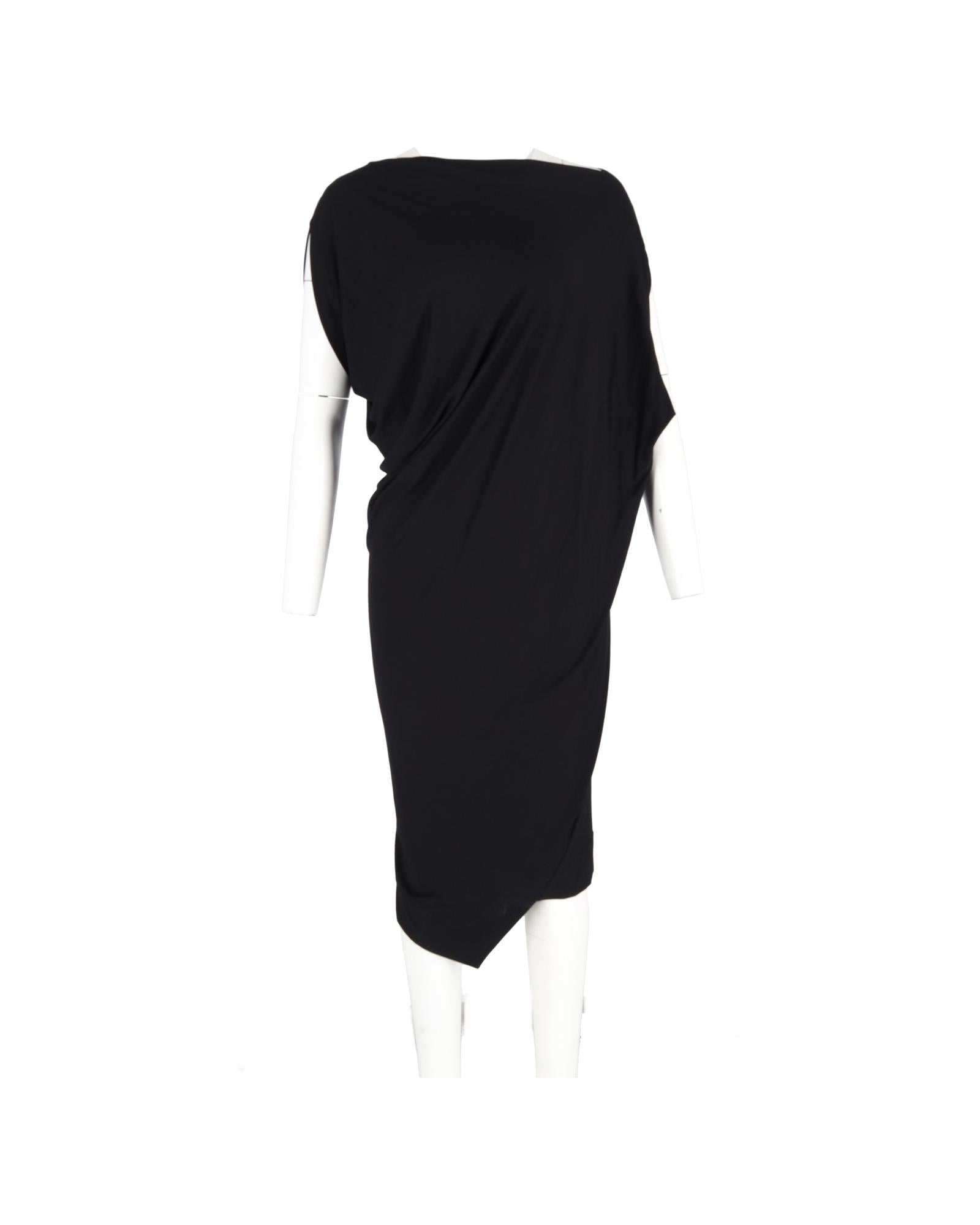 Elegant Draped Midi Dress with Unique Asymmetric Hemline