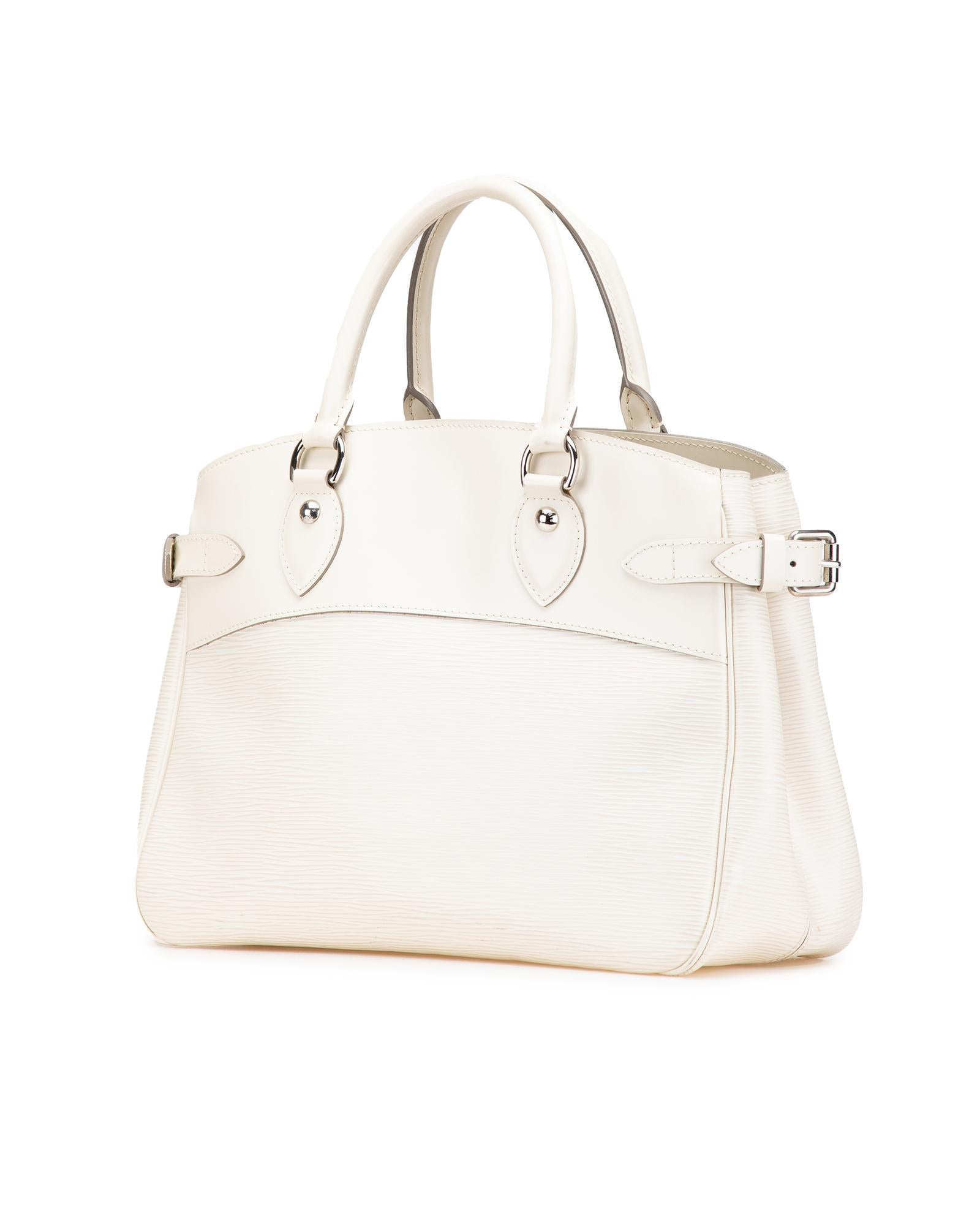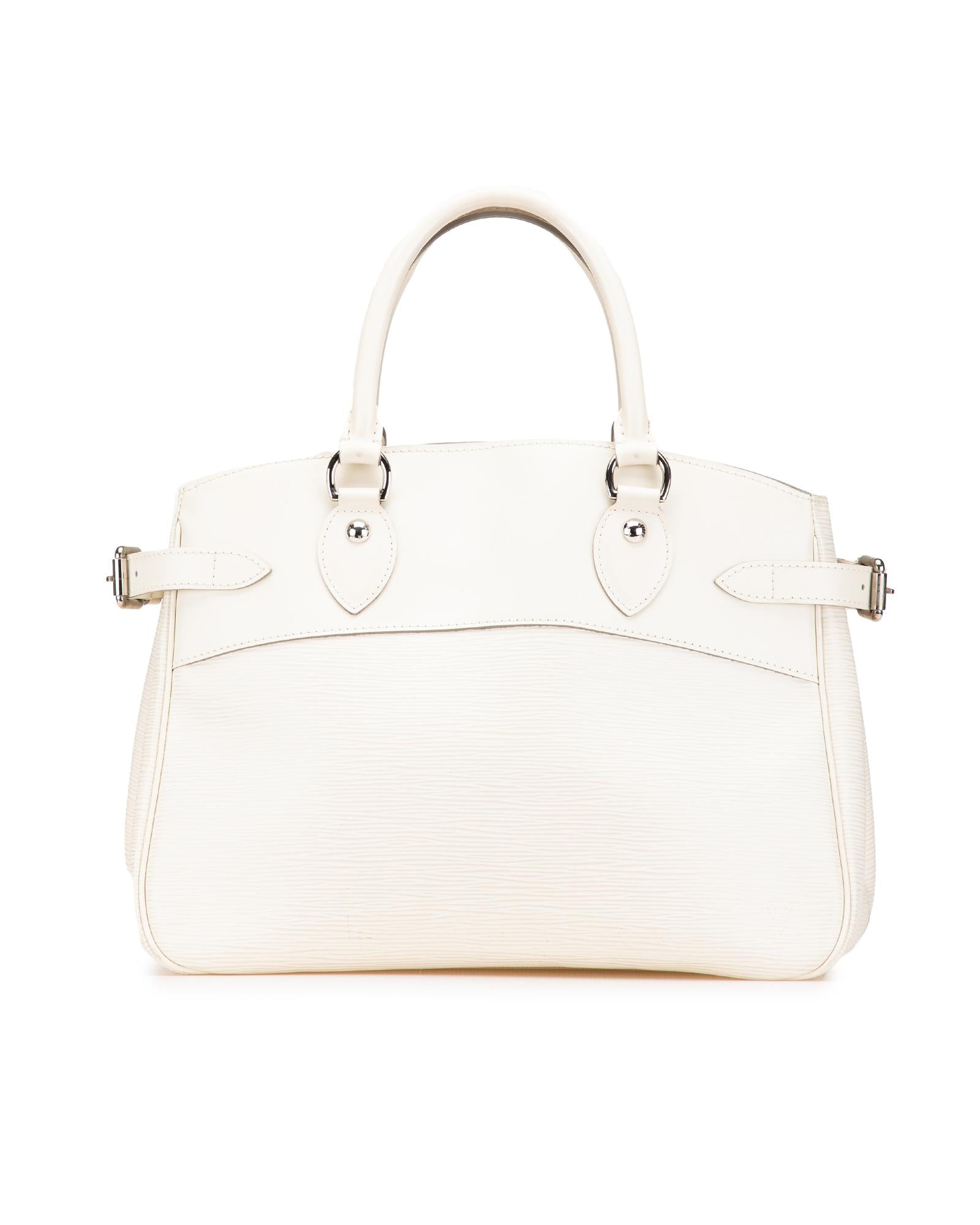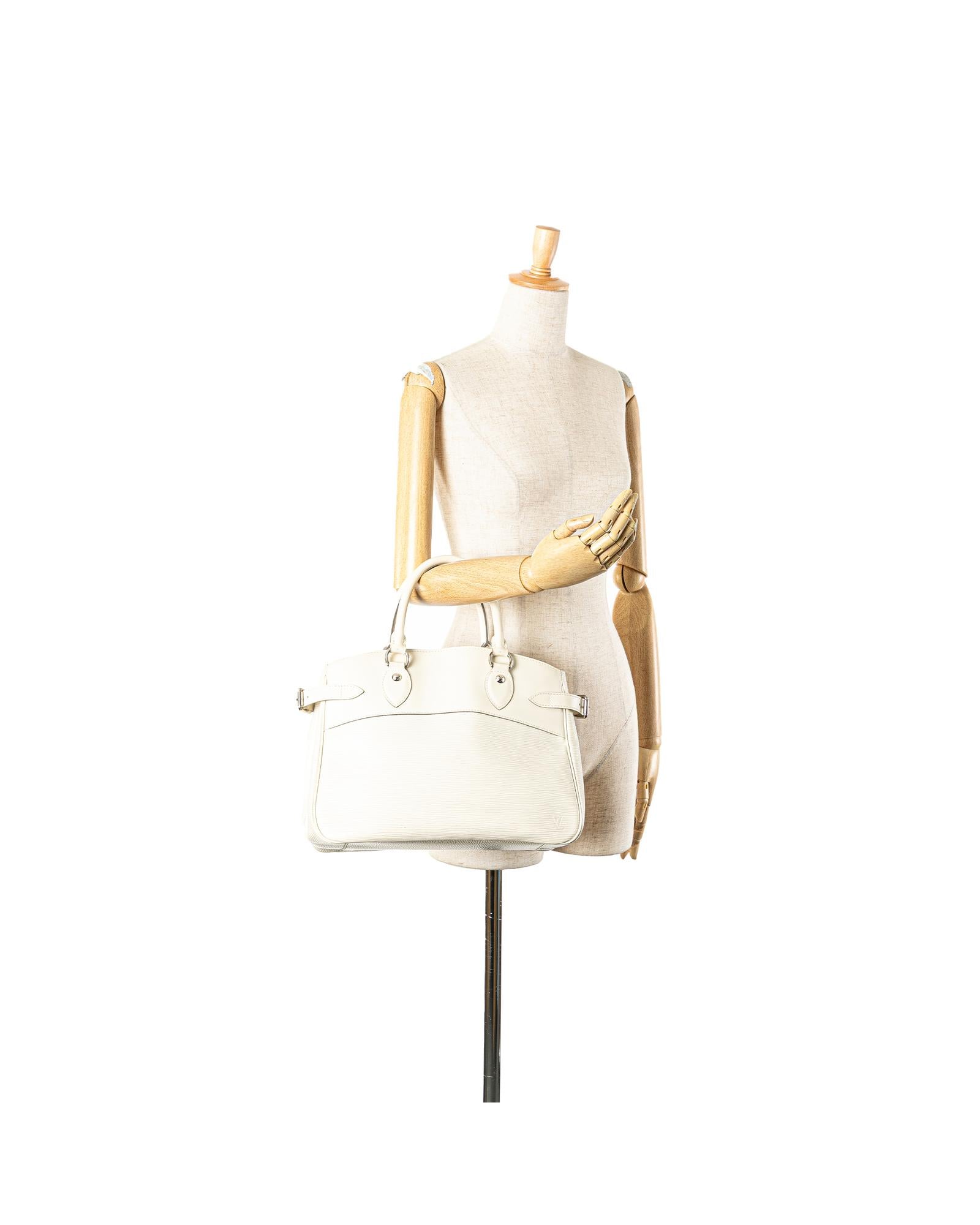 The Passy PM features an epi leather body rolled leather handles an open top with lobster hook closure an interior zip compartment and interior slip pockets.Brand: Louis Vuitton Vintage
