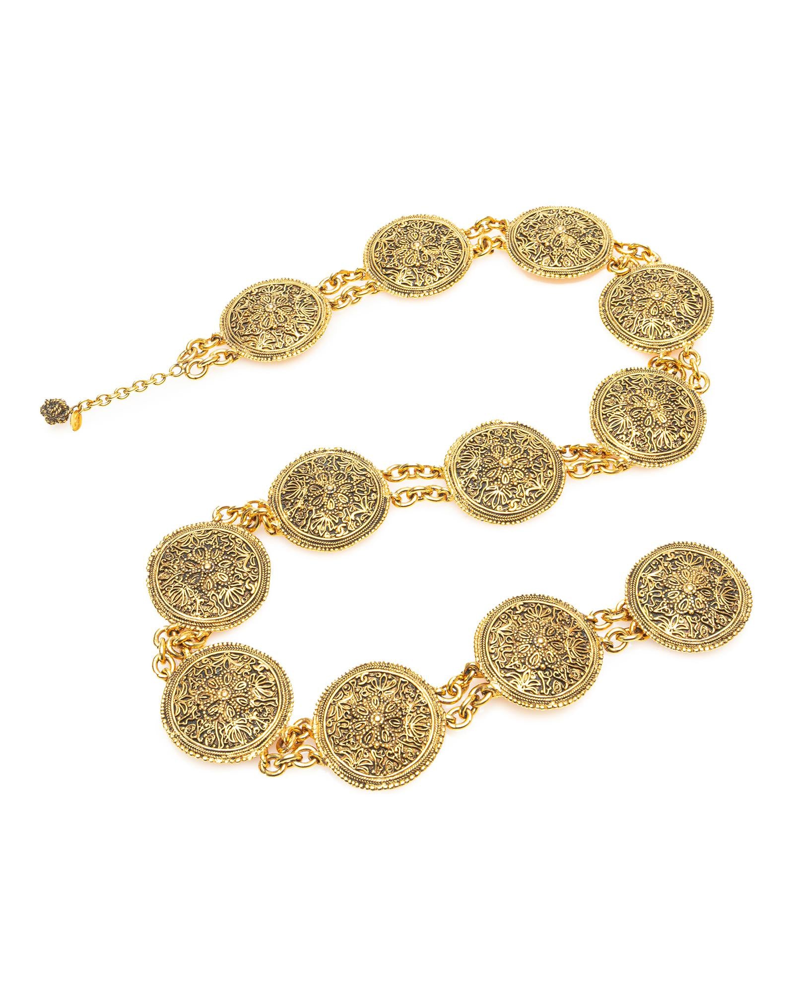 This belt features gold plated body with chain and hook closure.Brand: Chanel