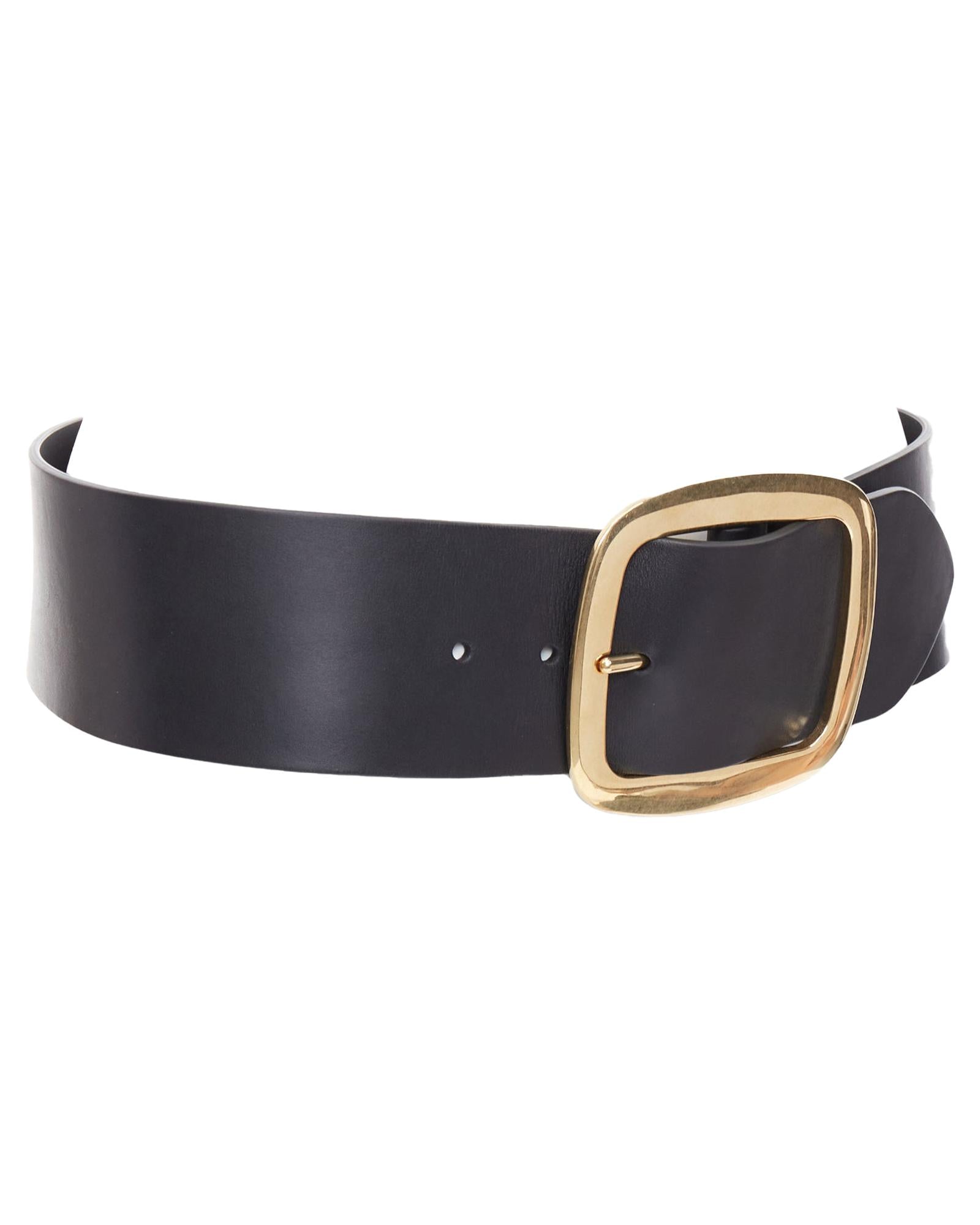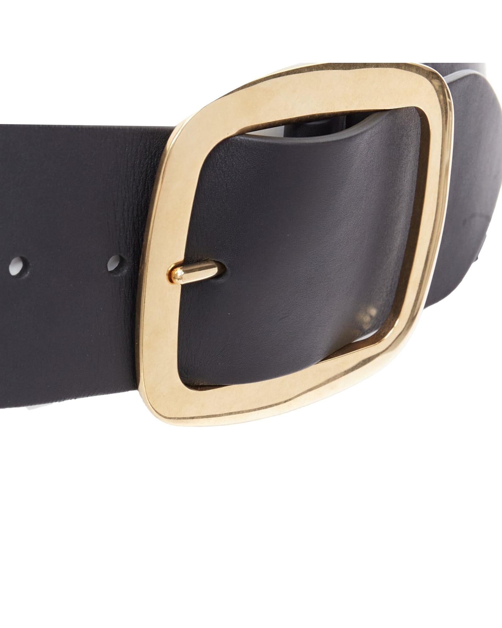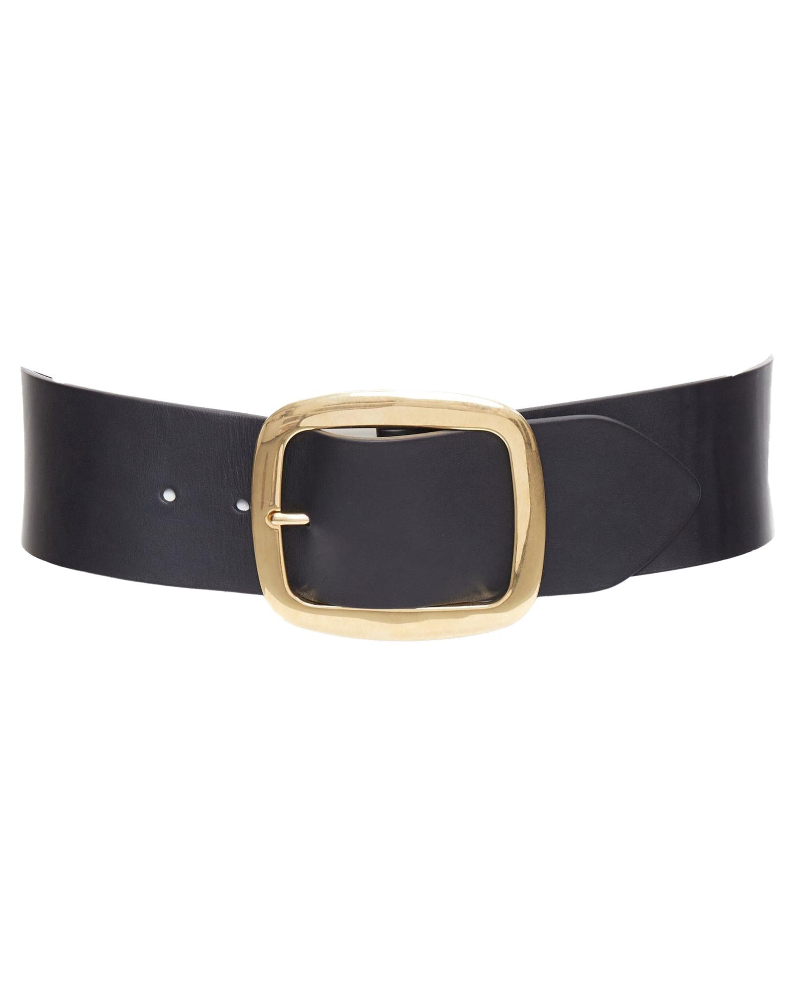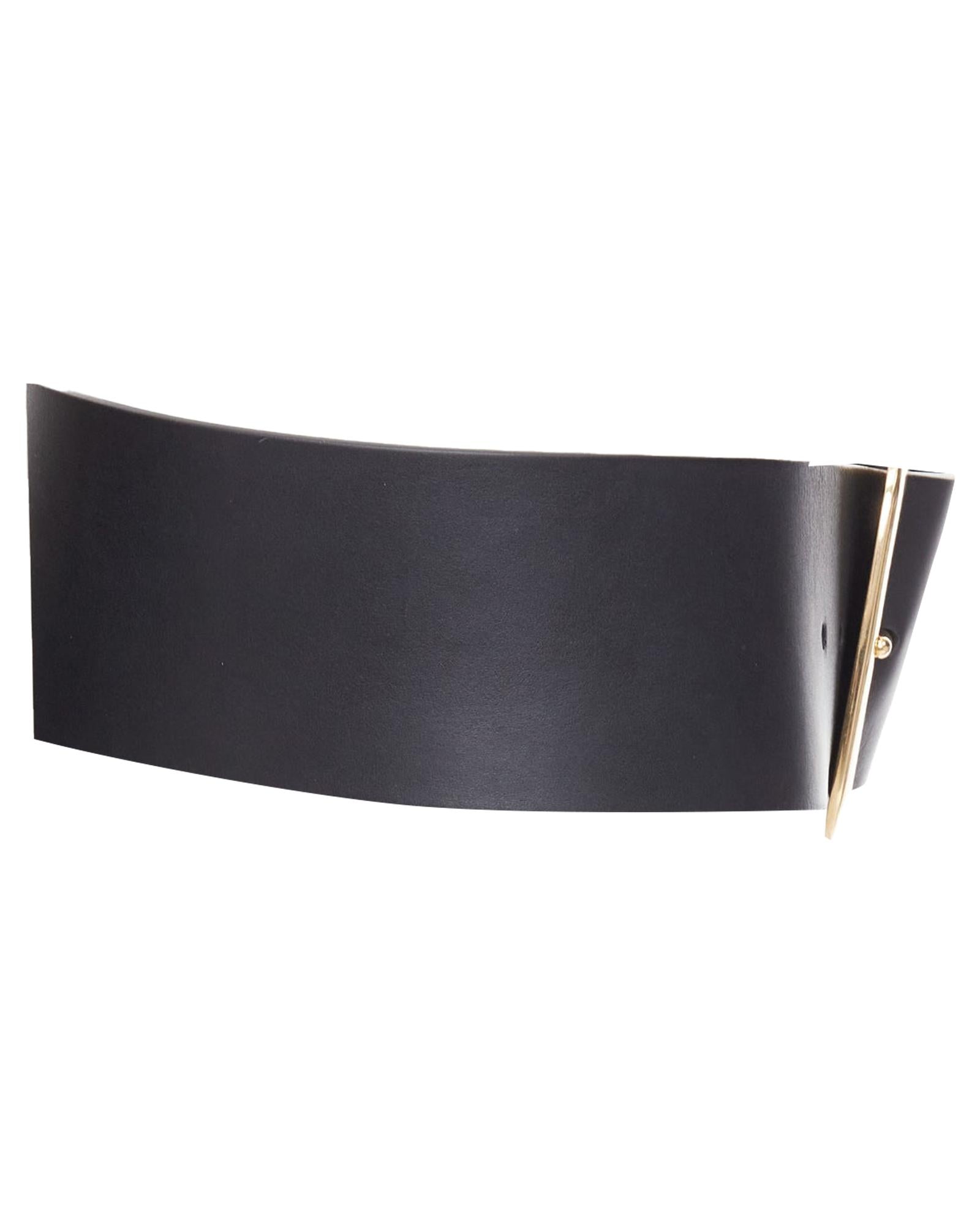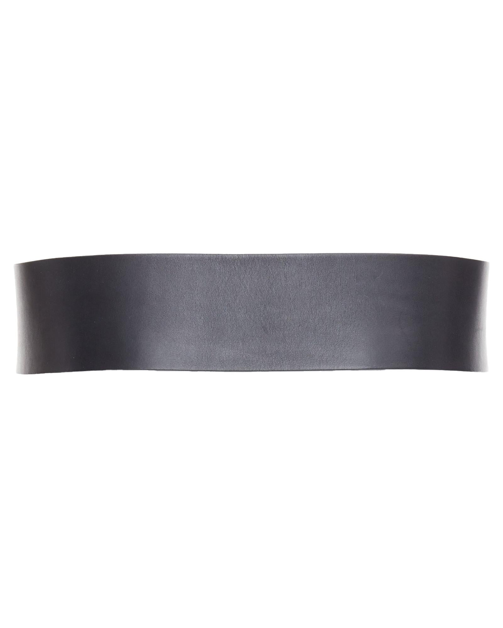 Pre-owned Elegant Wide Leather Belt with Statement Buckle Fashion Accessory