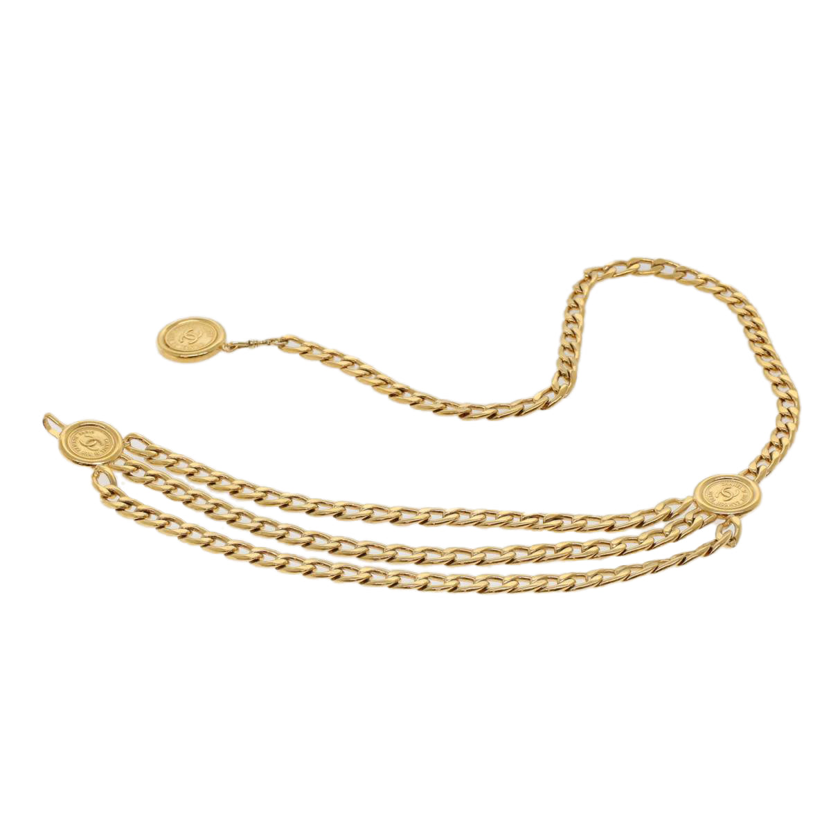 Chanel presents a superb golden metal belt with a sleek elegant design. The surface of the belt may show slight scratches but the interior remains impeccable. We recommend that you look at all the photos before making your purchase to ensure that you are satisfied with the condition of the item.