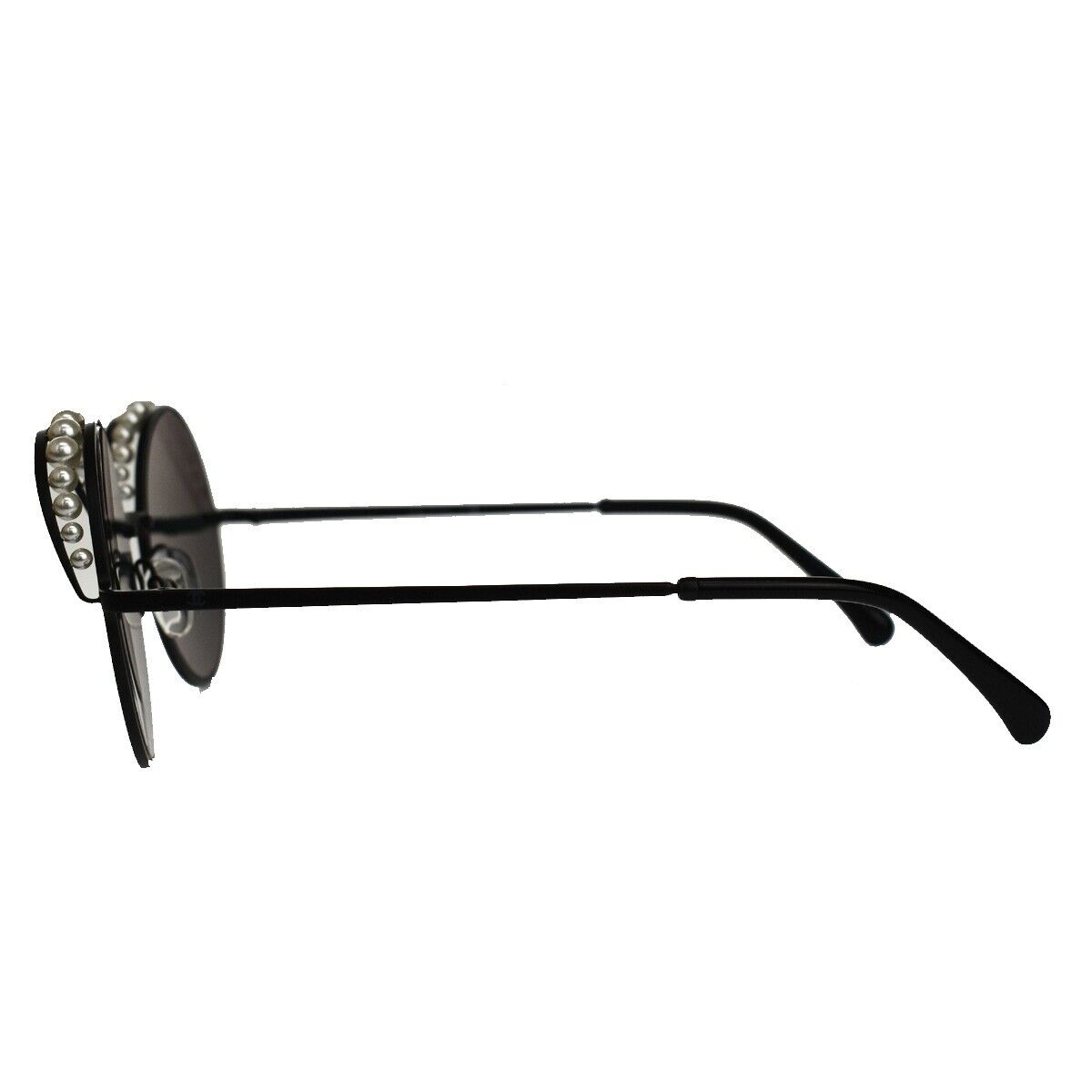 The black metal and plastic frame adorned with imitation pearls create a unique and elegant look. Despite the minor imperfection these sunglasses remain a fashionable choice for any fashion enthusiast. Crafted with meticulous attention to detail they offer a blend of durability and chic aesthetics. We recommend that you look at all the pictures before making your purchase to ensure that you are satisfied with the condition of the item.