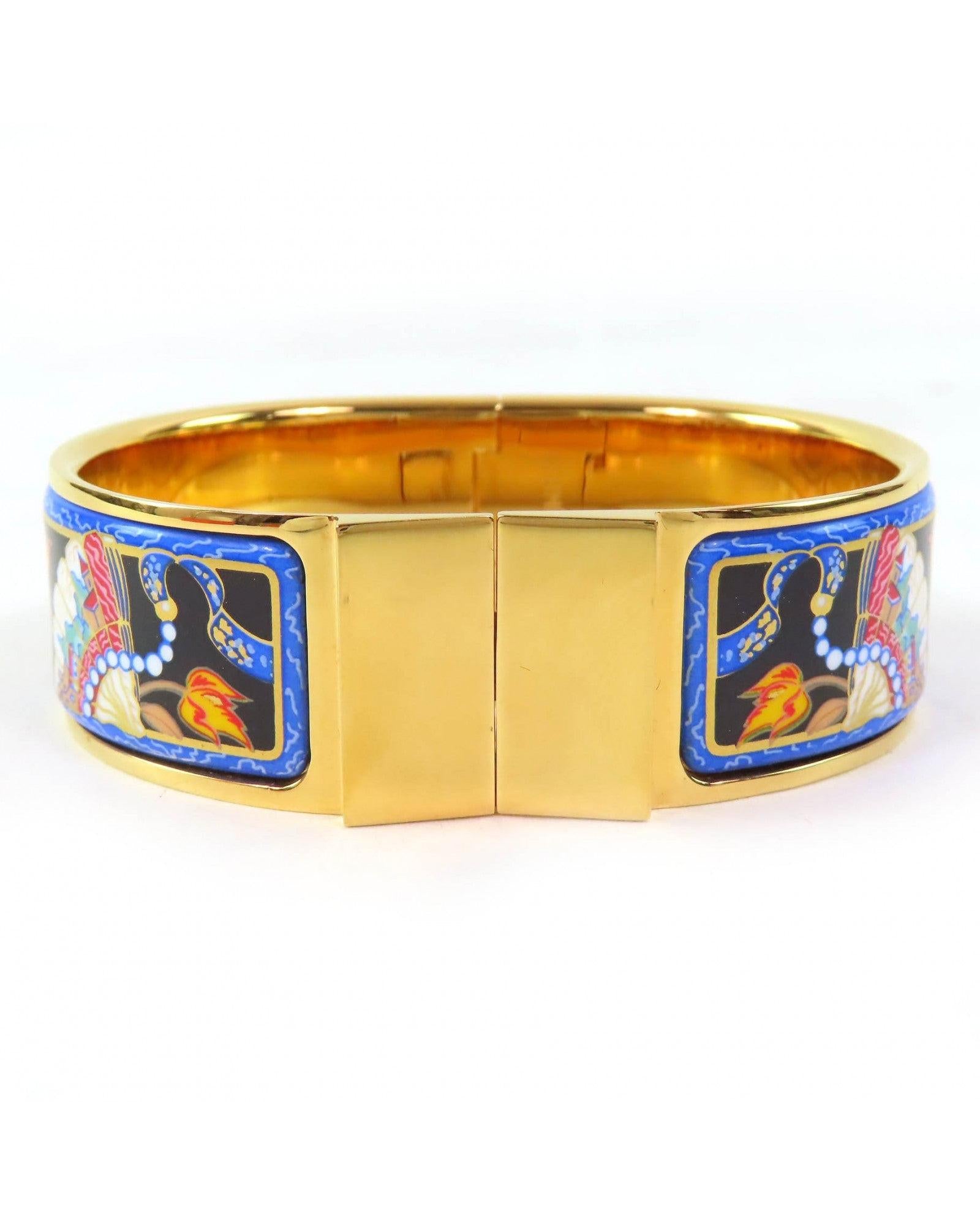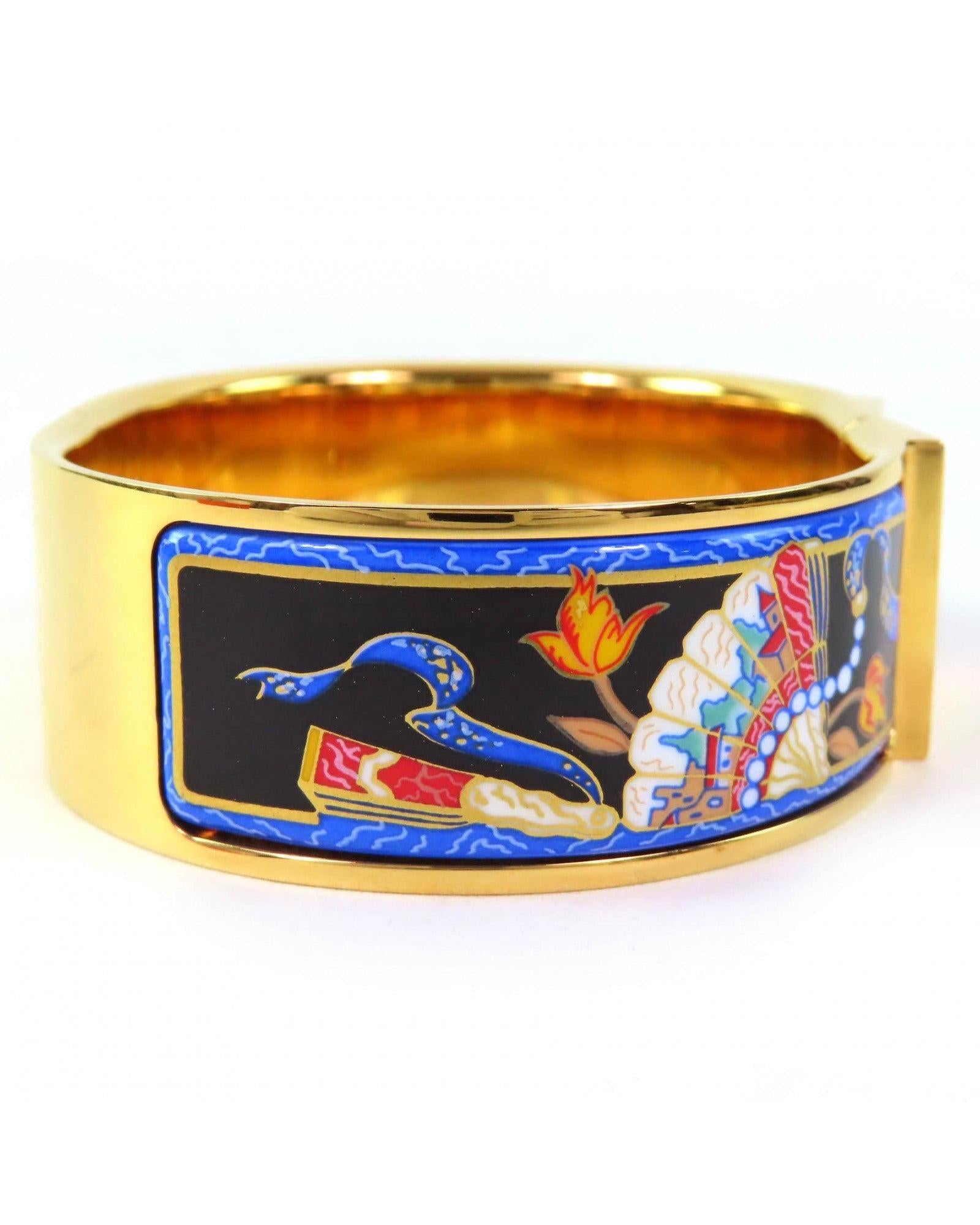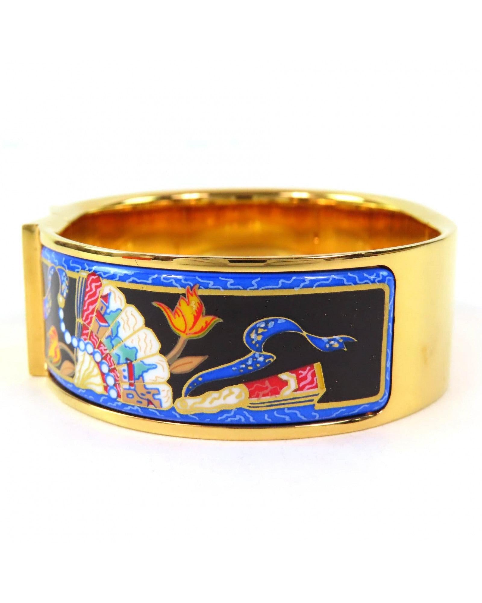 Pre-owned Enamel Bangle Bracelet Featuring Artistic Floral and Figure Design a Unique Accessory