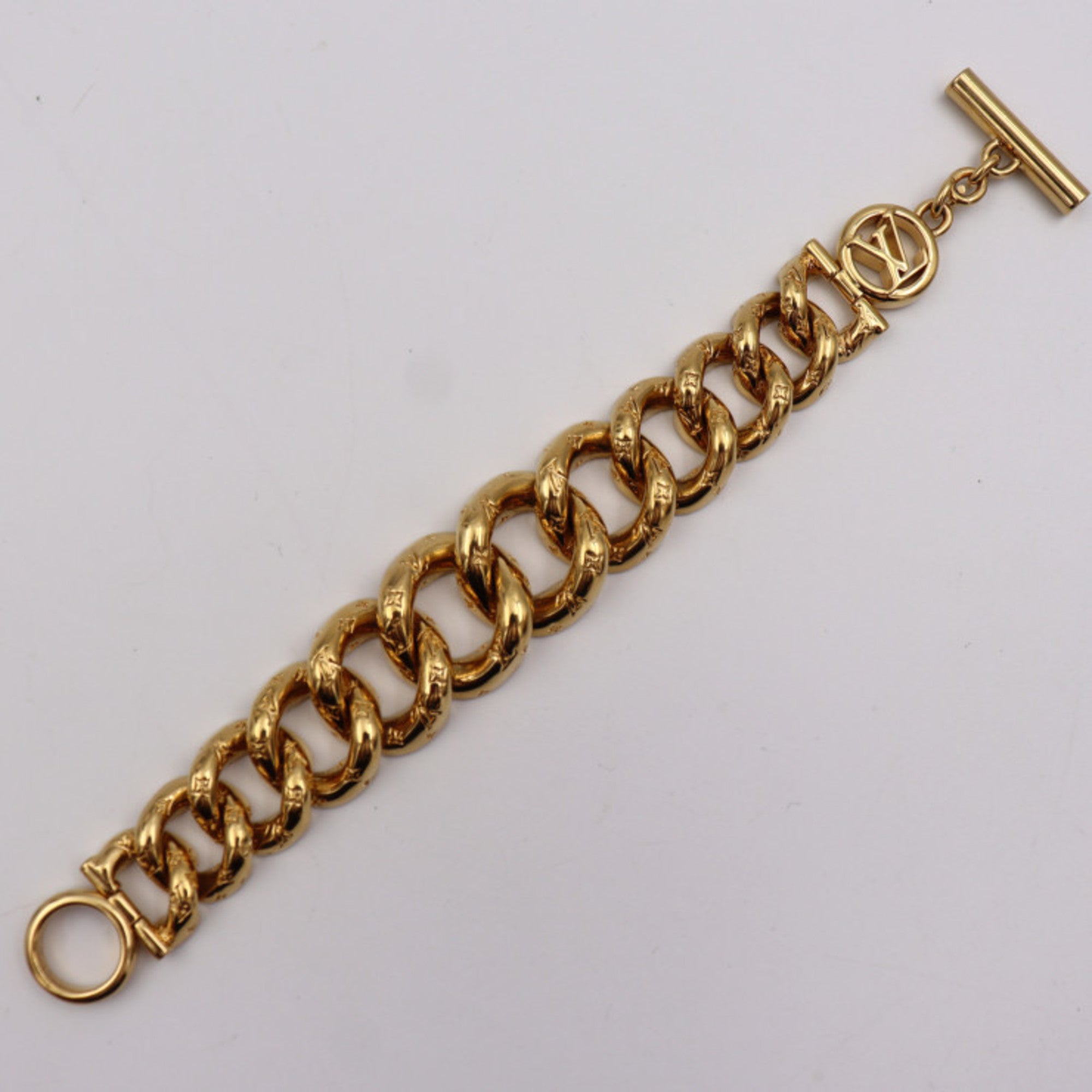 Brand: Louis Vuitton Model: Color: Gold Material: Metal Inclusions: Box Dust bag Dimensions: Total Length 19cm / Serial number: NA Condition: AB - good condition. Introducing the Louis Vuitton Monogram Charm Bracelet a stylish accessory that adds a touch of luxury to any outfit. Crafted from high-quality metal in a captivating gold color this bracelet exudes elegance and sophistication. Despite a few traces of usage and some minor scratches its overall condition remains excellent making it an ideal choice for both men and women who appreciate timeless fashion. Whether worn alone or paired with other accessories this bracelet is sure to elevate your look. We recommend that you look at all the pictures before making your purchase to ensure that you are satisfied with the condition of the item.
