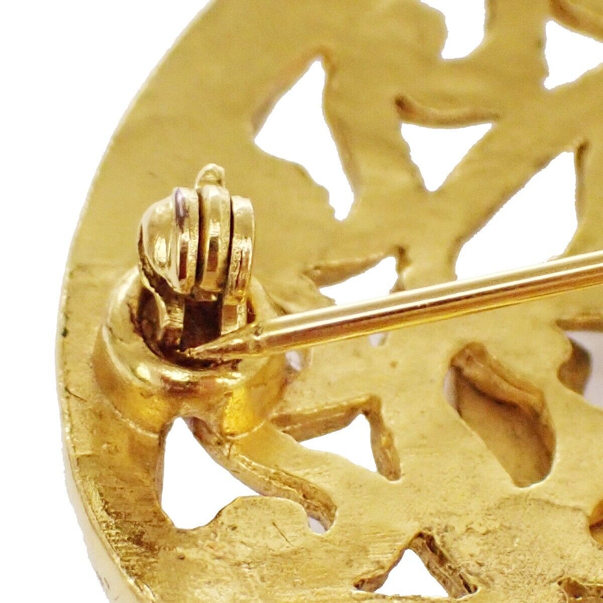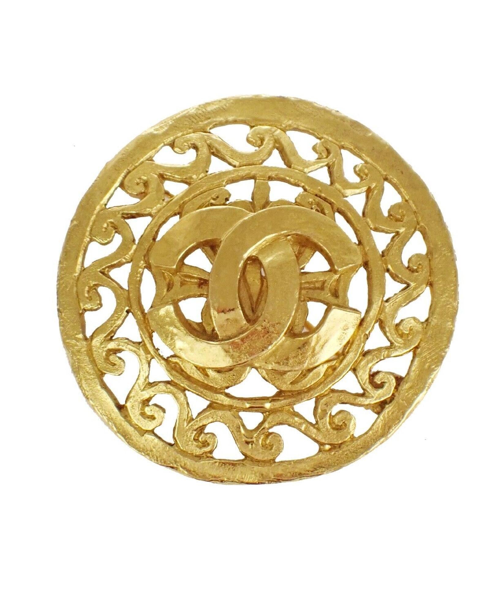 Brand: Chanel Model: Coco Mark Color: Gold Material: Gold Plated Inclusions: / Dimensions: W  4.5 x H 4.5  cm Serial number: 95A Country of origin: France Condition: AB - good condition. This CHANEL Coco Mark round brooch in gold-plated metal is a timeless accessory that adds a touch of elegance to any outfit. The classic round shape and iconic Coco Mark design make it a versatile piece suitable for various occasions including anniversaries. While the brooch shows some signs of wear with minor scuffing it remains in good condition overall ready to complement your ensemble and add a touch of CHANEL sophistication to your look. We recommend that you look at all the pictures before making your purchase to ensure that you are satisfied with the condition of the item.