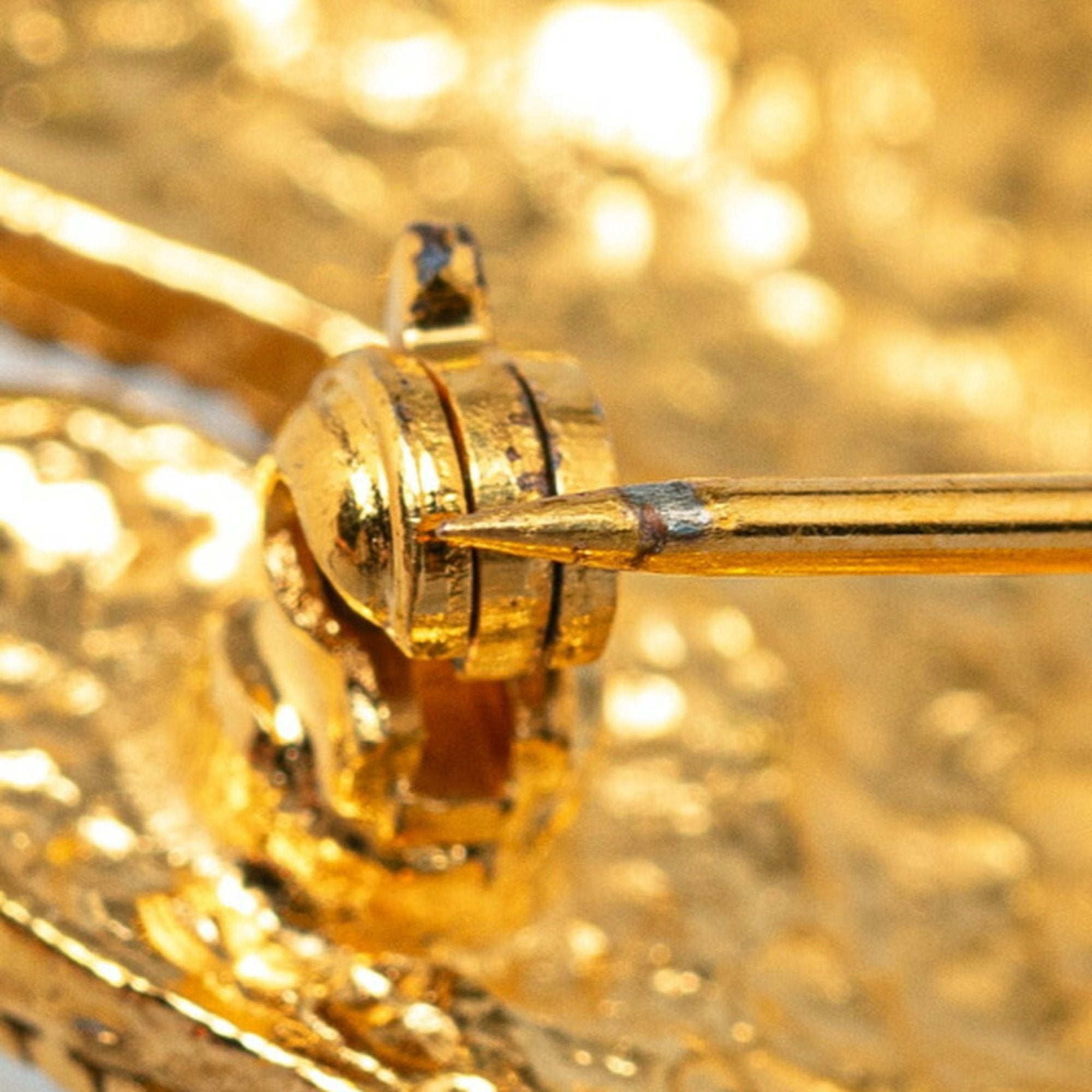Brand: Chanel Model: Broche Color: Gold Material: Gold Plated Inclusions: box Dimensions: 48.7cm x 51.2cm Serial number: NA Country of origin: France Condition: AB - good condition. This Chanel brooch is a sophisticated accessory designed for women. Crafted from gold plating it exudes timeless elegance. The brooch in a radiant gold color is perfect for adding a touch of luxury to any outfit. It shows slight overall scratches and dirt along with minor discoloration. However it remains in good condition continuing to showcase its refined charm. We recommend that you look at all the pictures before making your purchase to ensure that you are satisfied with the condition of the item.