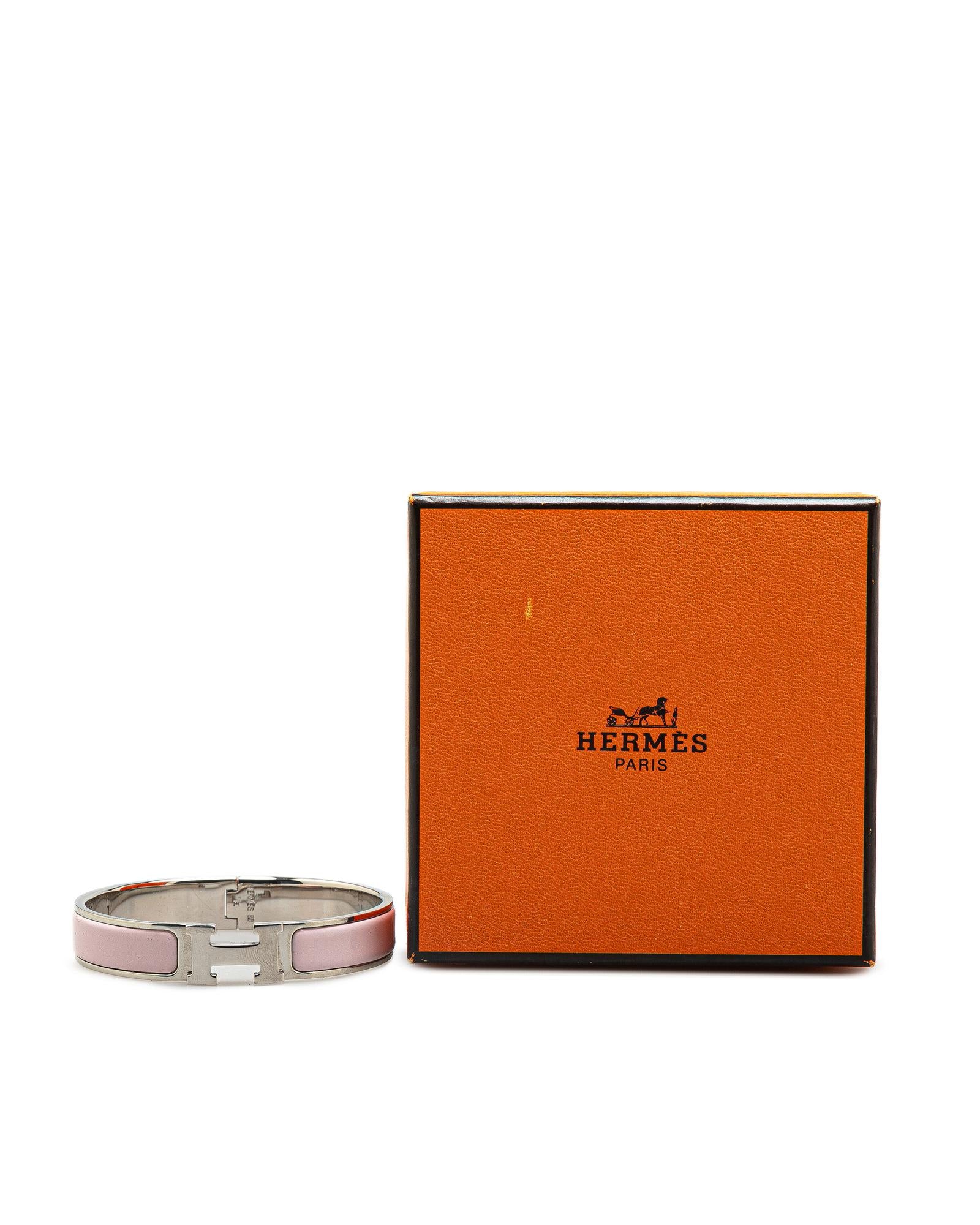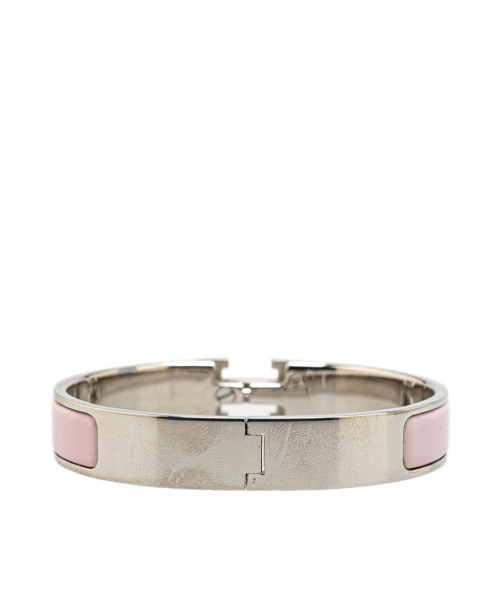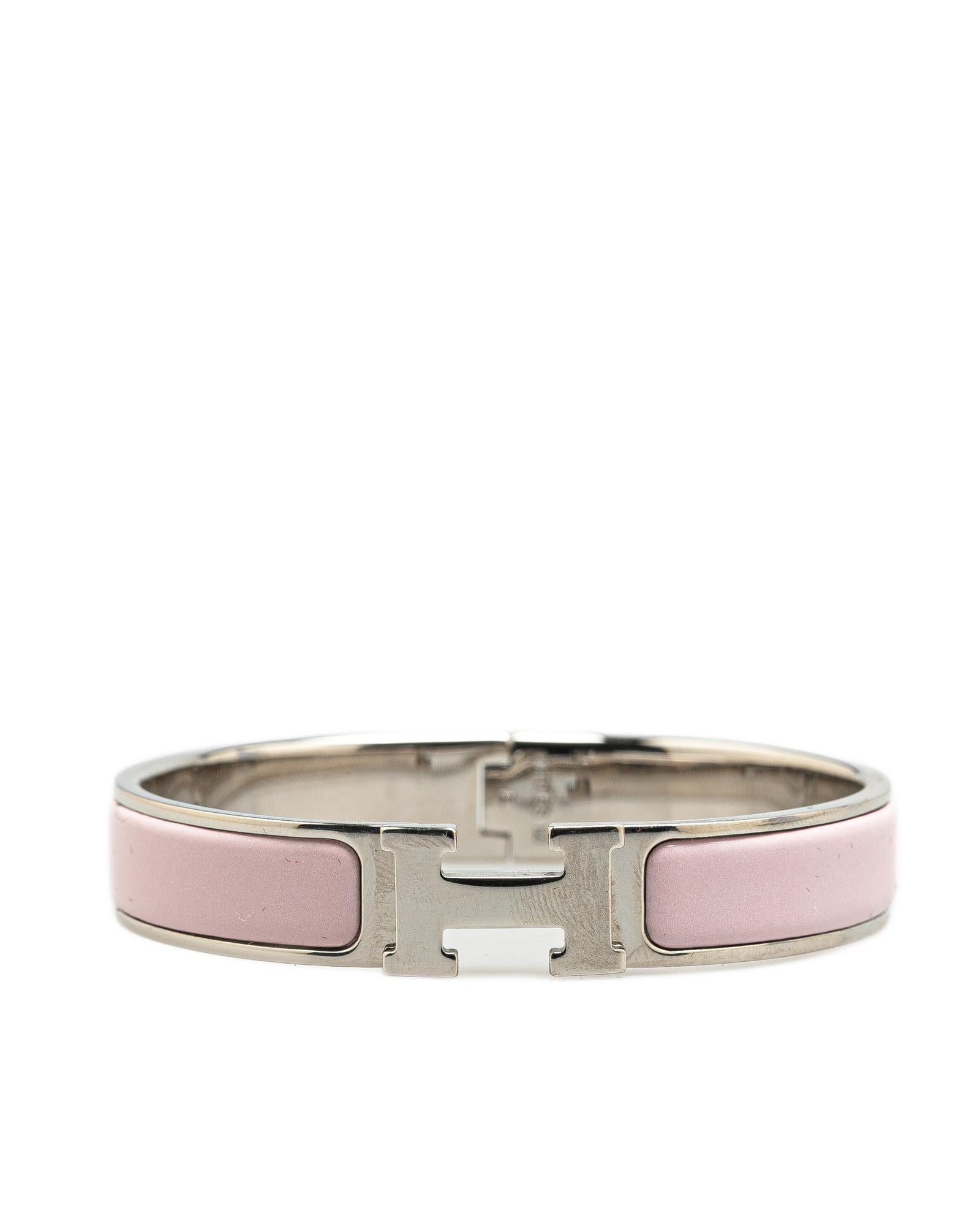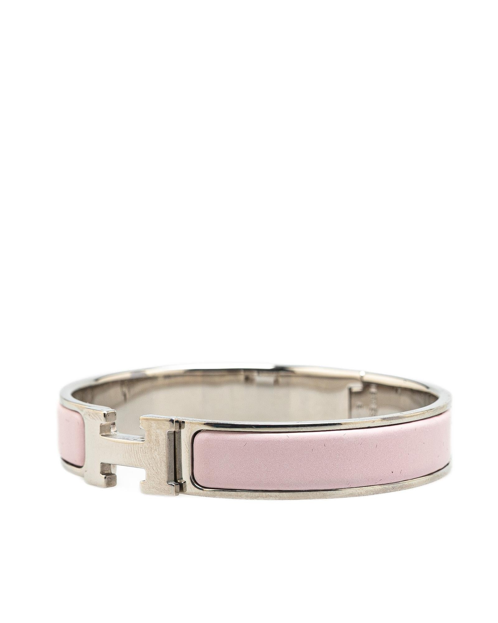 Narrow Enamel Clic H Bracelet with Palladium-Plated Metal Body and Clasp Closure