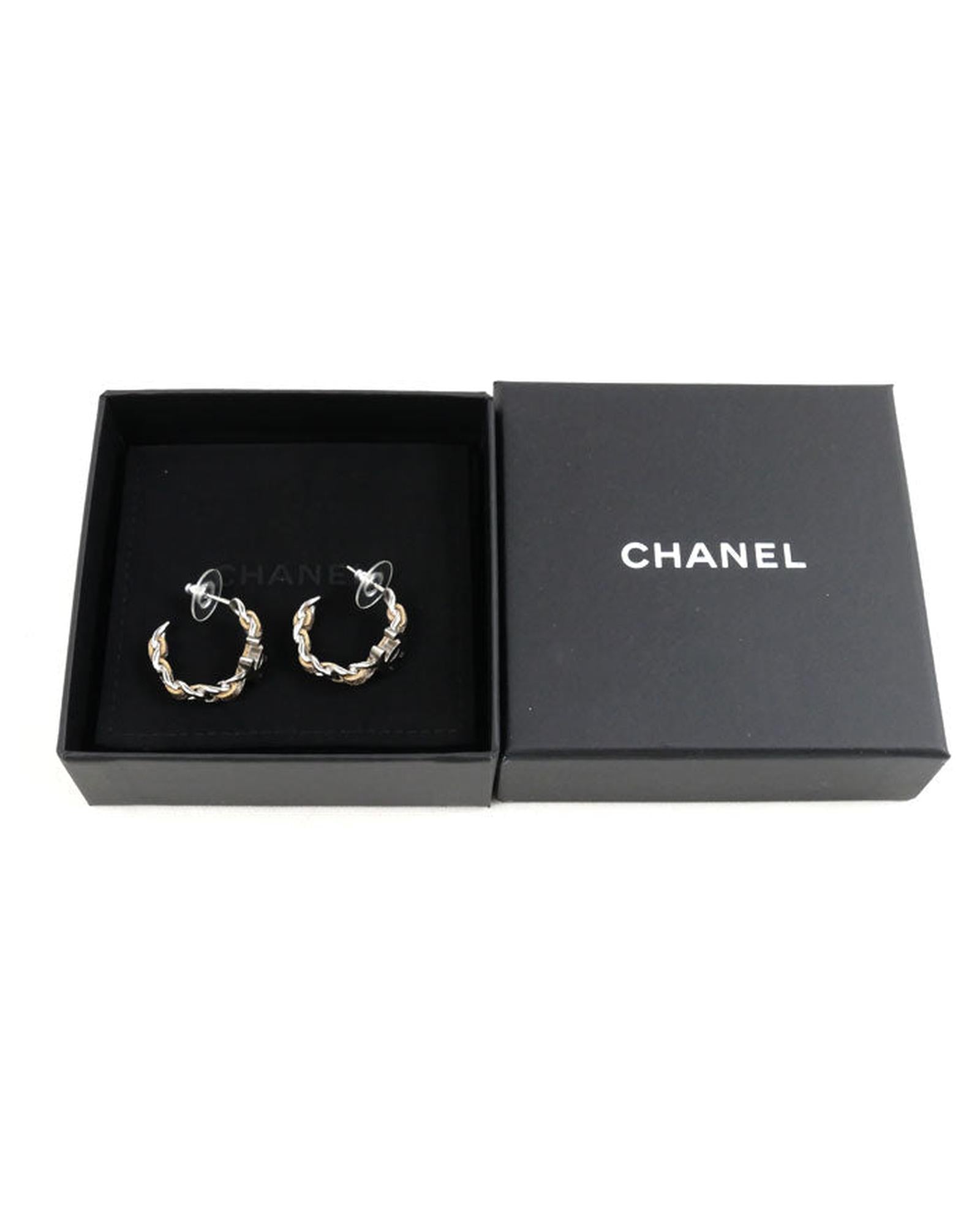 • Item name: Chanel Metal Leather Coco Mark Hoop Earrings