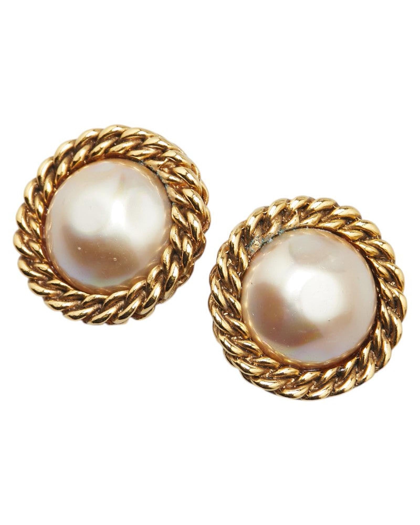 - Item name: Chanel Gold Plated Pearl Vintage Earrings