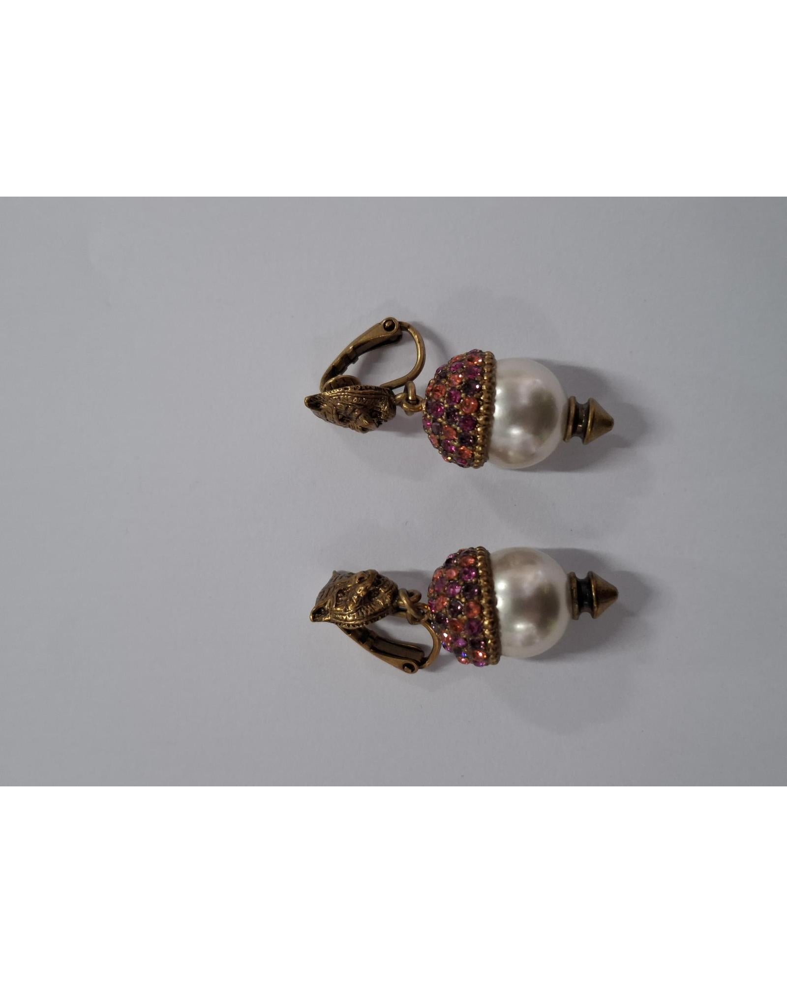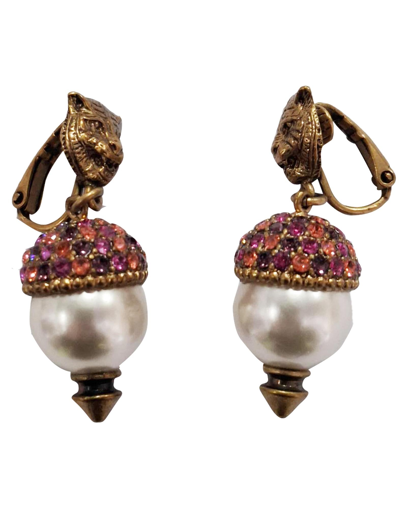 - Gucci Faux Pearl Tiger Earrings in Multicolor Crystal