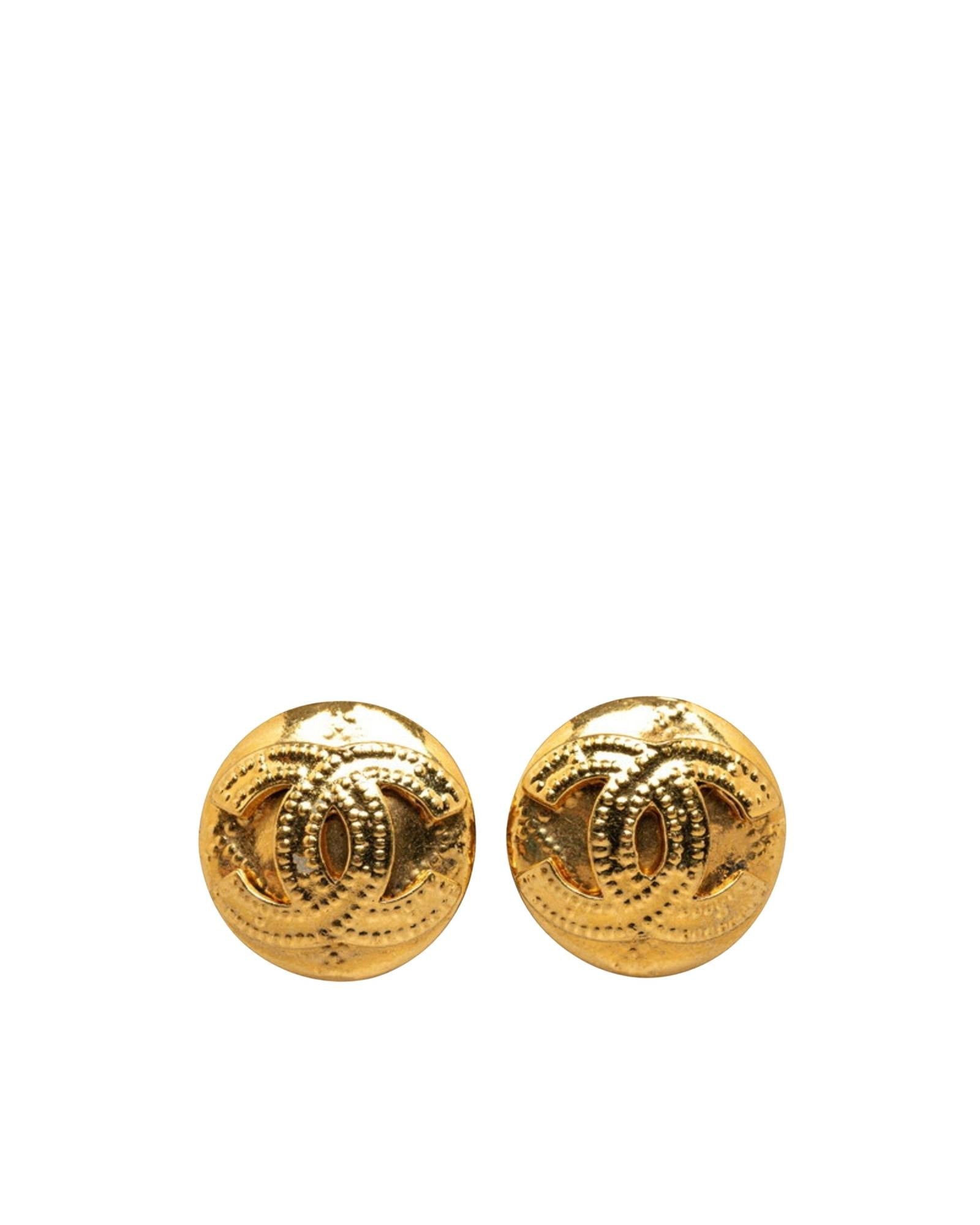 Gold Plated Clip Earrings with Coco Mark Emblem