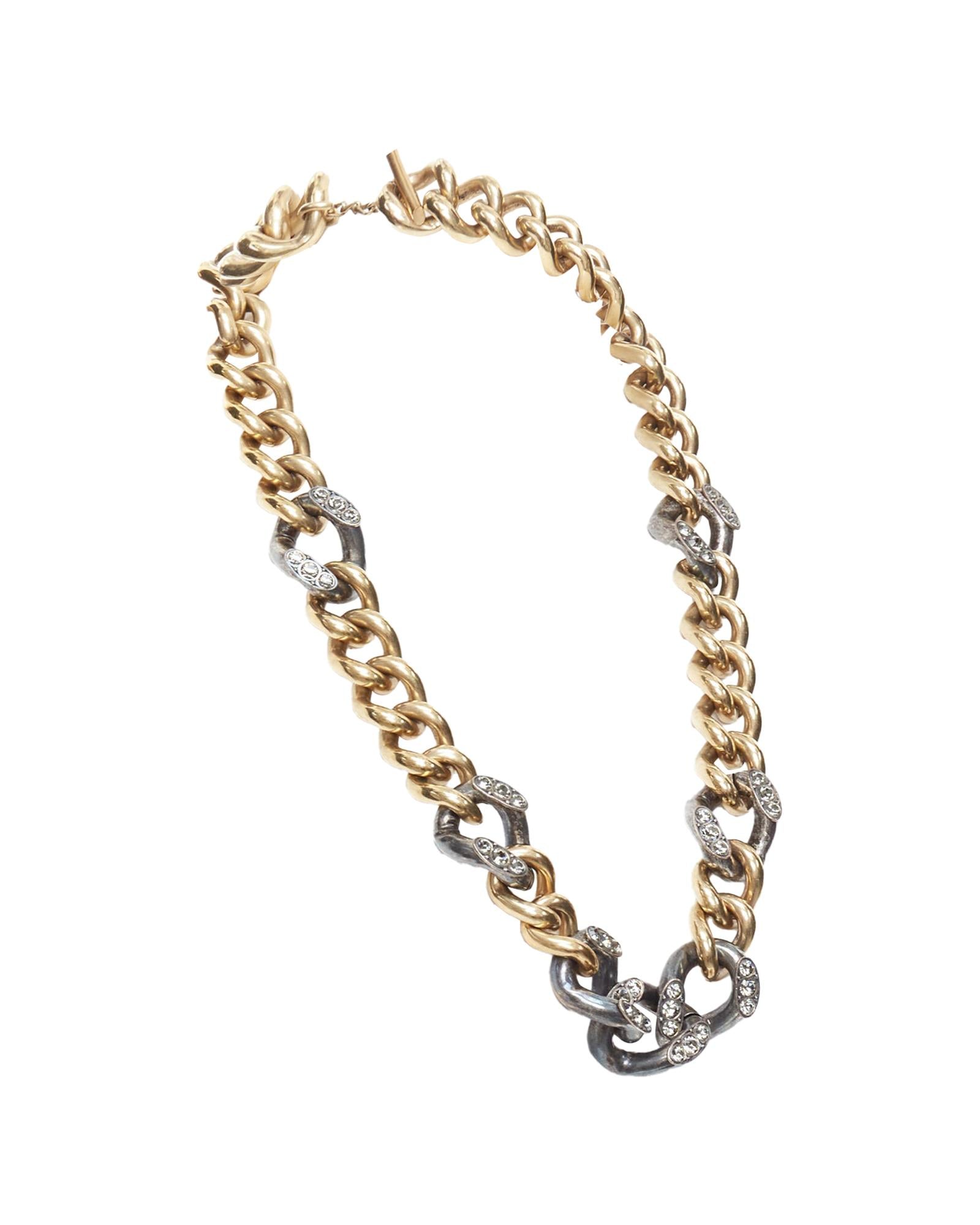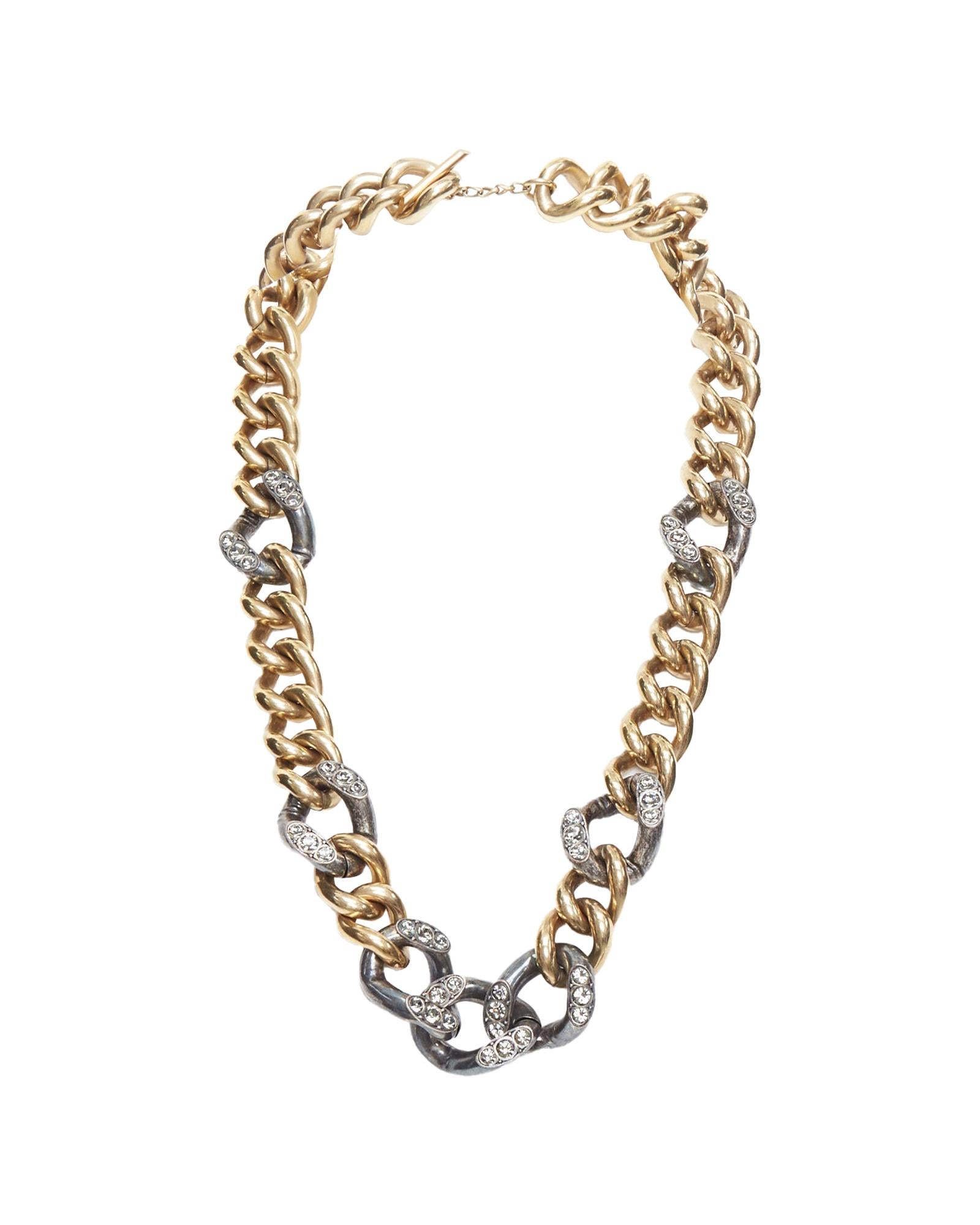 Pre-owned Statement Chain Necklace with Rhinestone Accents Fashionable Jewelry